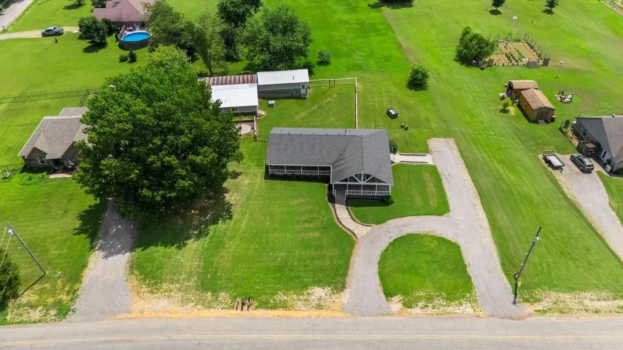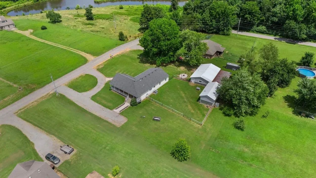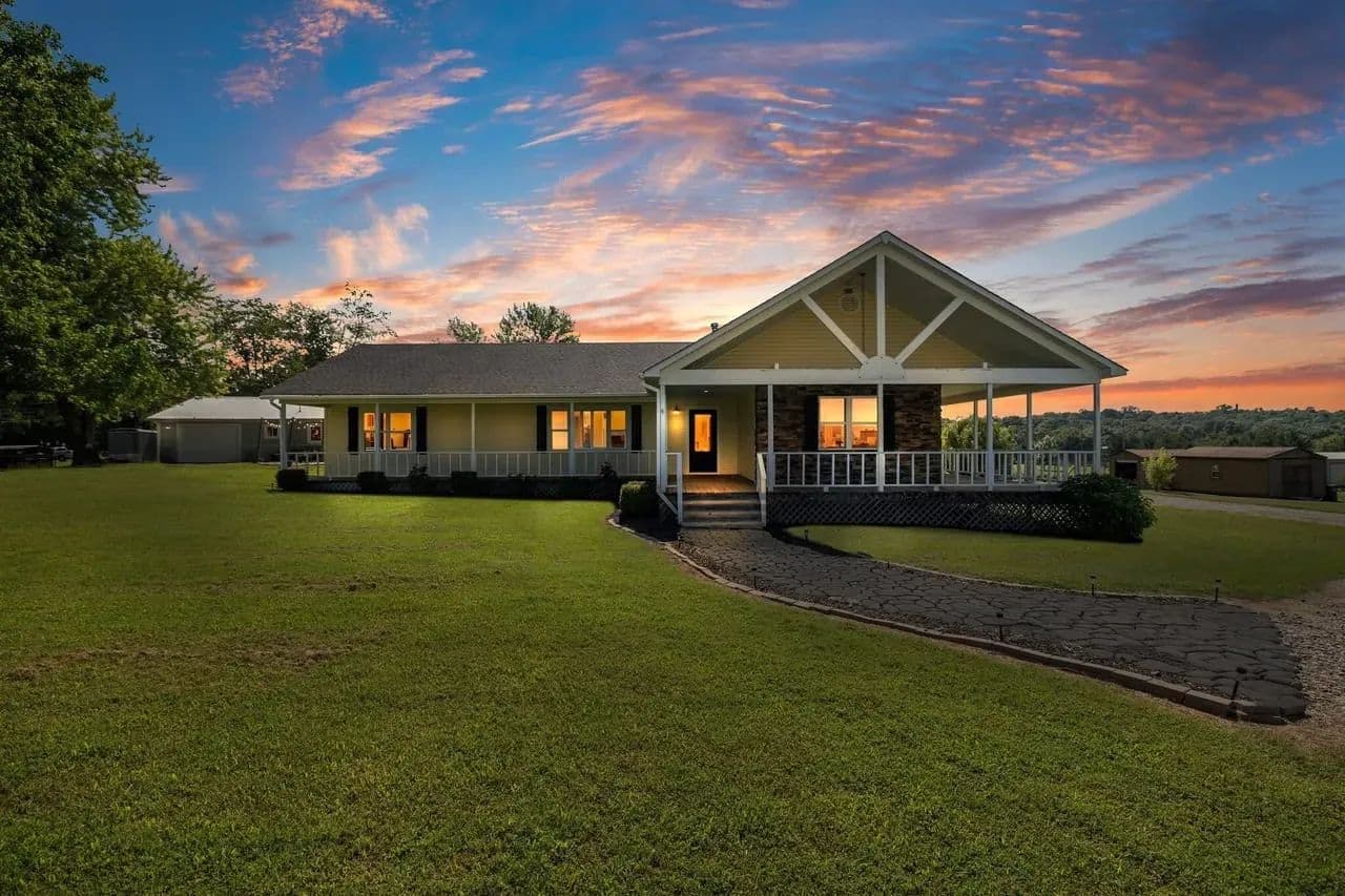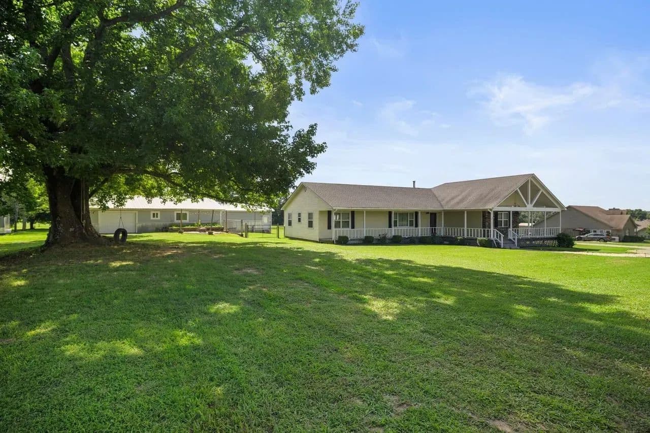 Updated in 2016 and well-maintained, this four-bedroom, two-bath home is ready for you! With 1732 square feet of living space, located on nearly an acre of land outside city limits, accompanied by a covered porch we all dream about, this home offers the perfect blend of comfort and space. The roof was updated in 2016, along with the installation of new siding. The property also features a wrap-around front porch, a 2,420-square-foot workshop, a large master bedroom and bath, and a woodstove to keep you warm and cozy in the winter.