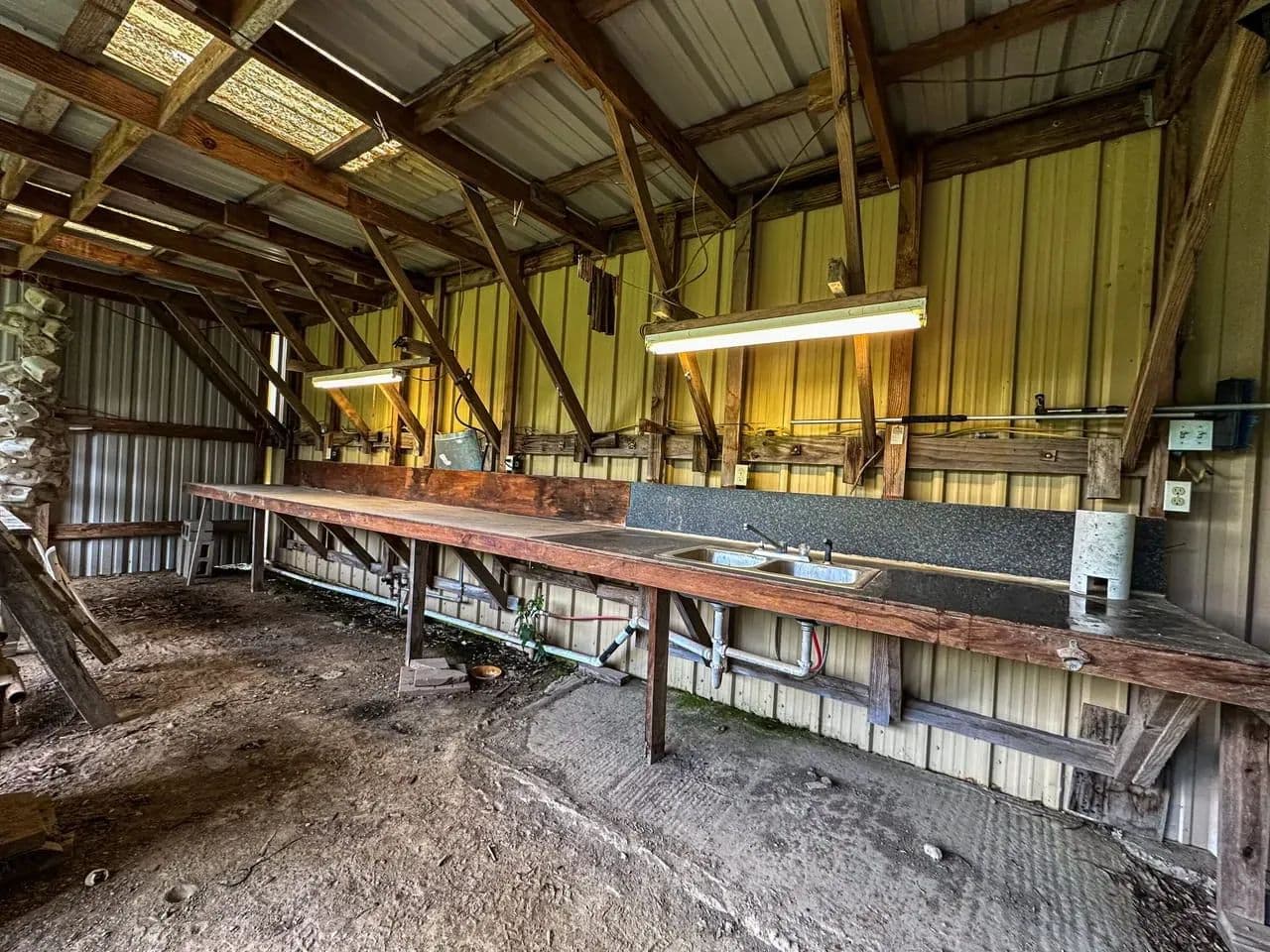 Large Shop with Power & Water: Includes expansive storage bays, a shipping container, and a cooler room—excellent for farming operations, equipment, or a small business.