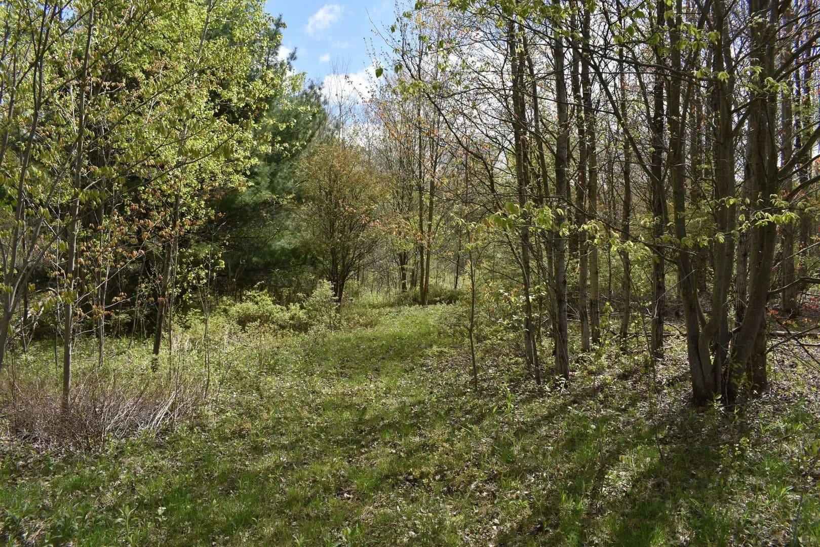 The property is completely wooded with a mix of maple, cherry, beech, birch, aspen and more. There is a combination of managed timber areas along with areas on the west side that are in transition to forest dominated by pole sized trees. The patch open areas in this section are harboring deer bedding and feeding activity. A small intermittent stream flows through this part of the property. The property is currently leased for hunting and there is a camper on the property that does not transfer. The lease will be canceled prior to closing with a new owner. There are plenty of deer trails, rubs and scrapes to be found throughout the property. Across from the Tyler-Whitmore road frontage, the area snowmobile trail runs across the field making this a great place to easily access the trail system from. The property is only about 3-4 miles from Randolph for all the necessary amenities and about 16 miles from Ellicottville and Holiday Valley Ski Resort. Little Conewango Creek flows through Randolph and is well known for its early season trout fishery. The property has approximately 1,670 feet of road frontage on Earl Seaton Road and 1,330 feet of frontage on Tyler-Whitmore Road. Electric is available at the road front on Earl Seaton Road.