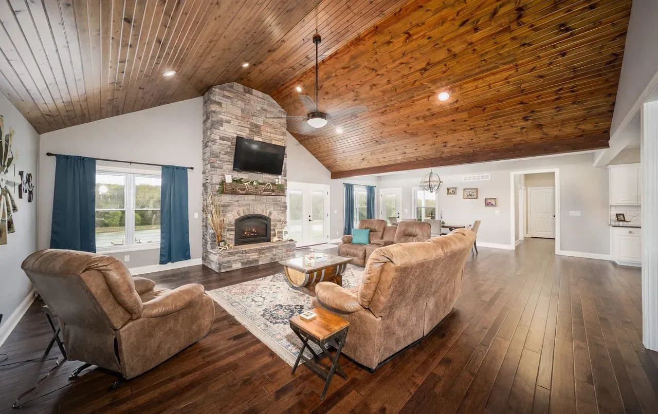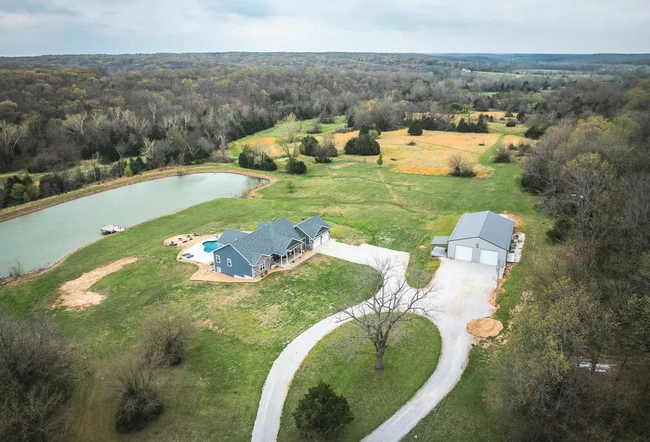 Dawnview Estate is located close to Truman Lake and minutes from Sterett Creek Marina! This stunning 4,400 m/l sq ft home offers 2x6 exterior walls with spray foam insulation, heated bathroom floors, and accent lighting inside and out. The kitchen boasts a quartz countertop, granite island, and a hidden giant walk-in pantry. Also a 40x60 shop with a 16x40 lean to and 400m/l sqft living quarters. Outside, enjoy a pool and spa area less than two years old and a large pond stocked with Bass and panfish, and fruit trees have been planted as well. The property also includes, a hidden safe room accessed through a bookcase, and breathtaking sunrise and sunset views to watch while enjoying the sights and sounds of nature. Property to be surveyed prior to closing.