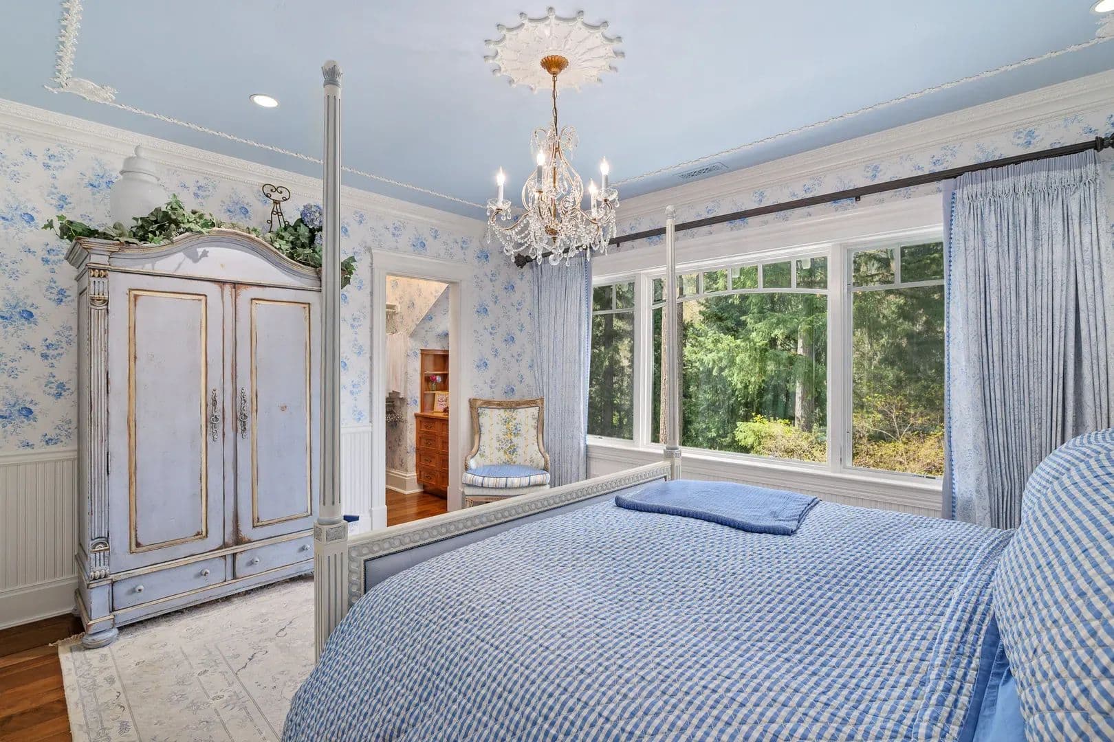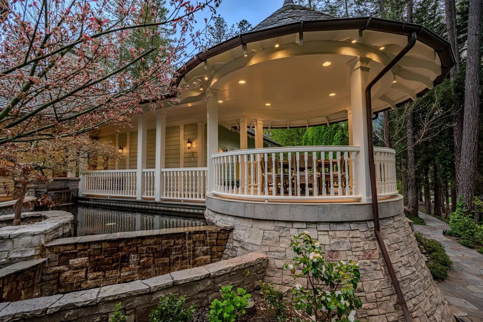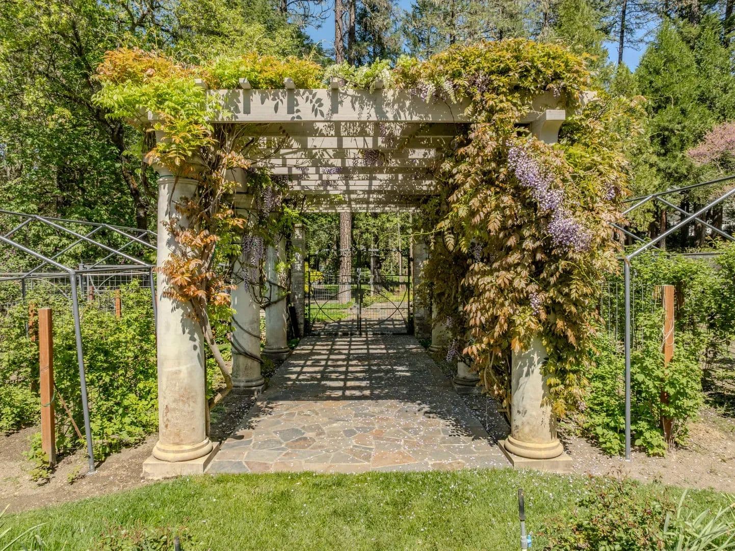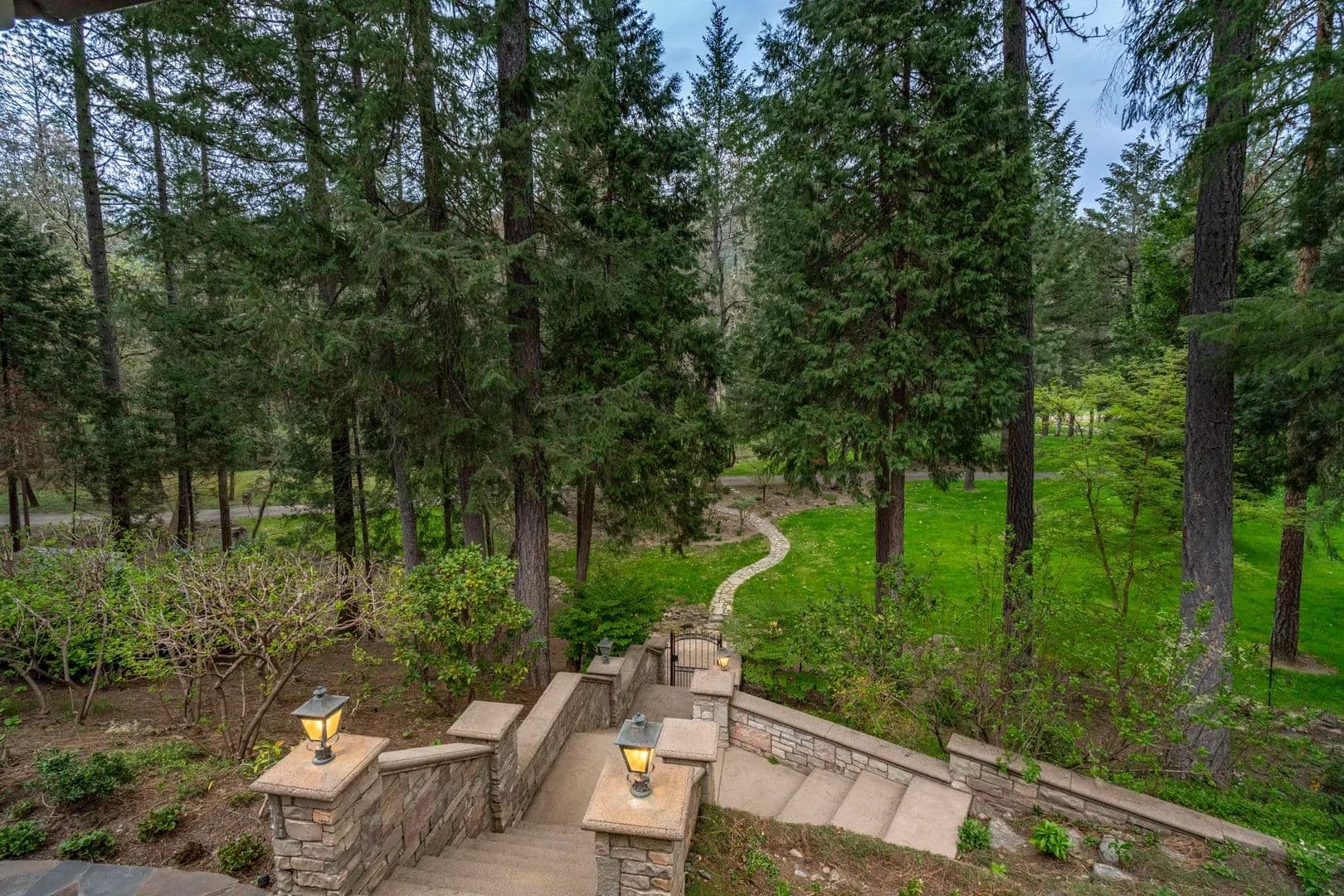 Greeted by a striking European-inspired arched bridge, the entry is flanked by impressive stone columns and a soothing water feature. Ornamental metal paneling spans the entry beyond the arch, marking a grand, yet refined arrival experience. The paved driveway curves gracefully through the grounds and transitions to flame-textured Bluestone, setting the tone for the home’s artisan qualities. Meticulously landscaped grounds, draw the eye toward this glorious estate and its distinctive English Country architectural lines. Built in 2002 and offering over 5,200 square feet of finely crafted living space, this exceptional residence combines timeless architecture with enduring craftsmanship and an exceptionally private, riverfront park setting. Designed by architect Mike Casella, this home reflects a profound commitment to craftsmanship, material integrity, and architectural heritage. Every detail, from stair spindles, trim profiles, and millwork was hand-drawn by the architect, pulling inspiration from the work of Greene & Greene and Stickley, with influences of both traditional American and Japanese joinery that define the early 20th-century Arts & Crafts movement. While the exterior presents as a classic English Country House, the interior evolved with strong Victorian themes through a three-year collaboration with award winning designer Carolyn Allman, who helped guide the selection of every finish, fixture, and surface. The result is a residence rich in hand-selected and custom-fabricated materials. Set above the Rogue River on a private, elevated site, the home’s orientation—along with floor-to-ceiling windows— was designed to maximize natural light and capture uninterrupted views of the setting and the Wild and Scenic section of the Rogue River. Upon entering this beautiful home, guests are welcomed into a formal entry foyer that introduces the home’s rich design and architectural detailing. The living room is centered around a Rumford-style fireplace with a carved Carrara marble surround and features solid Walnut flooring, custom built-ins, and floor-to-ceiling windows that frame views of the incredible setting. Adjacent to the living room is the light-filled formal dining room. Ideal for entertaining, it brings the outdoors in and also functionals beautifully for indoor entertaining. Thoughtfully designed built-ins for serving, custom millwork, and oversized doors that open to the rear patio, lush landscape and views of the river. The kitchen is a chef’s delight, outfitted with custom hardwood cabinetry, imported limestone countertops, a 4 burner DCS cooktop and griddle as well as double ovens, and a Sub-Zero refrigerator. This inviting space is anchored by a tiered butcher block adjacent breakfast nook features radius windows overlooking the gazebo, another water feature and the meticulous grounds. A charming library with hardwood floors, extensive built-ins and a cozy and efficient Rumford fireplace is a fantastic place to snuggle up on a cold day. It captures serene views of the surrounding gardens as is adjacent to the East wing, dedicated to the glorious primary suite. The attention to detail is unparalleled as evidenced by the box beam ceiling, custom built-ins and exquisite en-suite bathroom appointed with marble flooring, a baja-style shower, soothing soaking tub, separate steam shower, custom crafted vanities and a full jewelry cabinet with felt lined drawers. A large walk-in closet/dressing room is beautifully outfitted with built-in clothing and shoe organizers and will please the most discriminating buyer. The West wing of the home supports functional and lifestyle needs. A butler’s pantry connects the kitchen and laundry room, provides additional cold storage with a full sized Sub-Zero freezer, ample floor to ceiling cabinet storage and artistic stained glass window. The laundry room offers built-ins, extensive storage, a utility sink, as well as a closet outfitted with a drying rack and heater. A custom potting bench with flower cutting station sits at the interior entry to the conservatory; a climate-controlled greenhouse with glass roof panels, radiant heat, programmable lighting and automated irrigation—used for seed propagation and growing citrus and herbs. A well appointed powder room is located directly off the foyer for convenience. On the upper level, a grand balcony leads to the well appointed and spacious guest bedrooms, each with impressive ceiling details and custom built-ins. Both bedrooms have walnut flooring and incredible views of the park-like setting. A beautifully appointed guest bathroom serves this level, along with a versatile nursery, secondary office or meditation area offering another quiet space for reflection. Also on this floor is a tucked away kid “retreat” with open, versatile space, ideal for creative and imaginative pursuits. Garage ~ The attached three-car garage is fully finished with tile flooring, built-in cabinetry, and three insulated wood-clad doors. It includes a dog washing station with a custom pull-out ladder, a dedicated storage room for tools or projects, and an exterior-access half bath, ideal for use while outdoors or working in the garden. Detached Gym ~ Just steps from the primary suite, the property features a detached workout space that reflects the same architectural styling and material quality as the main residence. The structure is fully finished and climate-controlled, offering a private and convenient wellness space. Its proximity to the home’s East wing allows for seamless integration into daily routines while maintaining a sense of separation and retreat. This space could be well suited to a number of other uses including a private office, overflow living or additional hobby space. Outdoor Living ~ The home is enhanced by multiple covered exterior living areas, including a welcoming entry porch with water feature, a covered BBQ area, and an elevated gazebo with cold storage beneath. These ou