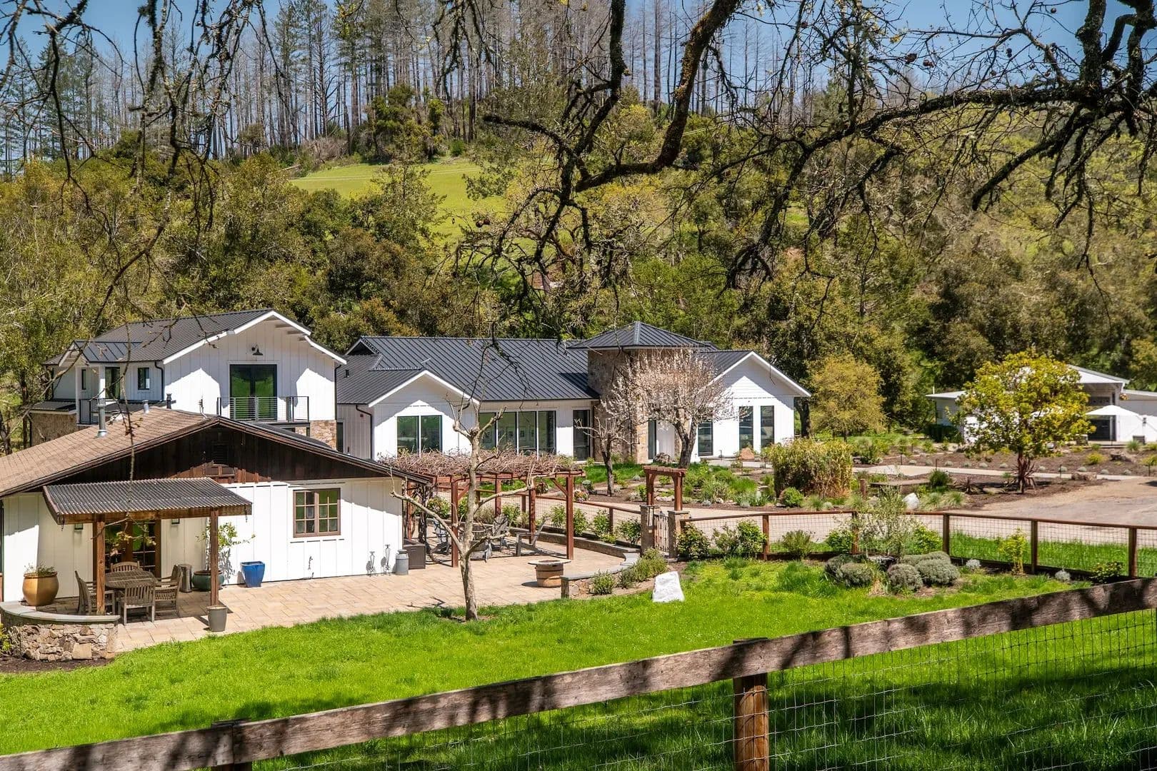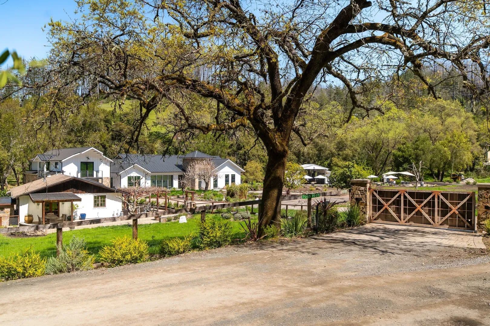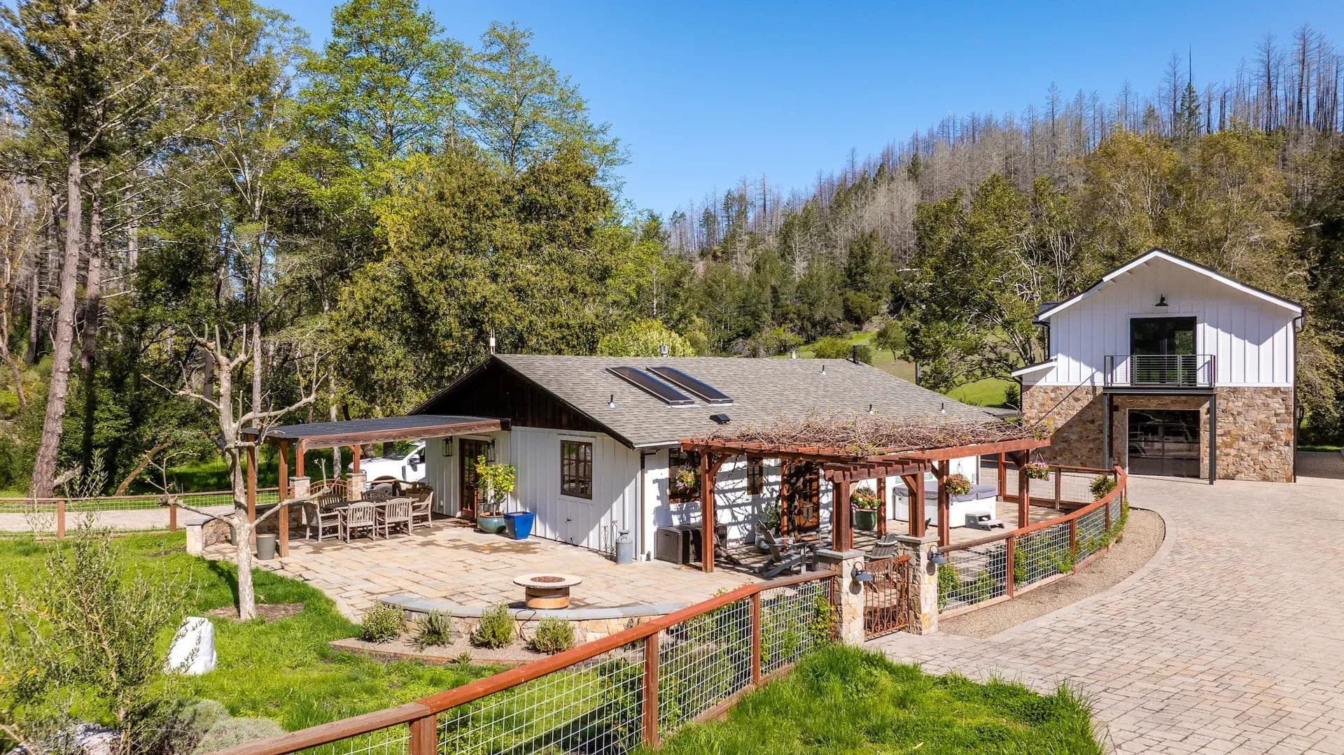 Tucked amidst the rolling hills of Sonoma County, Maison Rustique emerges as a rare jewel, where sophistication and nature intertwine in a breathtaking symbiotic dance. Set upon 6.14 pristine acres of groomed land, this exquisite estate compound rests in its own mountain meadow, bisected by a bubbling year-round creek and framed by towering trees that enhance the beauty of every element within. Approaching the Estate, one winds through backcountry Sonoma County, passing pockets of idyllic farmsteads and heritage vineyards. The reel continues until ascending and summiting the last hill which leaves the manicured forests to open up to the full glory of Maison Rustique. Sights and sounds truly collide to produce an epic and an almost theatric performance which are further amplified as one passes through its iron gates and comes closer to the creek’s rippling cadence. At the heart of this luxurious retreat stands the custom-built Main House, a 3,460-square-foot masterpiece completed in 2023 with the highest grade of finishes adorning both its interior and exterior. Boasting 3 bedrooms and 2 bathrooms, this residence features a professional-grade kitchen with top-tier appliances, perfect for the discerning home chef. The grandiose Master Suite serves as a sanctuary, complete with a spacious walk-in closet, an indoor and outdoor shower, and a private jacuzzi for ultimate relaxation. In perfect harmony with the Main House, the 1,200-square-foot Guest House, fully remodeled in 2018, offers a charming retreat for visitors. With one bedroom, an additional sleeping space, a bathroom, and its own dedicated jacuzzi and decks, this haven ensures comfort and privacy for all who stay. The impressive Four Car Garage/Carriage House, spanning approximately 2,400 square feet, showcases glass roll-up doors and houses a magnificent workout facility and yoga studio on its second floor, catering to those who prioritize wellness and serenity. Maison Rustique’s pièce de résistance, however, lies in its 1,400-square-foot Pool House and Outside Entertainment Venue. This refurbished and repurposed barn stands as the epicenter of outdoor enjoyment, situated between the immense 20’ x 50’ heated pool with its spacious Baja Deck and the year-round creek, framed by majestic oaks. Capable of entertaining over 100 guests, this sublime space makes luxury feel effortlessly attainable. The entire estate is tastefully landscaped, emphasizing a harmonic balance with the native surroundings while requiring low maintenance. A gated rocked entry with professional rock work throughout the compound, including a pizza oven and grill area, welcomes residents and guests alike. Fully fenced, the gentle layout beckons to the equestrian class and those yearning to create a self-sufficient refuge, complete with gardens and livestock. Bordering over 960 acres of Sonoma Open Space/Saddle Mountain Open Space Preserve on three sides, Maison Rustique offers unparalleled access to hiking and immersion in nature right at your doorstep. Sustained by two wells producing 6 GPM, two tanks totaling 5,000 gallons of storage, and a sophisticated water filtration and treatment facility, this estate ensures self-reliance. With 400 AMP power, an emergency backup generator for both the Main House and Guest House, and a new septic system installed in 2020, every detail has been meticulously considered. Conveniently located just 15 minutes from fine grocery stores and restaurants of Santa Rosa and surrounding rural Sonoma County, 30 minutes from the charming towns of Calistoga or St. Helena in Napa, and a mere 35-minute drive to Sonoma Airport, Maison Rustique offers the perfect blend of seclusion and accessibility. This is more than an estate—it’s a lifestyle, where luxury, nature, and tranquility converge in perfect harmony. Property Highlights: Set on over 6 pristine acres in its own exquisite mountain meadow that itself is bisected by bubbling year creek and framed by towering trees, Maison Rustique is rare example of where sophistication and nature meet to form a symbiotic relationship that enhances the beauty of each House (3,460 Sq Ft): Custom house completed in 2023 with the highest grade of finishes inside and out. 3 Bedrooms, 2 bathrooms. Professional kitchen with top grade appliances. Grandiose Master Suite with walk-in closet and indoor and outdoor shower and jacuzziGuest House (1,200 Sq Ft): Completed remodeled in 2018 in harmony with the Main House. One bedroom and additional sleeping space and bathroom with its own dedicated jacuzzi and decksFour Car Garage/Carriage House (+/- 2400 Sq Ft): Glass roll up doors and a magnificent workout facility and yoga studio on the second floorPool House and Outside Entertainment Venue (1400 Sq Ft): This refurbished and repurposed barn is the epicenter of Maison Rustique’s outdoor entertainment venue. Situated between the immense pool and the year-round creek on the edge of towering oaks, the sublime has never appeared so attainable. Space to entertain over 100 guestsHeated Pool 20’ X 50’ with spacious Baja DeckThe entire estate is tastefully landscaped with emphasis on harmonic balance with the native surroundings and low maintenanceYear-Round Creek bisects property adding unbelievable ambiance and acoustics to an already magical placeGated Rocked entry with Professional rock work throughout Compound including Pizza Oven and Grill areaThe entire estate is fenced, and its gentle lay out is inviting to the equestrian class as well as those that want to create a self-sufficient refuge replete with gardens and and almost literally surrounded on 3 sides by over 960 acres of Sonoma Open Space/Saddle Mountain Open Space Preserve, the possibility for hiking and losing oneself in nature are at your front door.2 Well at 6GPM & 2 tanks totaling 5,000-gallon storage with sophisticated water filtration and treatment facility400 AMP Power with Emergency Back-up Generator for both Main House and Guest Ho