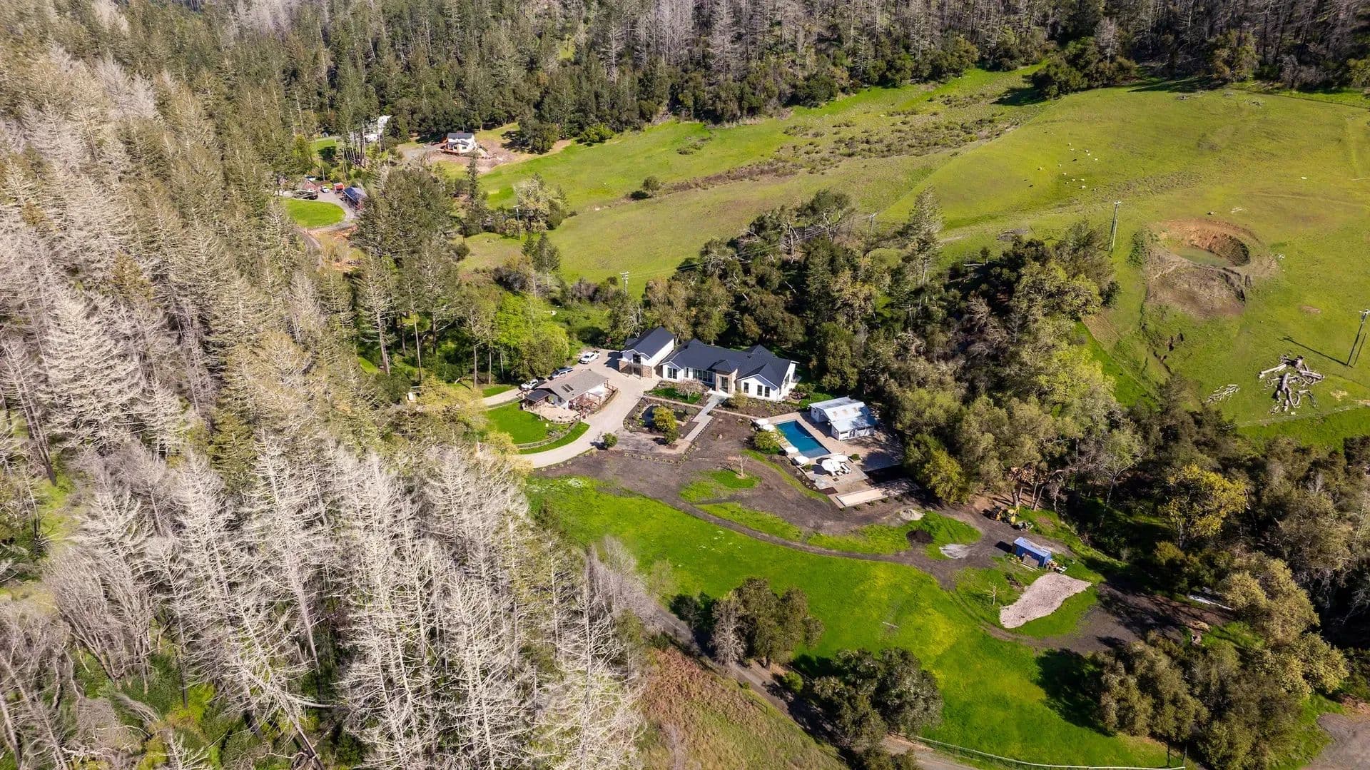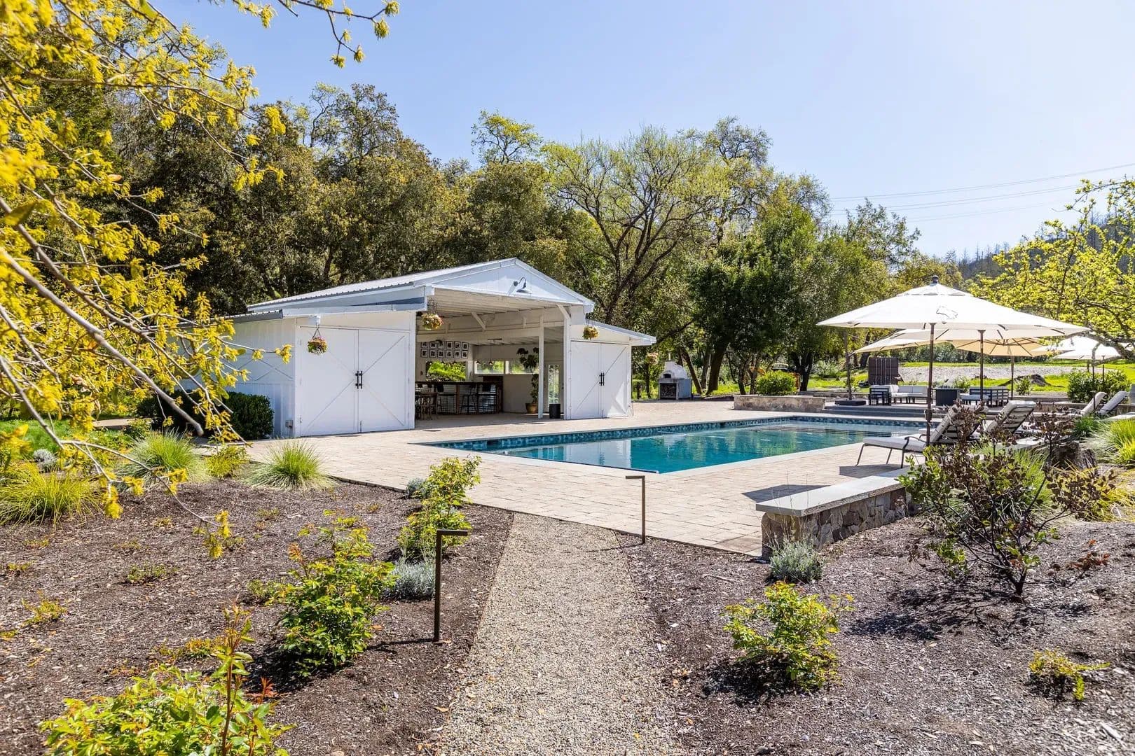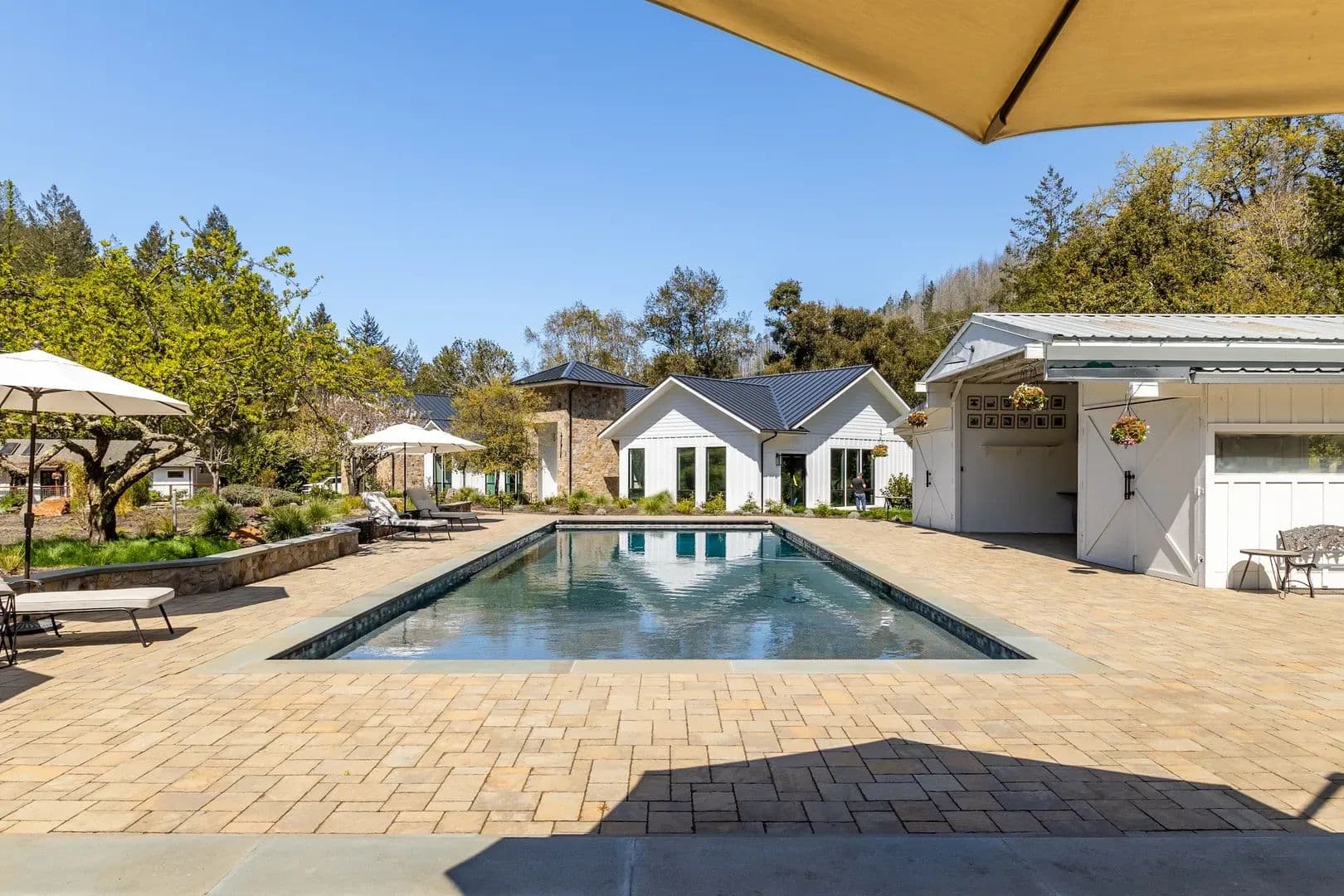 Tucked amidst the rolling hills of Sonoma County, Maison Rustique emerges as a rare jewel, where sophistication and nature intertwine in a breathtaking symbiotic dance. Set upon 6.14 pristine acres of groomed land, this exquisite estate compound rests in its own mountain meadow, bisected by a bubbling year-round creek and framed by towering trees that enhance the beauty of every element within. Approaching the Estate, one winds through backcountry Sonoma County, passing pockets of idyllic farmsteads and heritage vineyards. The reel continues until ascending and summiting the last hill which leaves the manicured forests to open up to the full glory of Maison Rustique. Sights and sounds truly collide to produce an epic and an almost theatric performance which are further amplified as one passes through its iron gates and comes closer to the creek’s rippling cadence. At the heart of this luxurious retreat stands the custom-built Main House, a 3,460-square-foot masterpiece completed in 2023 with the highest grade of finishes adorning both its interior and exterior. Boasting 3 bedrooms and 2 bathrooms, this residence features a professional-grade kitchen with top-tier appliances, perfect for the discerning home chef. The grandiose Master Suite serves as a sanctuary, complete with a spacious walk-in closet, an indoor and outdoor shower, and a private jacuzzi for ultimate relaxation. In perfect harmony with the Main House, the 1,200-square-foot Guest House, fully remodeled in 2018, offers a charming retreat for visitors. With one bedroom, an additional sleeping space, a bathroom, and its own dedicated jacuzzi and decks, this haven ensures comfort and privacy for all who stay. The impressive Four Car Garage/Carriage House, spanning approximately 2,400 square feet, showcases glass roll-up doors and houses a magnificent workout facility and yoga studio on its second floor, catering to those who prioritize wellness and serenity. Maison Rustique’s pièce de résistance, however, lies in its 1,400-square-foot Pool House and Outside Entertainment Venue. This refurbished and repurposed barn stands as the epicenter of outdoor enjoyment, situated between the immense 20’ x 50’ heated pool with its spacious Baja Deck and the year-round creek, framed by majestic oaks. Capable of entertaining over 100 guests, this sublime space makes luxury feel effortlessly attainable. The entire estate is tastefully landscaped, emphasizing a harmonic balance with the native surroundings while requiring low maintenance. A gated rocked entry with professional rock work throughout the compound, including a pizza oven and grill area, welcomes residents and guests alike. Fully fenced, the gentle layout beckons to the equestrian class and those yearning to create a self-sufficient refuge, complete with gardens and livestock. Bordering over 960 acres of Sonoma Open Space/Saddle Mountain Open Space Preserve on three sides, Maison Rustique offers unparalleled access to hiking and immersion in nature right at your doorstep. Sustained by two wells producing 6 GPM, two tanks totaling 5,000 gallons of storage, and a sophisticated water filtration and treatment facility, this estate ensures self-reliance. With 400 AMP power, an emergency backup generator for both the Main House and Guest House, and a new septic system installed in 2020, every detail has been meticulously considered. Conveniently located just 15 minutes from fine grocery stores and restaurants of Santa Rosa and surrounding rural Sonoma County, 30 minutes from the charming towns of Calistoga or St. Helena in Napa, and a mere 35-minute drive to Sonoma Airport, Maison Rustique offers the perfect blend of seclusion and accessibility. This is more than an estate—it’s a lifestyle, where luxury, nature, and tranquility converge in perfect harmony. Property Highlights: Set on over 6 pristine acres in its own exquisite mountain meadow that itself is bisected by bubbling year creek and framed by towering trees, Maison Rustique is rare example of where sophistication and nature meet to form a symbiotic relationship that enhances the beauty of each House (3,460 Sq Ft): Custom house completed in 2023 with the highest grade of finishes inside and out. 3 Bedrooms, 2 bathrooms. Professional kitchen with top grade appliances. Grandiose Master Suite with walk-in closet and indoor and outdoor shower and jacuzziGuest House (1,200 Sq Ft): Completed remodeled in 2018 in harmony with the Main House. One bedroom and additional sleeping space and bathroom with its own dedicated jacuzzi and decksFour Car Garage/Carriage House (+/- 2400 Sq Ft): Glass roll up doors and a magnificent workout facility and yoga studio on the second floorPool House and Outside Entertainment Venue (1400 Sq Ft): This refurbished and repurposed barn is the epicenter of Maison Rustique’s outdoor entertainment venue. Situated between the immense pool and the year-round creek on the edge of towering oaks, the sublime has never appeared so attainable. Space to entertain over 100 guestsHeated Pool 20’ X 50’ with spacious Baja DeckThe entire estate is tastefully landscaped with emphasis on harmonic balance with the native surroundings and low maintenanceYear-Round Creek bisects property adding unbelievable ambiance and acoustics to an already magical placeGated Rocked entry with Professional rock work throughout Compound including Pizza Oven and Grill areaThe entire estate is fenced, and its gentle lay out is inviting to the equestrian class as well as those that want to create a self-sufficient refuge replete with gardens and and almost literally surrounded on 3 sides by over 960 acres of Sonoma Open Space/Saddle Mountain Open Space Preserve, the possibility for hiking and losing oneself in nature are at your front door.2 Well at 6GPM & 2 tanks totaling 5,000-gallon storage with sophisticated water filtration and treatment facility400 AMP Power with Emergency Back-up Generator for both Main House and Guest Ho