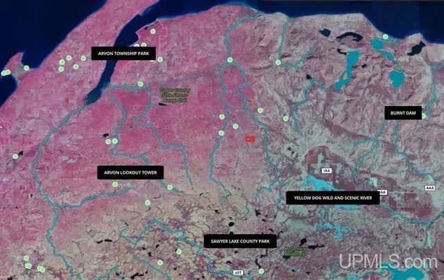 MICHIGAN 40-Acre WILDERNESS HAVEN - Nestled in the pristine wilderness of Michigan's Upper Peninsula, this exceptional 40-acrerecreational property offers the ultimate escape for outdoor enthusiasts and nature lovers alike. - Located in Arvon Township in northeastern Baraga County, this parcel boasts strategic positioning adjacent to thousands of acres of Corporate CFA land, creating an expansive wilderness playground right outside your property lines. - Imagine owning your slice of Michigan's famed north woods, just five miles from the magnificent Copper Country State Forest and a mere two miles from the East Branch of the Huron River. The Big Huron, flowing majestically through Marquette and Baraga Counties, stands as a Type 1 Fishing Stream and premier steelhead destination. Anglers will delight in the nearby convergence of the East and West Branches at Big Eric's Bridge, with the cold, clear West Branch offering exceptional year-round fishing, particularly for beautiful Brook trout. - Water enthusiasts will marvel at the eight magnificent waterfalls scattered along sections of the Huron River, complemented by four carry-in canoe access points and three historical stream fish stocking sites—perfect for paddling adventures. - The property's strategic location west of the Huron Mountains places it directly in the path of migrating whitetail deer, which frequent the area's old homestead orchards, open fields, and sheltered lowlands. For expanded hunting opportunities, simply step onto the adjoining CFA Forest Lands. - Winter brings its own magic with convenient woods trails connecting to Snowmobile Trail Number 14—the critical northern east-west corridor linking Baraga and Marquette Counties. This strategic location ensures four-season recreational possibilities, from summer hiking and fishing to spectacular fall hunting and winter snowmobiling adventures. - Whether you seek a private hunting-fishing paradise, snowmobiling base, or simply a tranquil wilderness escape, this versatile parcel delivers four-season adventure in one of Michigan's most northern natural settings. Your opportunity to own this recreational gem awaits! - The parcel is enrolled in the Michigan CFA Program. Benefit To the Owner: This Voluntary Program provides a tax incentive to landowners to retain and manage their forestland for long-term timber production and to provide foot access to the public for hunting, trapping and fishing. CF Landowners do not pay ad valorem general property taxes. Instead, CF landowners pay a specific tax. The CF specific rate for 2022-2026 is $1.35 per acre annually. No buildings or improvements(including trailers, motor homes, permanent hunting blinds, utilities) are allowed. If an owner wants to build a structure on this property, the landowner may withdraw it, by submitting an application, application fee, and pay a withdrawal penalty.