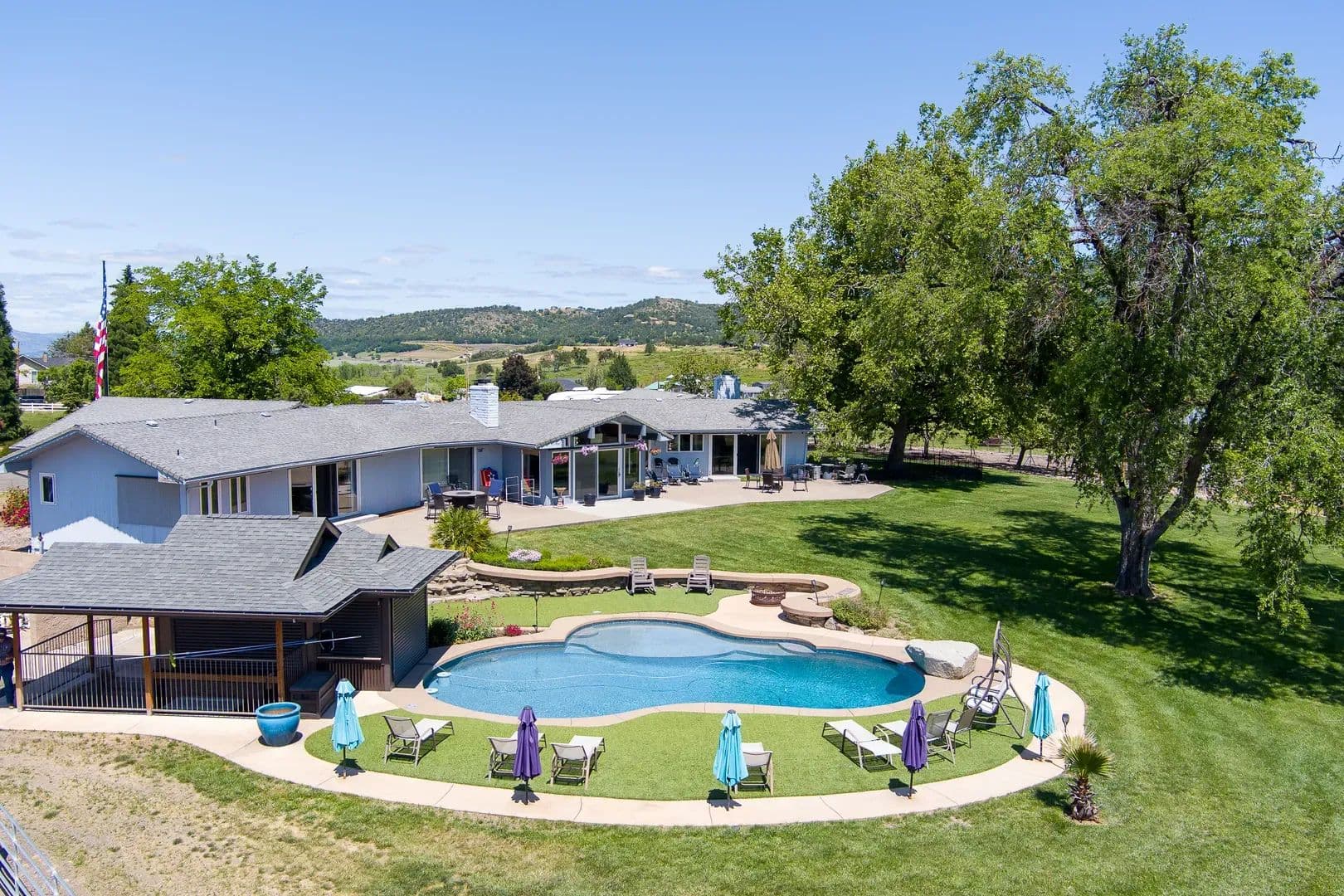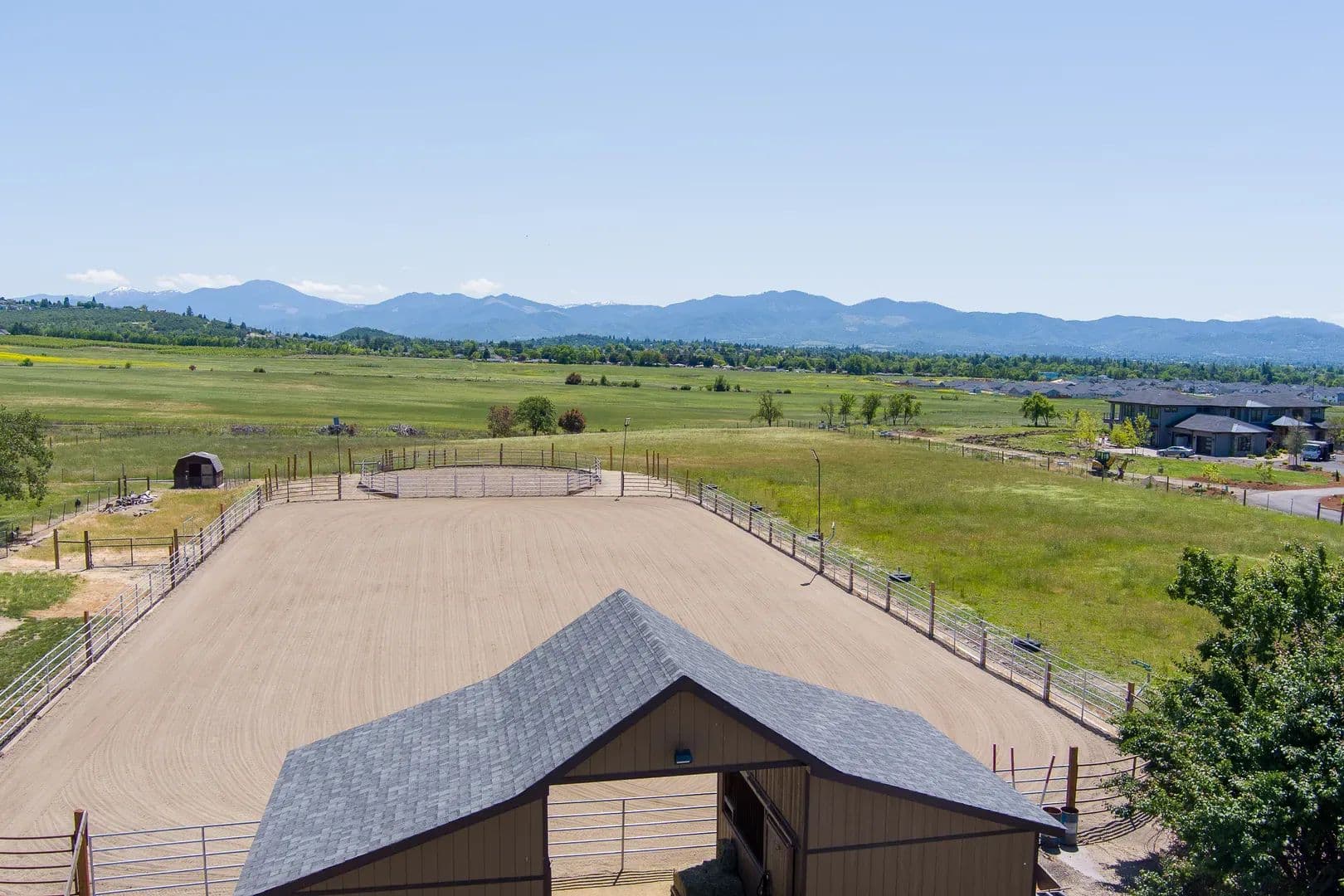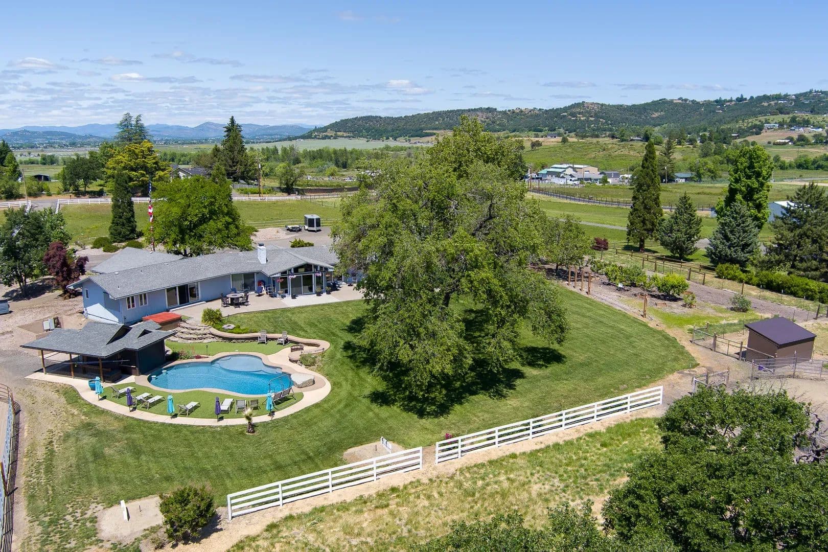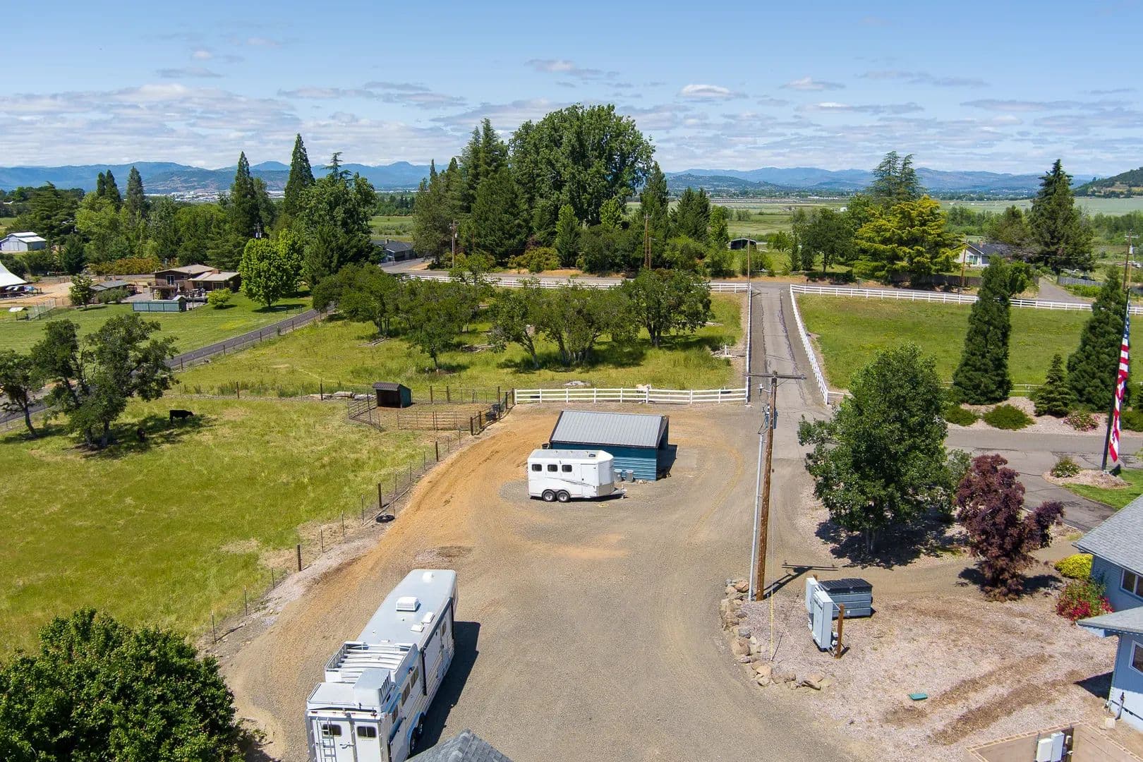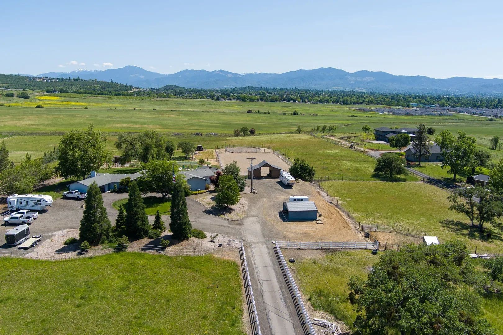 Welcome to your dream retreat in desirable East Medford! Set on 5.05 irrigated acres, this stunning 3 bed, 2.5 bath estate blends luxurious living with country charm. The spacious, well-maintained home features two beautiful living areas, abundant natural light, and sweeping views of the valley and mountains. The expansive primary suite includes a walk-in closet, poolside access, and a spa-like bathroom with soaking tub, stall shower, and built-in steam outside to your private oasis: a heated saltwater pool (built in 2015) with a swim-up bar and outdoor kitchen area—just awaiting final touches. Equestrians will appreciate the 88’ x 170’ arena with solar lighting, attached 60’ round pen, and horse barn with two 16’ x 12’ stalls. The fully irrigated land features mature trees, fruit orchard, and multiple barns/outbuildings offering ample storage and versatility. Additional highlights include a finished basement with workshop, a dedicated office, and two full RV hookups with power and sewer. All this within 5 minutes of downtown Medford, top dining, shopping, and wineries, and under 15 minutes to local hospitals and the Medford Airport. Rarely does a property offer this much—luxury, functionality, and location in one complete package!Seller is now offering a $25,000.00 BUYER CREDIT to go towards flooring upgrades!(The adjacent 5.37acre irrigate lot is also available for a negotiated price)