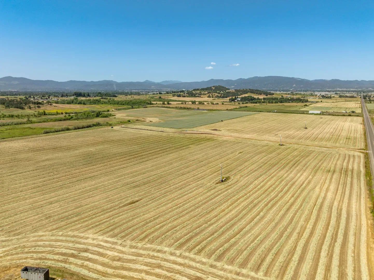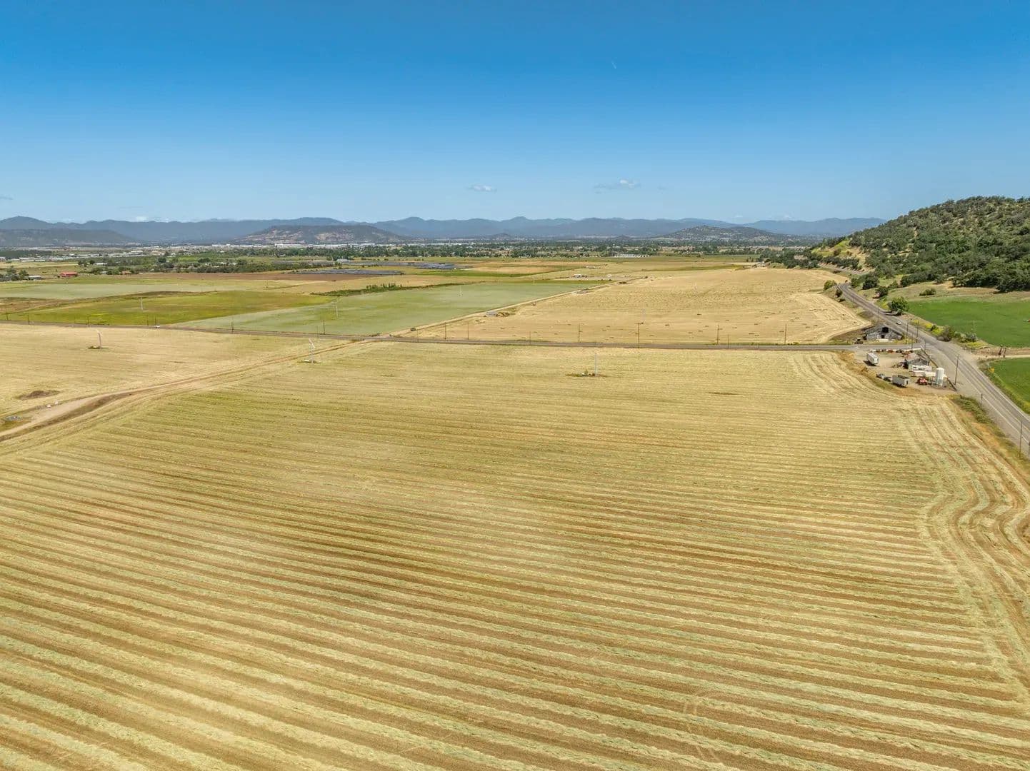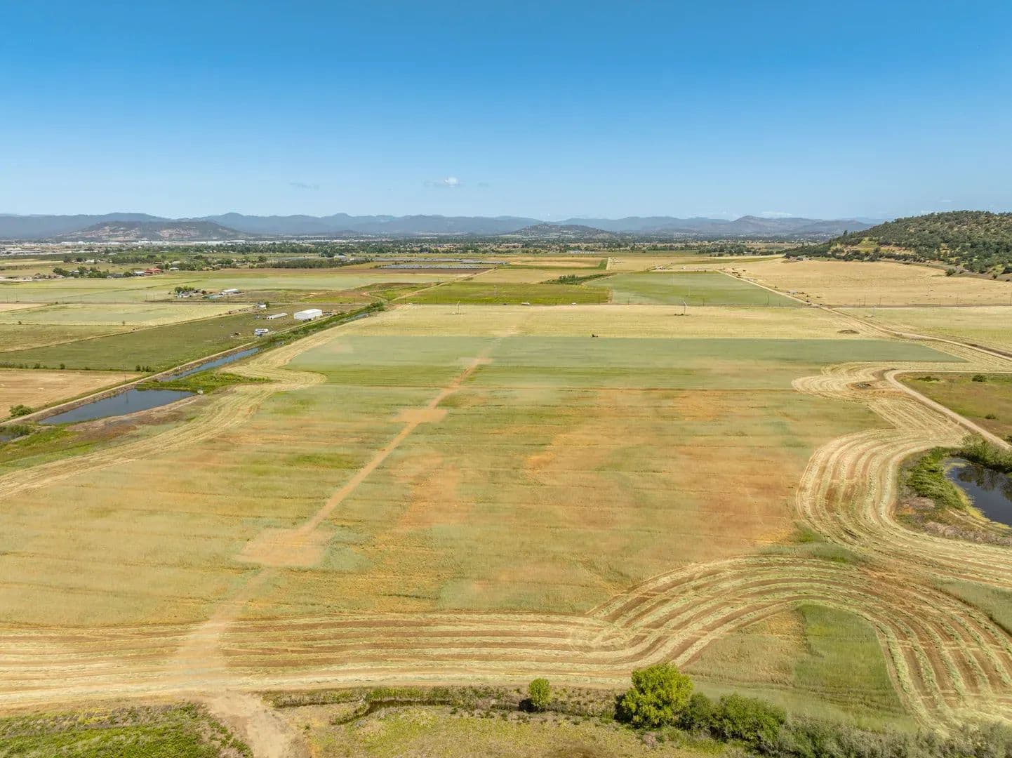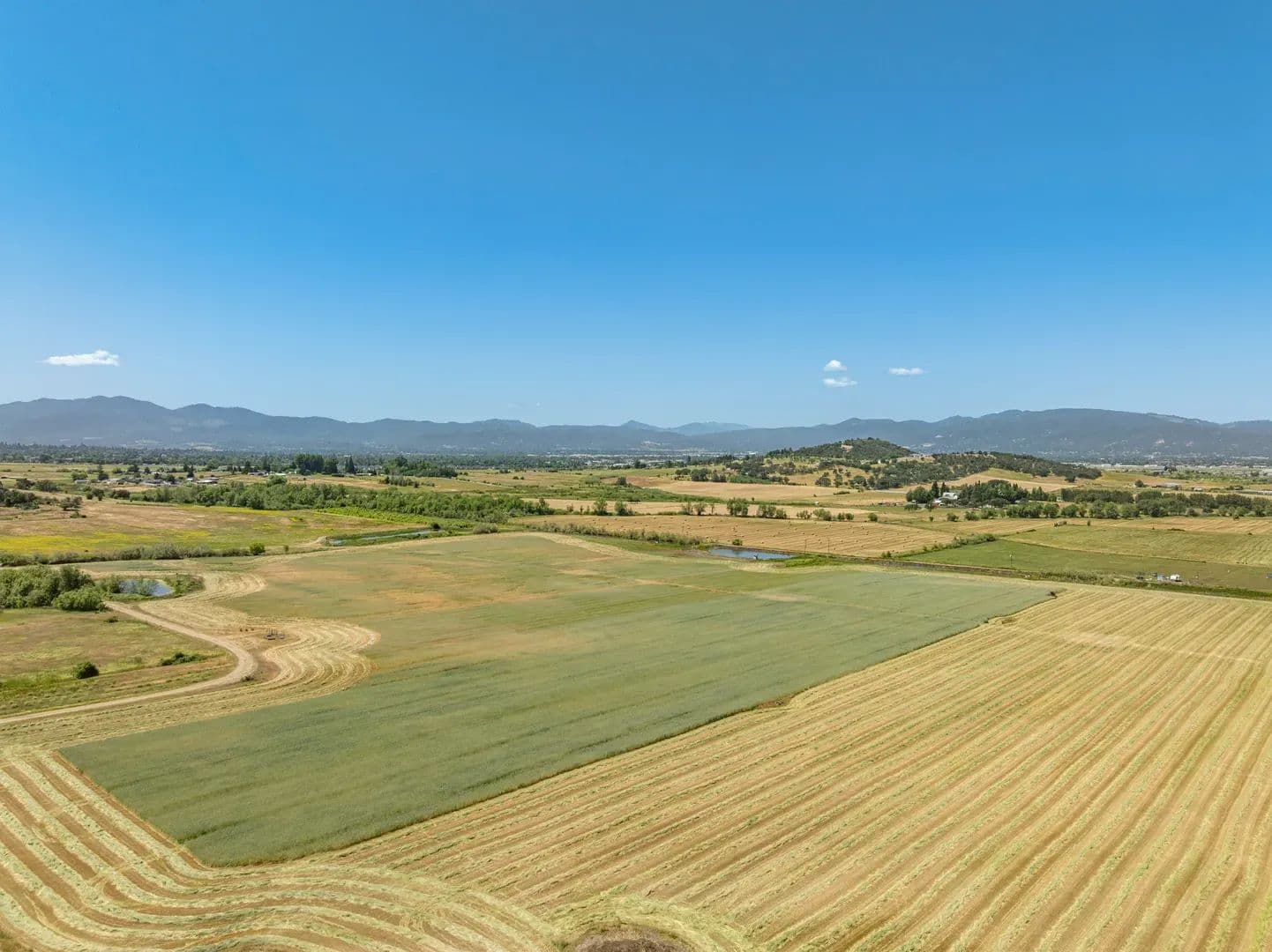 Welcome to the South Parcel of the Foothills Irrigated Farm—a productive and well-positioned Southern Oregon property offering agricultural utility, ample water rights, and a remarkable opportunity for a potential homesite (not yet applied for).At the heart of its long-term appeal is the elevated southern knoll: a gently rising oak-studded ridge that overlooks the nearly 140-acre landscape. From this vantage point, panoramic views stretch across the irrigated fields, past the serene ponds, and out toward the Table Rocks and surrounding valley—an inspiring setting for a future residence (buyer to perform due diligence regarding homesite approval). This setting pairs privacy and scenery, making it an ideal location to build a home that captures the essence of rural Southern Oregon land itself is thoughtfully laid out for efficient farming. Its mostly rectangular shape, combined with primarily Class III soils, supports a range of agricultural uses—from row crops to hay and pasture, or a diversified livestock operation. The property is served by 133.5 acres of water rights from the Medford Irrigation District, with gravity-fed mainlines that reduce pumping costs, and includes five ponds totaling approximately 3.5 surface acres. Additional infrastructure includes nearby city water connection and three-phase power along the western located at the intersection of Foothill and Vilas Roads, the property enjoys excellent visibility and access—ideal for a farm stand, U-pick operation, or other agricultural business venture. This prominent corner exposure enhances the property’s commercial potential while maintaining a rural the city limits yet close to major amenities, the location provides great convenience. Downtown Medford, the Rogue Valley International Airport, and I-5 are just a short drive away, placing the property at the center of one of Southern Oregon’s most desirable agricultural Rogue Valley is known for its four-season climate, long growing seasons, and access to a broad range of outdoor recreation. From nearby public lands and equestrian trails to fishing and rafting on the Rogue River, the region supports a lifestyle rooted in both productivity and natural its potential homesite, strong water resources, and strategic location, the South Parcel of the Foothills Irrigated Farm presents a great opportunity for both agricultural development and potential rural living!