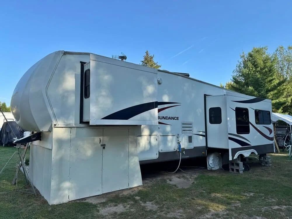 This buildable wooded lot in Canadian Lakes comes with a 32ft 2007 Heartland Sundance fifth wheel on lot 379 of the Canadian Lakes Campground. Fifth Wheel has seen lots of recent updates including new refrigerator, microwave, awning canopy, tires, blinds, flooring, and roof waterproofing. All interior furniture including sofa and mattress purchased in Spring of '25, and electric mower convey with sale! Take advantage of all that Canadian Lakes has to offer including indoor/outdoor pool, fitness facility, 3 golf courses, beaches and lots of lakes for summer boating fun!