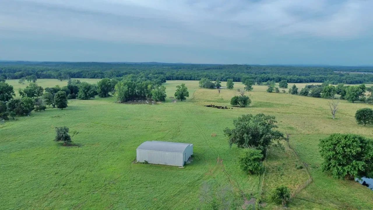 This well-maintained 117-acre +/- property is perfectly set up for cattle, hay production, or a multi-use operation. Featuring two 60' x 60' barns—one dedicated to hay storage and the other serving as a combination hay and equipment shed—this ranch is built for efficiency and productivity. The land is divided into three fenced pastures, each with its own pond for dependable water access and a separate bull trap and working pens to streamline livestock management. Pastures have been carefully maintained using sustainable agricultural practices, promoting long-term soil health and forage quality. Old-growth oak trees provide ample shade for livestock, while a sizable wooded area offers excellent hunting opportunities and natural wildlife habitat. This property perfectly blends ranching, recreation, and rural living. Cattle and equipment may be purchased at an additional cost, making this a true turnkey opportunity for the right buyer.