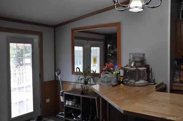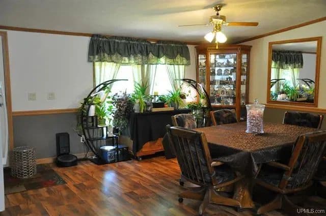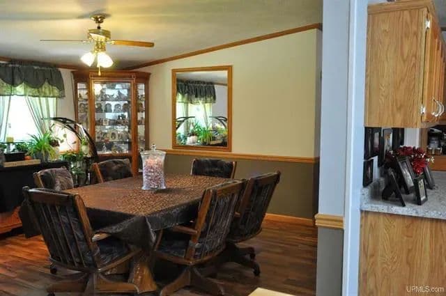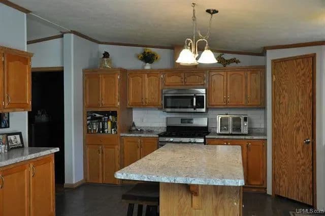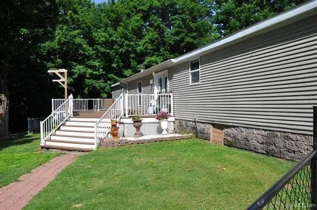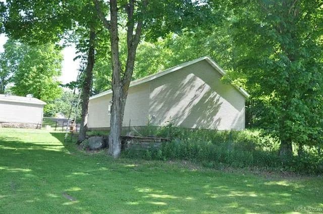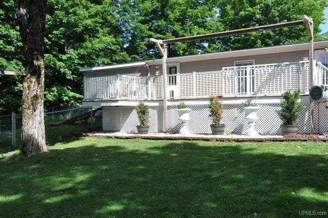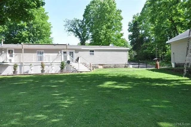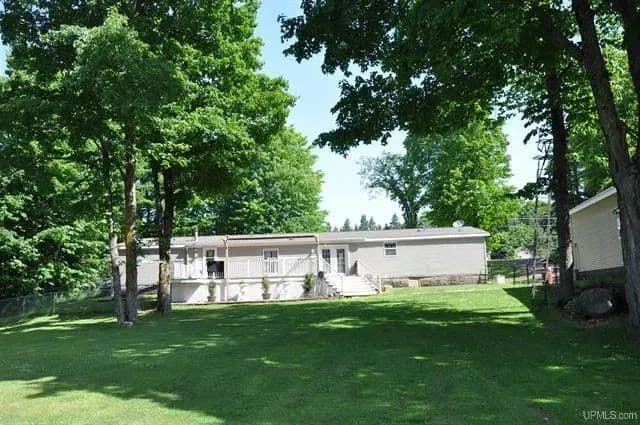Everything is brand new ! This 32x80 well maintained 4 bedroom Manufactured home has the best in country living on a large 1 1/2 acre lot 40 minutes from Marquette 30 minutes to Munising and Escanaba . Home has a new Roof and a 34x14 Trex Deck with a removable canopy for those sunny says . The deck has a dog door that goes out to a fenced in yard . The yard has a 12x12 Greenhouse and a basketball slab with hoop . The yard also has 2 storage sheds for toys and tools . The brand new kitchen has Herring Bone Green Flooring with new stainless Steel appliances with a gas stove and dishwasher. New furnace with Central air conditioning for the hot days and nights with a new water heater . The crawl space underneath has a poured slab with easy access and is very dry . 4 spacious bedrooms with the master bathroom having a whirlpool tub and double sinks . The Bar was custom made by a local woodworker along with the wine refrigerator . There are tons of closet space in this beautiful home . The flowers and beautiful landscape really highlight this move in and live home .The 28 x 40 detached 2 car garage has 16 foot doors and newer roof . There is a new entrance door as well and a brand new 10,000 watt Duramax Propane Generator plumbed in and ready to go in case of a power outage . This home is very cozy and ready for that lucky person .