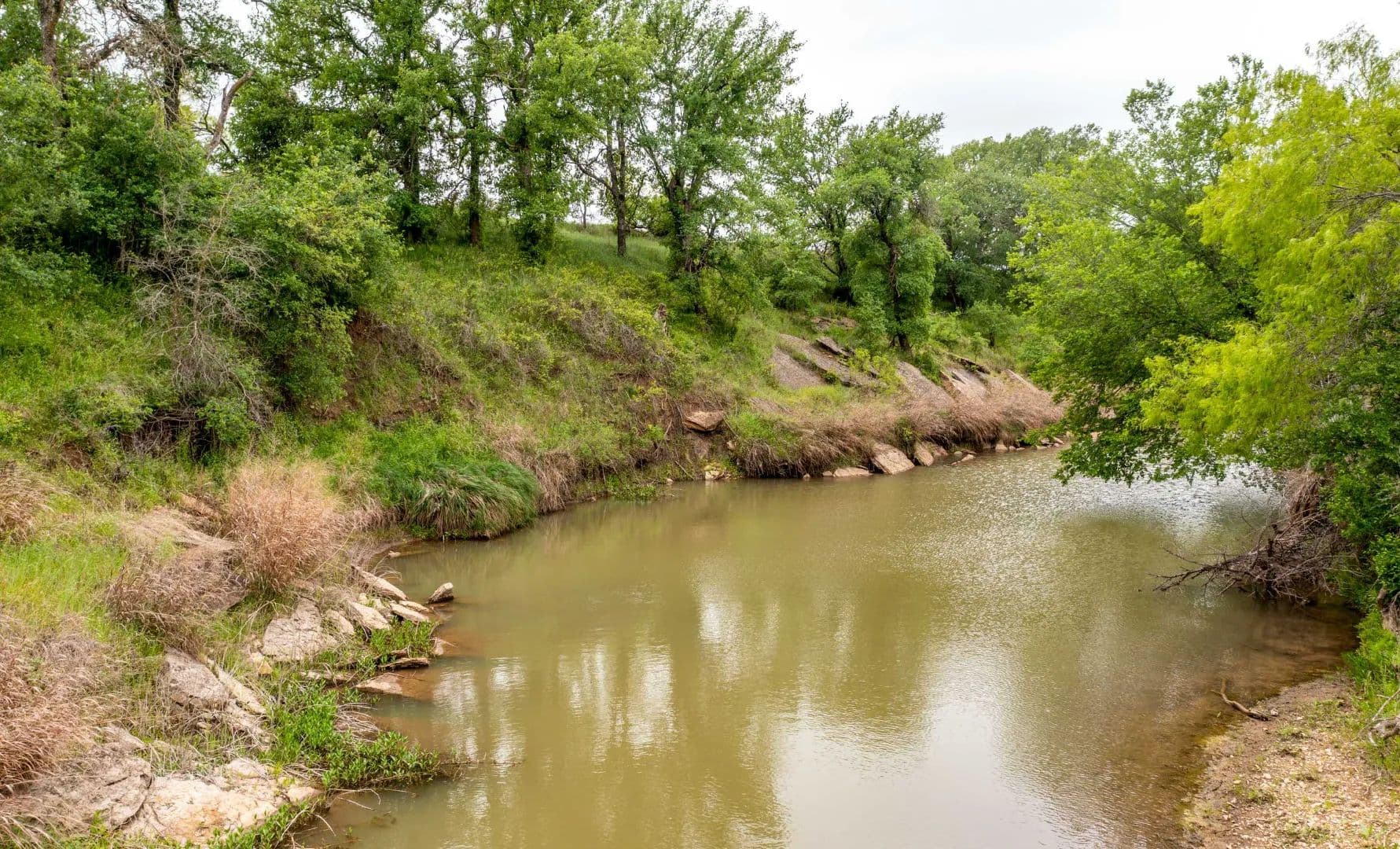 The Warren Ranch has been blessed with an abundance of live water. Wood Branch Creek, Bee Branch, Watts Creek and Knott Branch Creek all flow through the ranch, all ultimately draining into Jim Ned Creek, which is the major drainage in this area. Jim Ned Creek flows in total approximately five miles through the center of the property.