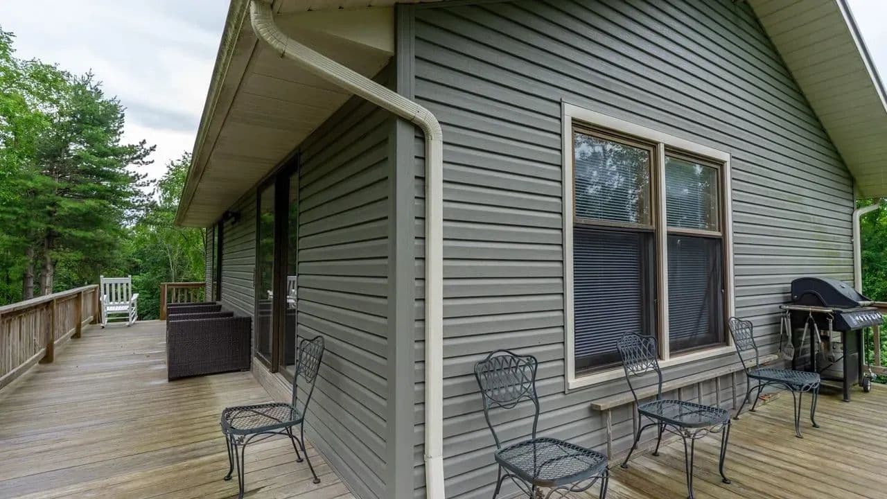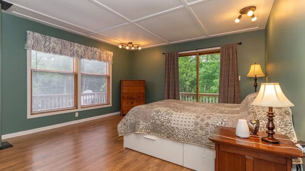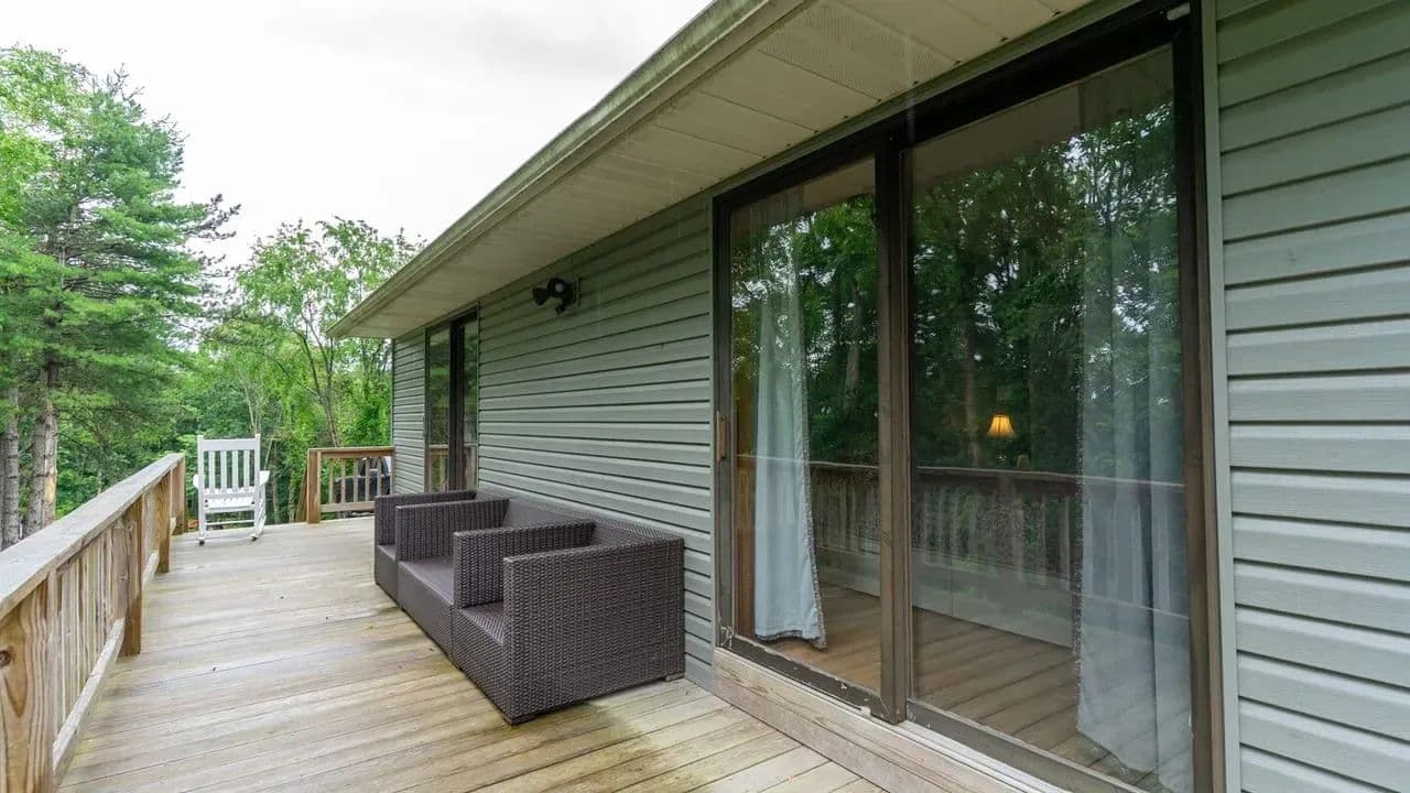 Wraparound deck offering quiet views of the surrounding woods