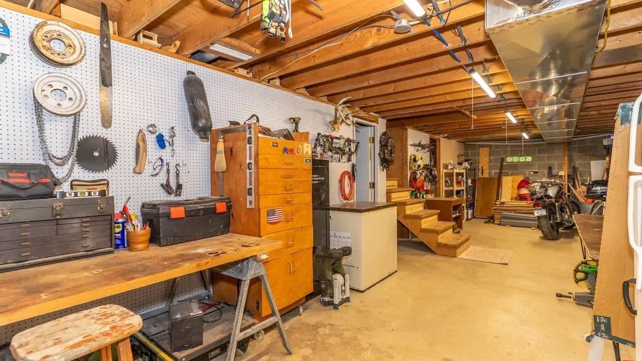 Ample space for storage or a workshop downstairs