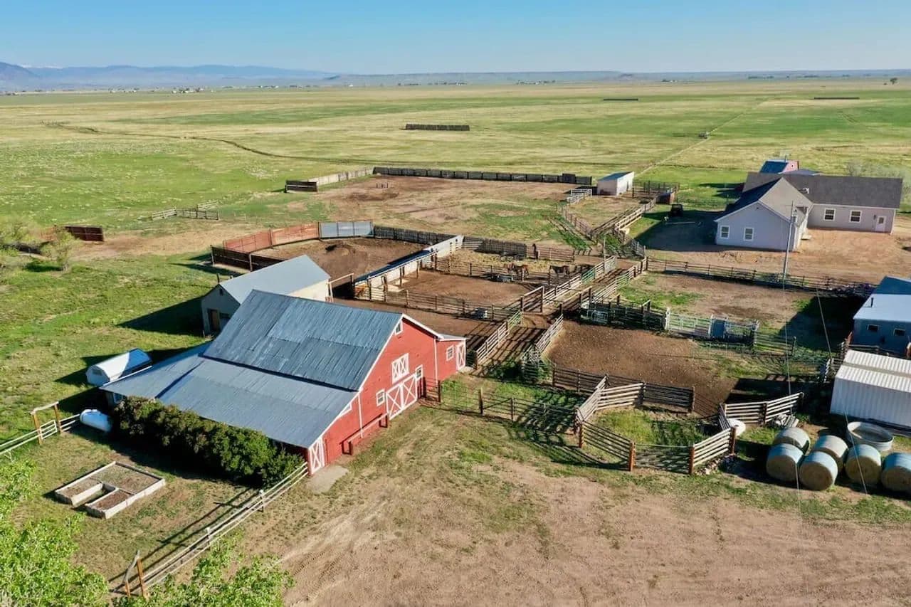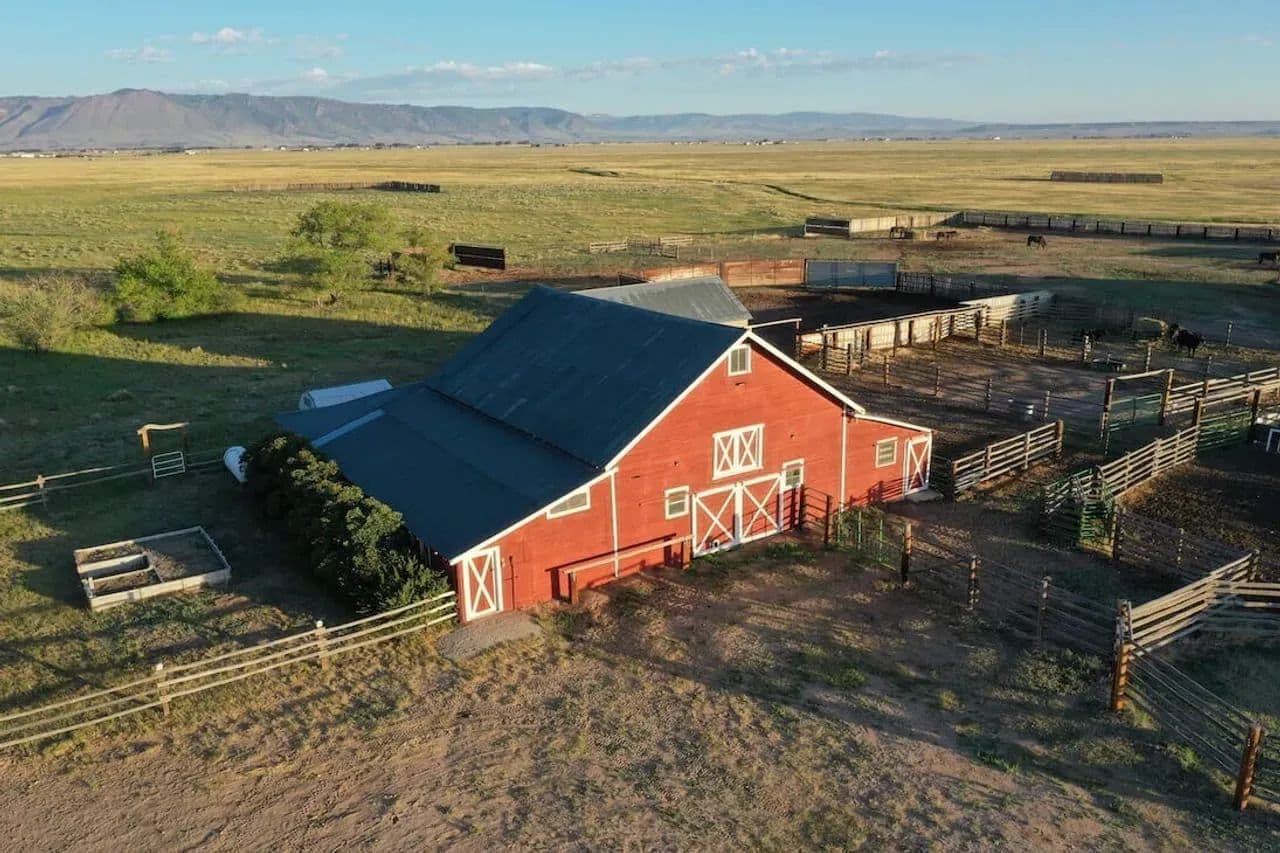 At the heart of the property stands the iconicred horse barn, a historic centerpiece equipped with calving facilities, complemented by a comprehensive set of corrals, round pen, multiple stalls and an expansive 190×200 riding arena, all designed to make ranch operations seamless.