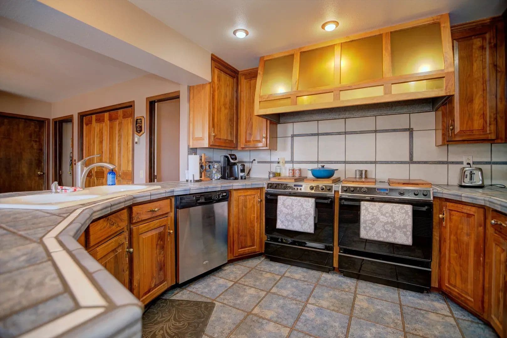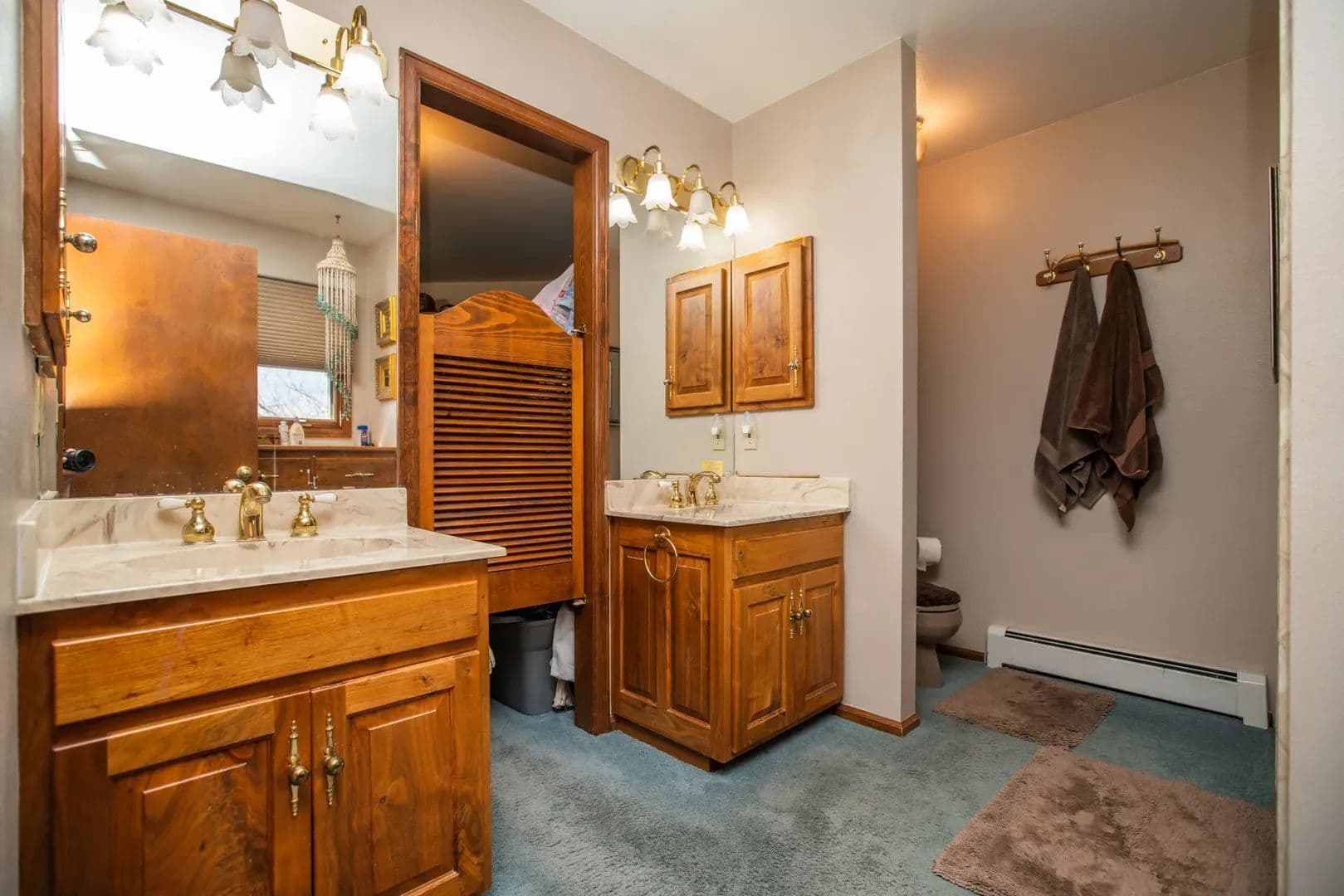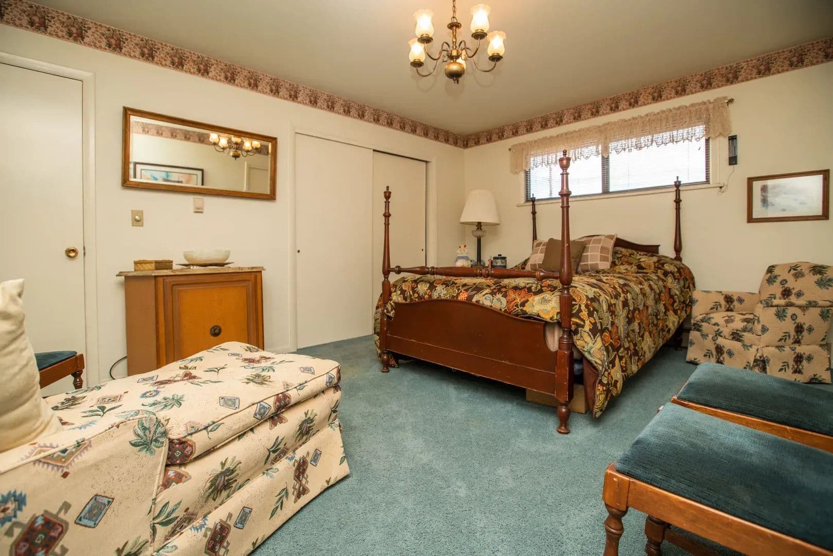 Improvements The home on the property is a sprawling -+ 5500 sqft home with 5 beds, 5 baths, two attached garages and views that won’t disappoint. The original home was built in 1967 and then was added onto in 1989. There are two beds on the main level of the home and three on the upper level. The main master bedroom is located on the upper level, it includes a balcony that looks over the property and soaks in the morning sun. the attached en suite has double sinks, built-in storage, and a large walk-in closet.
