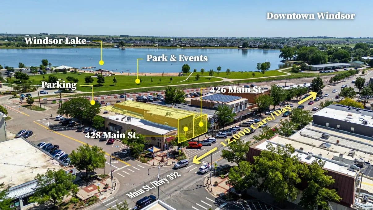 Top retail commercial building in downtown Windsor! The 426 Main St. building offers turnkey retail storefront space, including 1,708 SF of retail storefront, one bedroom apartment, and 2,632 SF of versatile shop space with high ceilings, plus a 1,808 SF unfinished basement. This is an excellent Main St. location that includes Windsor Lake views, shopping foot traffic, and room to grow your retail business or redevelop for other commercial uses. Land Situated in the heart of charming downtown Windsor, 426 Main St. offers a prime commercial location including front retail space with Hwy 392 frontage that sees over 12,000 cars a day. In addition there is an apartment with Windsor Lake views and rear access through an alley that is in the process of undergrounding utilities with plans for current grade parking lot development. Downtown Windsor allows for buildings to be built to 45’, with potential opportunities in the future to build to 65’ contingent on the upcoming Town of Windsor legislature. There is also currently an optional purchase of the adjacent 428 Main St. building.