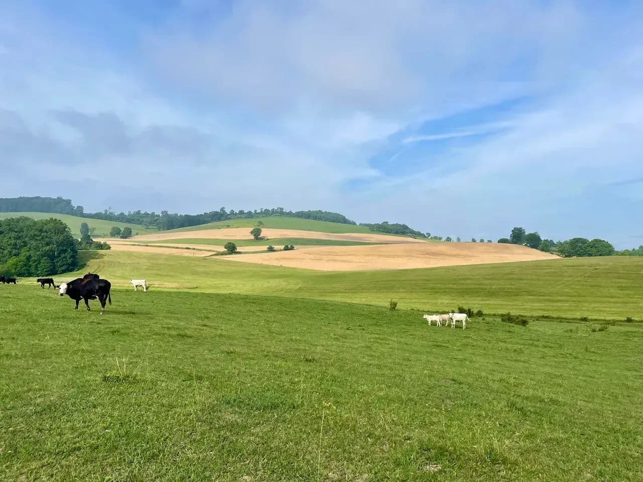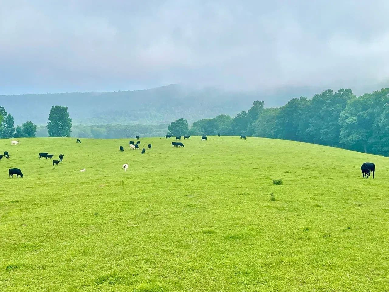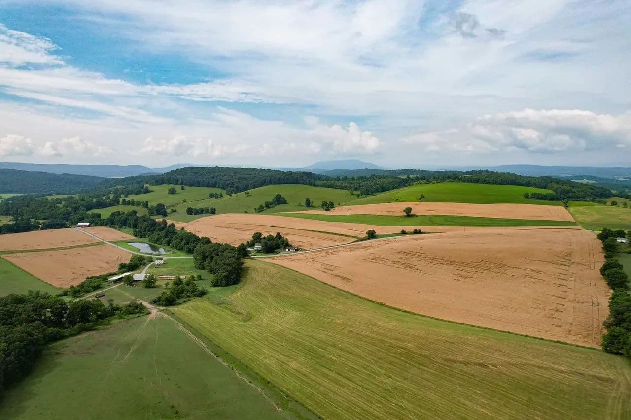 Breathtaking panoramic views of rolling pastures, working crop fields, and majestic surrounding mountain scenery