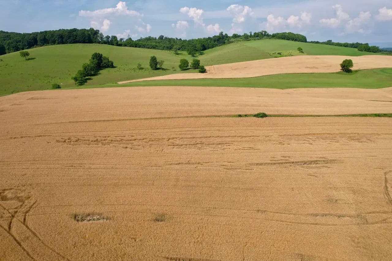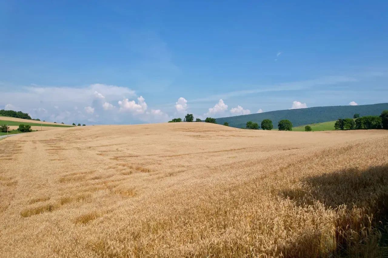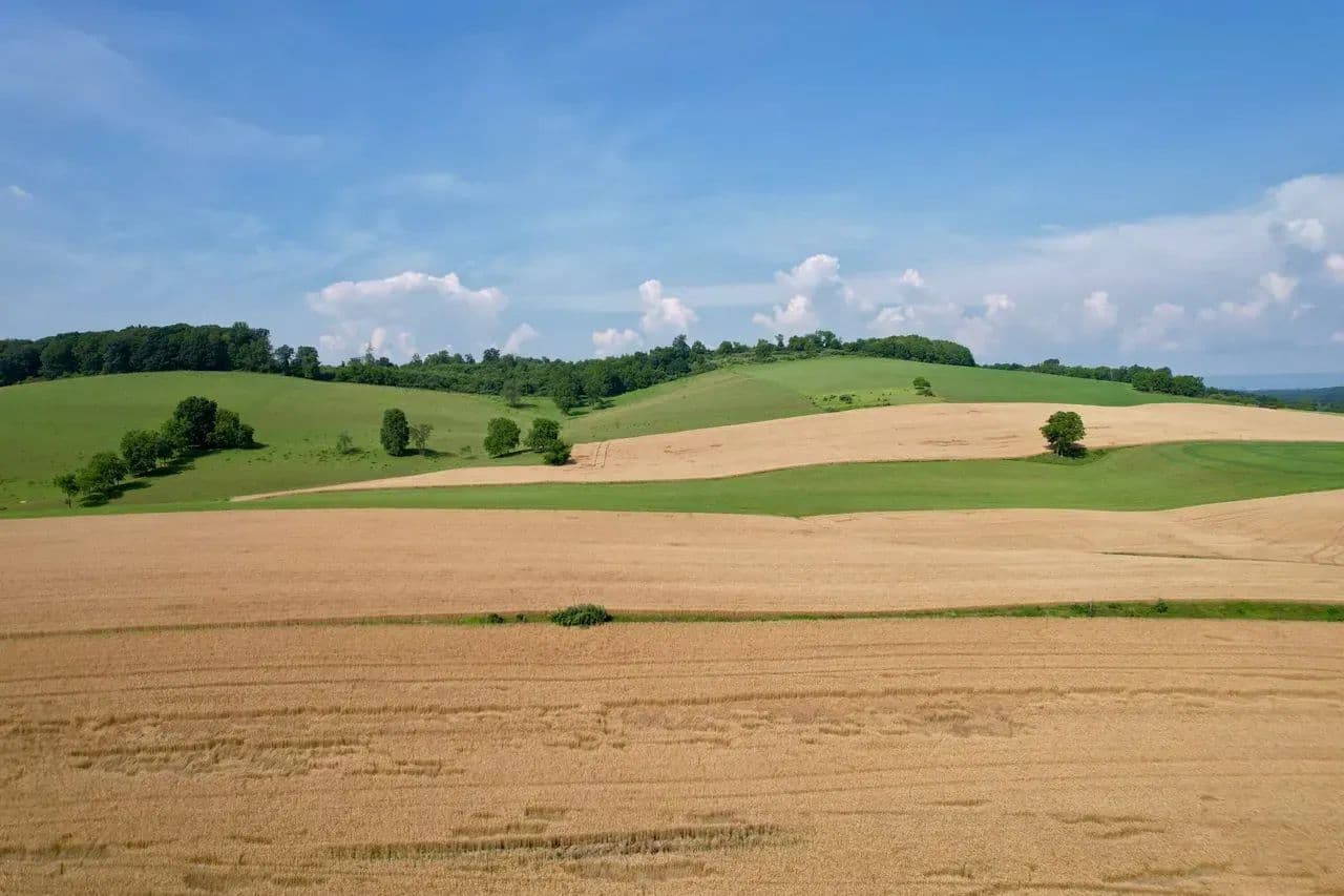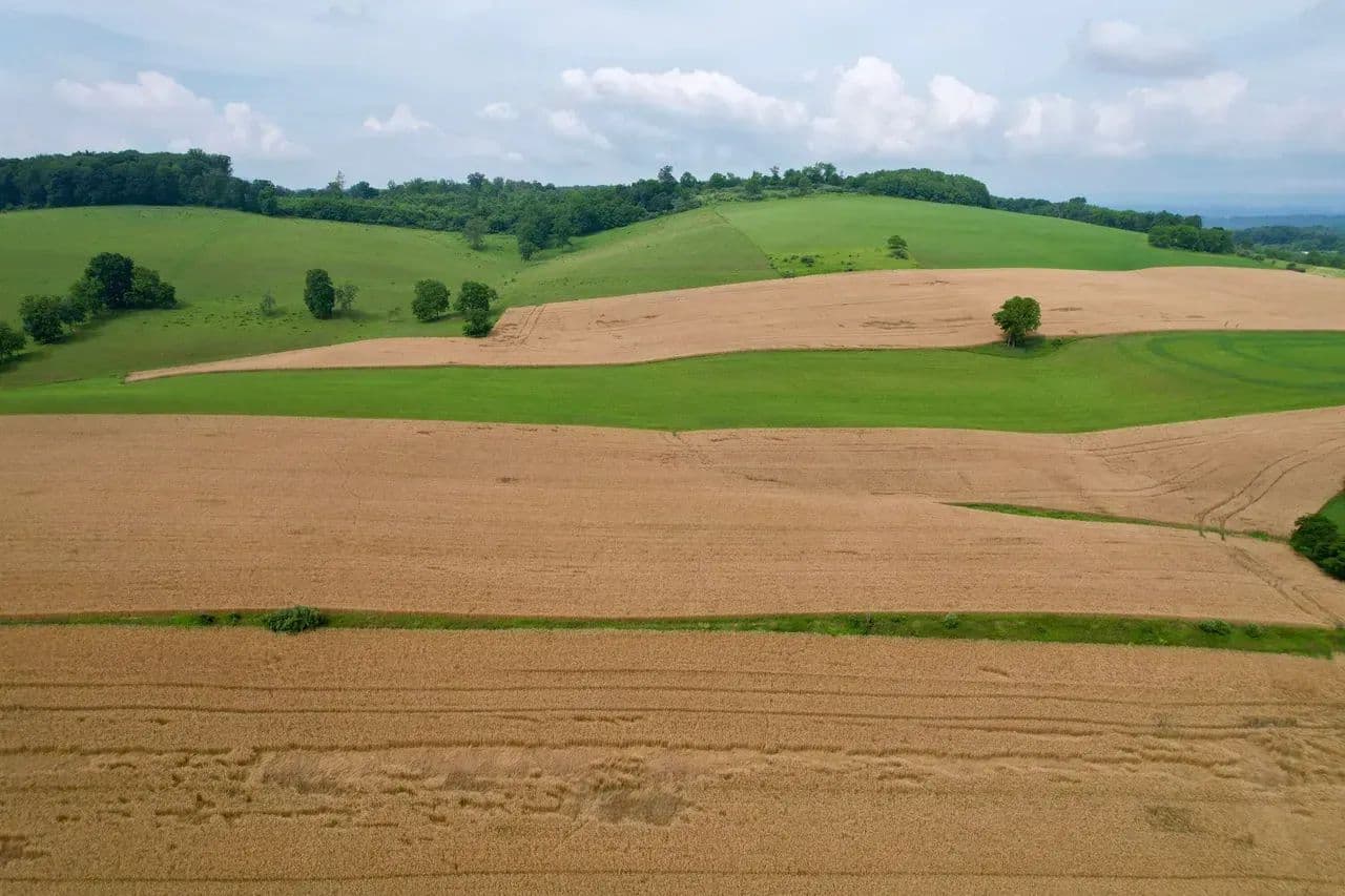 Breathtaking panoramic views of rolling pastures, working crop fields, and majestic surrounding mountain scenery