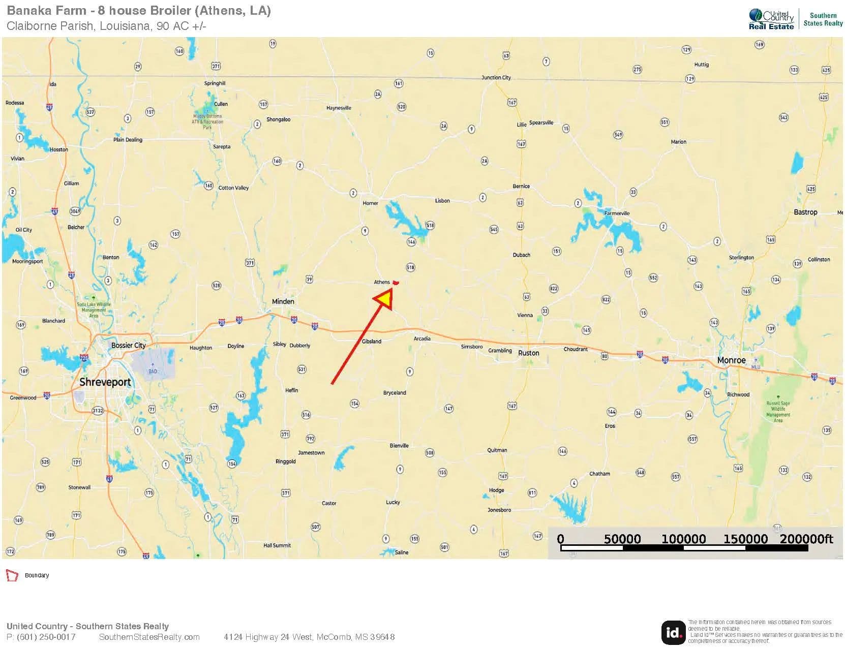 Turnkey 8-House Broiler Poultry Farm | Athens, LA | Claiborne Parish. Located just outside Athens in Claiborne Parish, this turnkey 8-house broiler poultry farm is a rare opportunity to acquire a fully updated and income-producing farm. Each of the eight 40' x 400' houses was completely gutted and retrofitted in 2020. This farm grows a 10 lb target bird and is under contract with a national poultry integrator, averaging 4.5 flocks per year. The houses are now equipped with Choretime feeders, Ziggity drinkers, LB White Oval 80 tube heaters, European-style vent doors, tunnel doors, 80' cool cells, bi-fold doors, and Rotem Platinum Plus controllers with full Rotem communication capabilities.The farm has (2) 150KW backup generators (installed in 2020), (2) 5 HP wells, (2) rural backup water systems, and is serviced by natural gas. Additional infrastructure includes three litter barns measuring 170' x 43', 90' x 43', and 70' x 43', providing ample space for litter management and storage. The property spans approximately 92 acres and features a 40' x 80' insulated two-bay shop ideal for maintenance, equipment storage, and hobbies. On-site housing includes a 3-bedroom, 2-bathroom single-wide mobile home for farm help along with a custom built 3,600± hsft 4-bedroom, 3-bathroom brick home overlooking the property. This is a fully operational, high-efficiency farm with the potential for a cattle operation and/or hay production. An equipment package is included with the sale. This farm is ready for a new owner to step in and continue production without interruption.