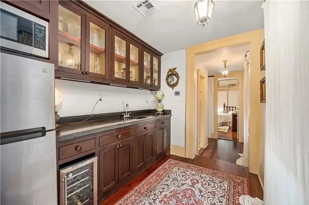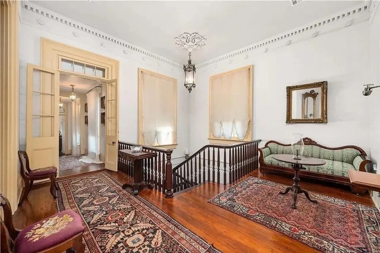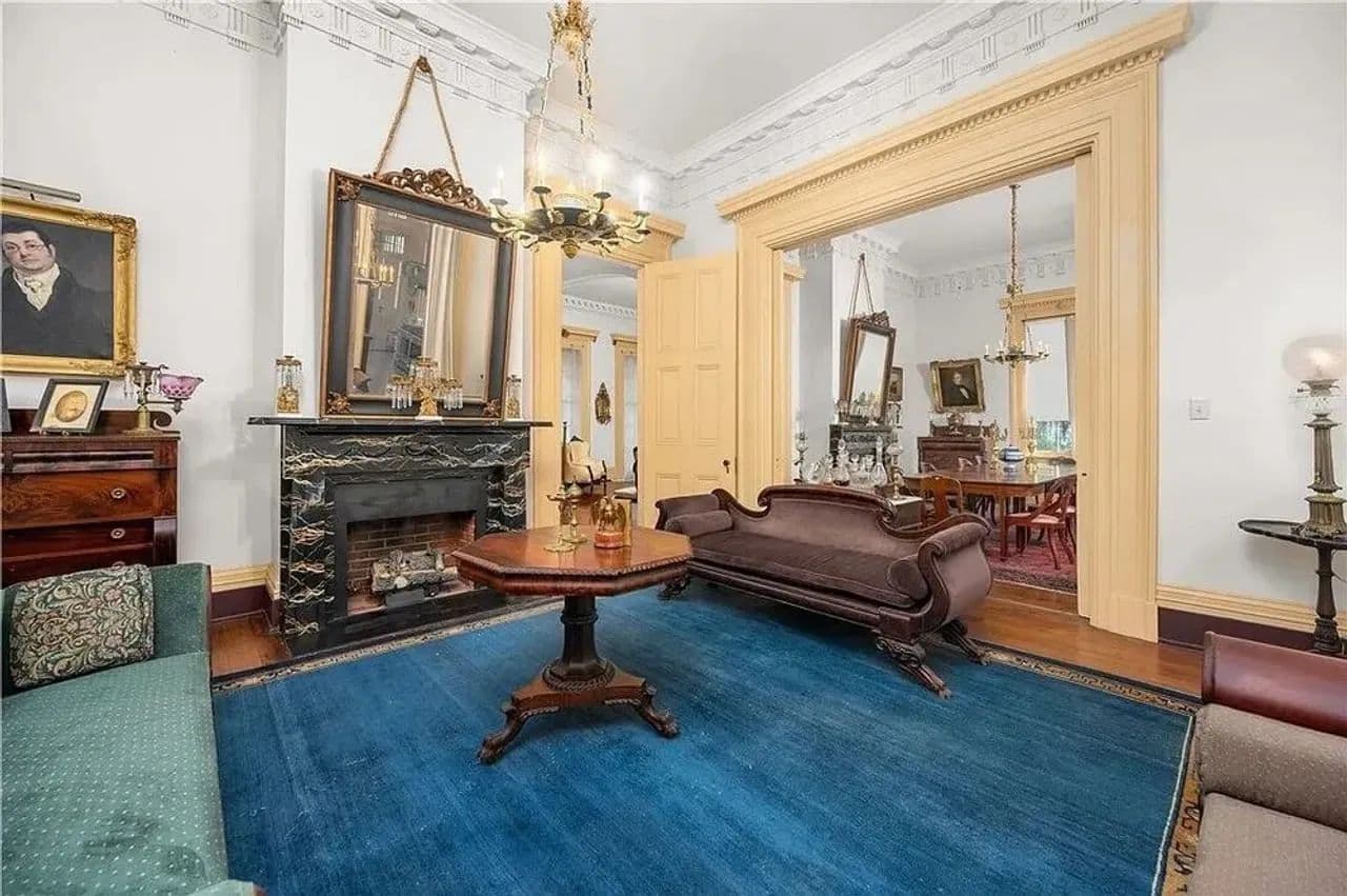 • Behind the double parlor are two other reception areas measuring 16’x20’ each. They are separated from double parlor by massive sliding doors