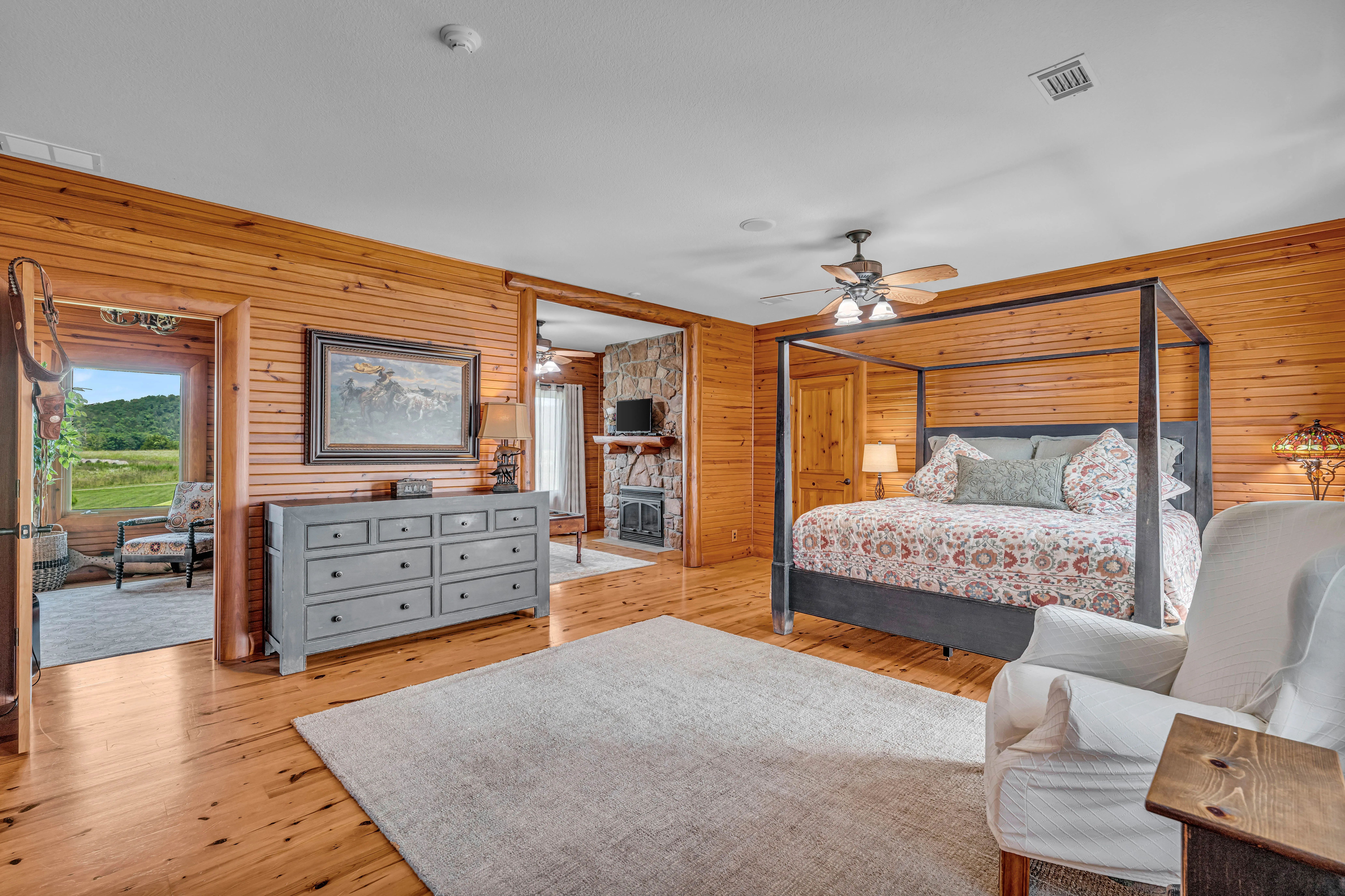 Offering 4,885 sq ft of well-appointed living space, the main home includes 5 spacious bedrooms and 6 bathrooms, blending refined craftsmanship with rustic charm.