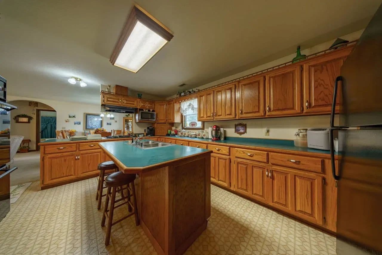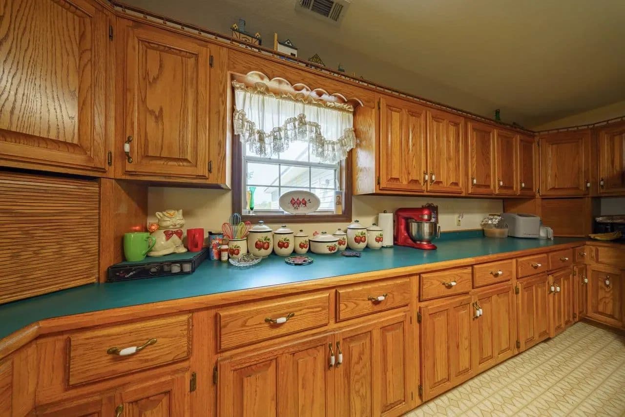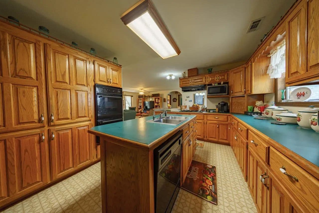 Kitchen: Abundant oak cabinetry, perfect for meal prep and family gatherings.