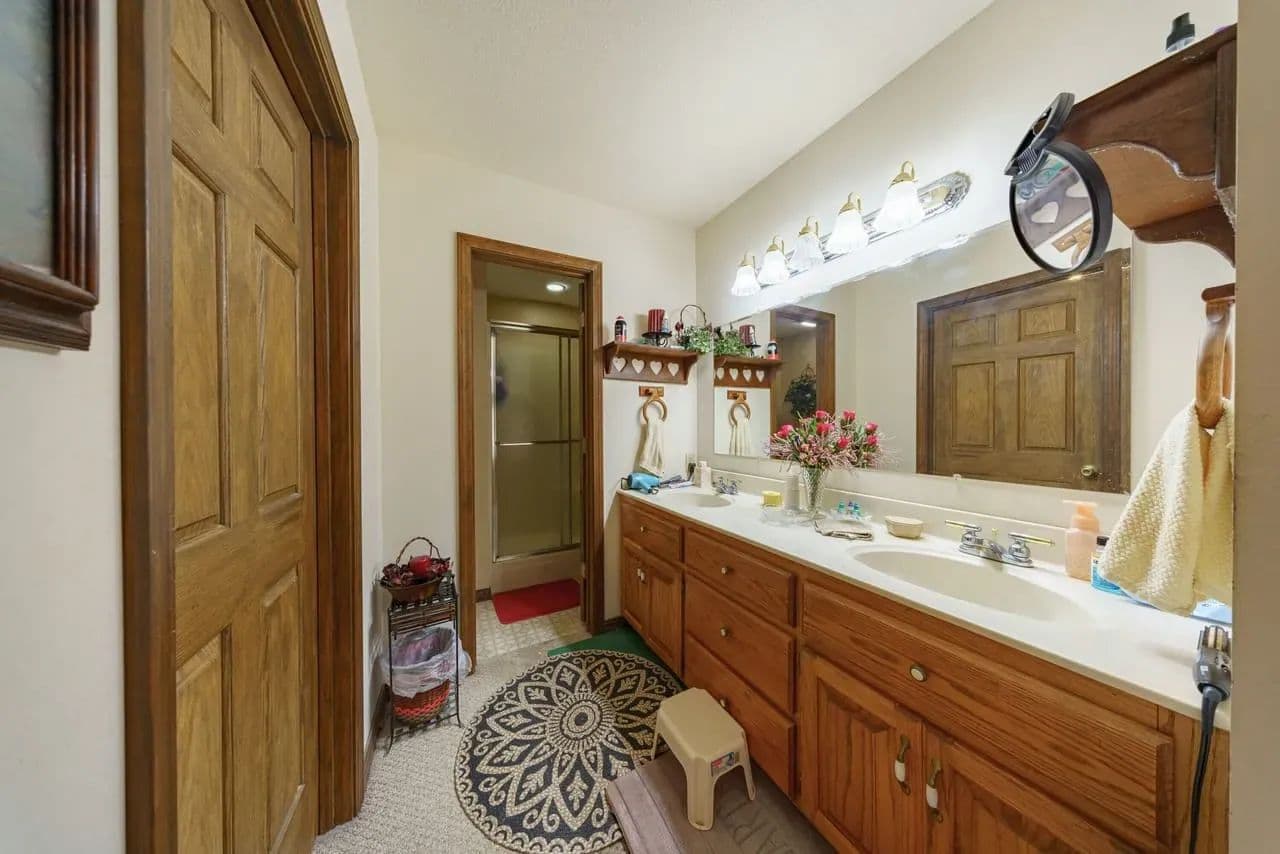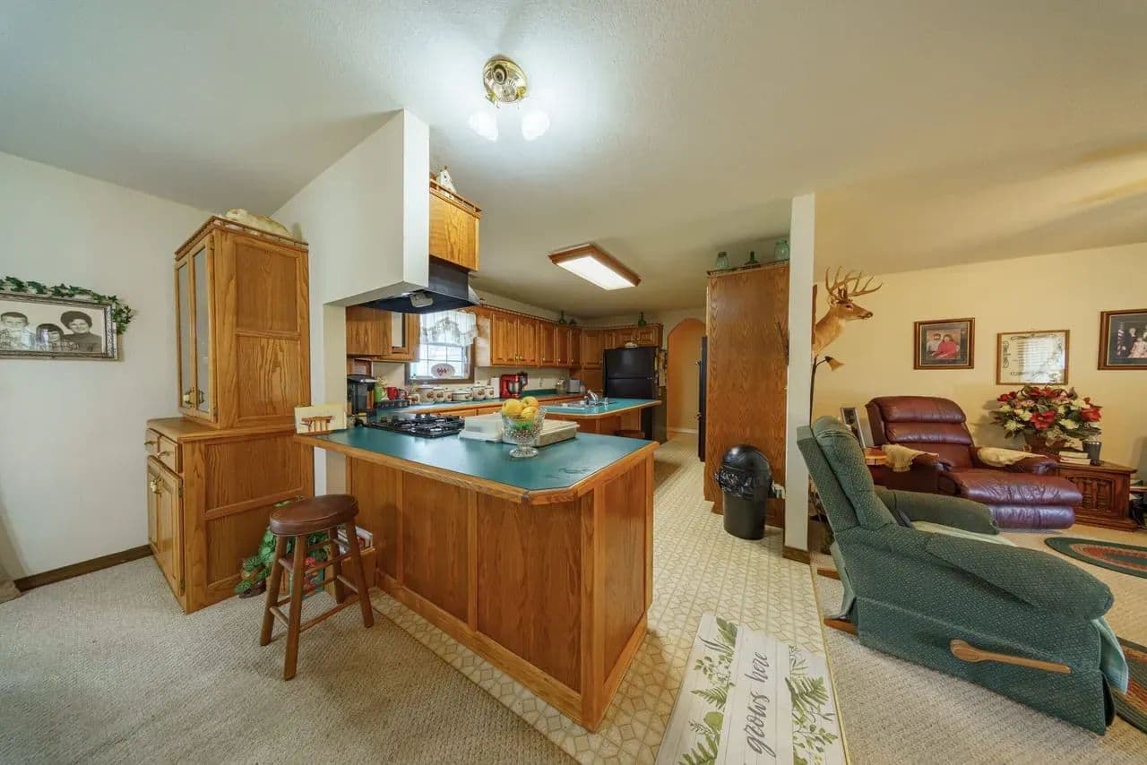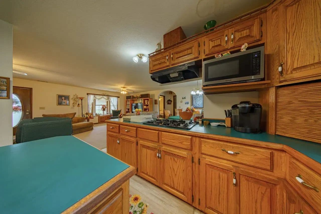 Kitchen: Abundant oak cabinetry, perfect for meal prep and family gatherings.