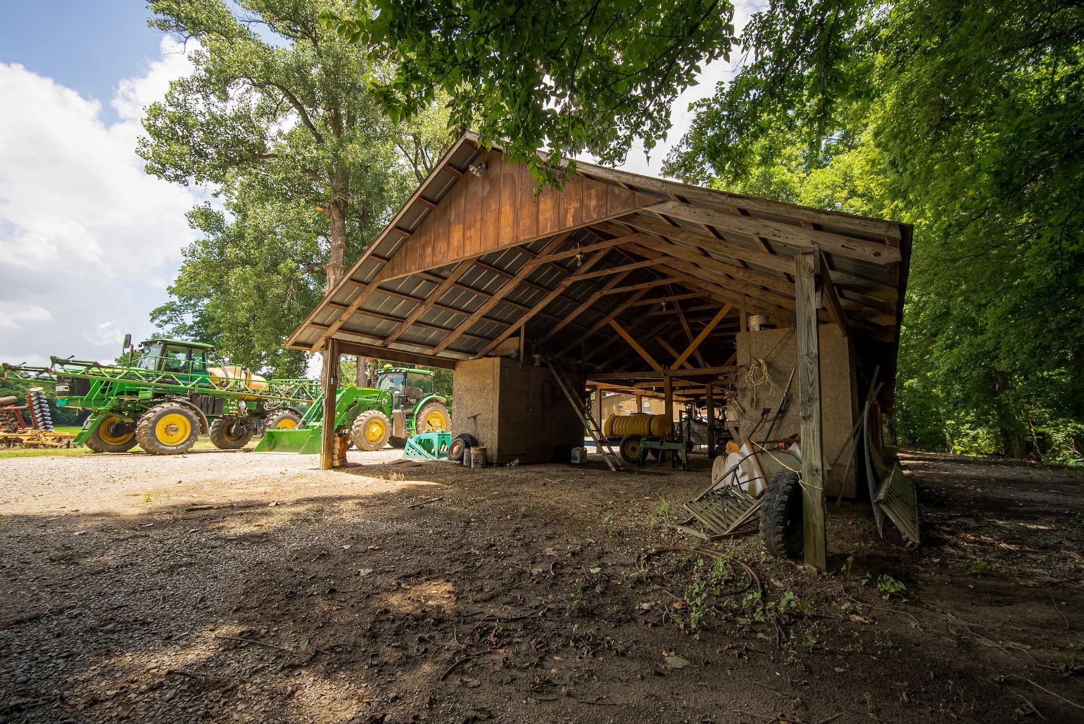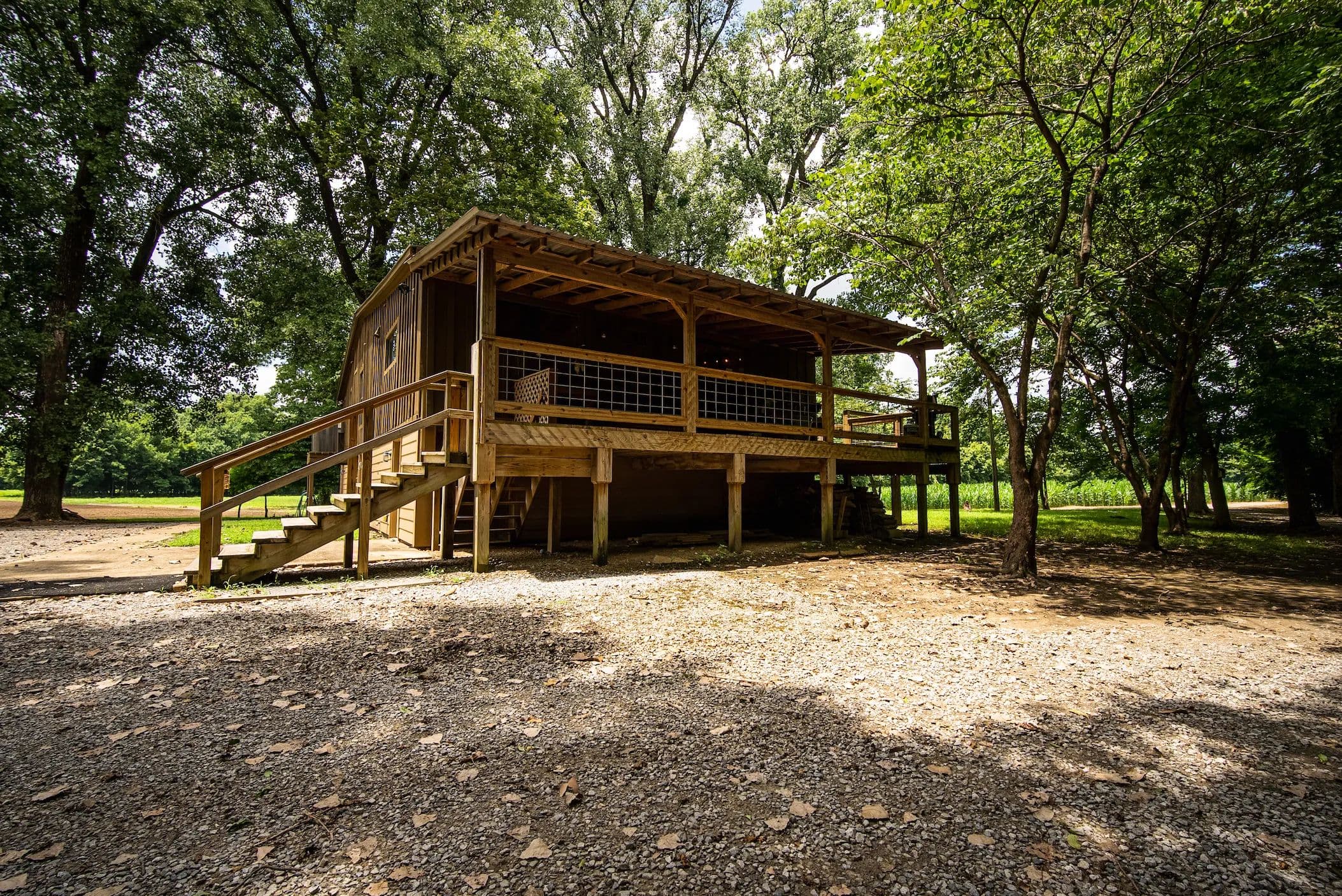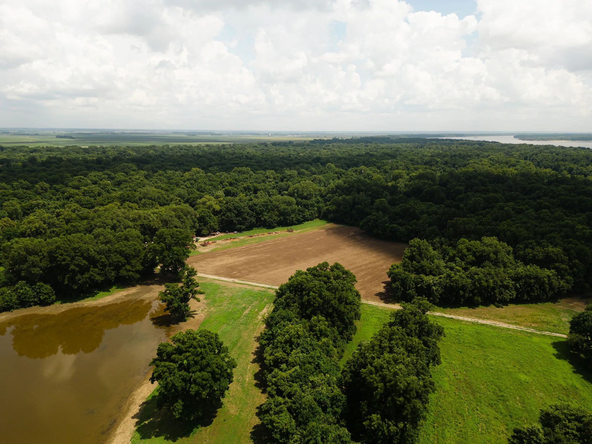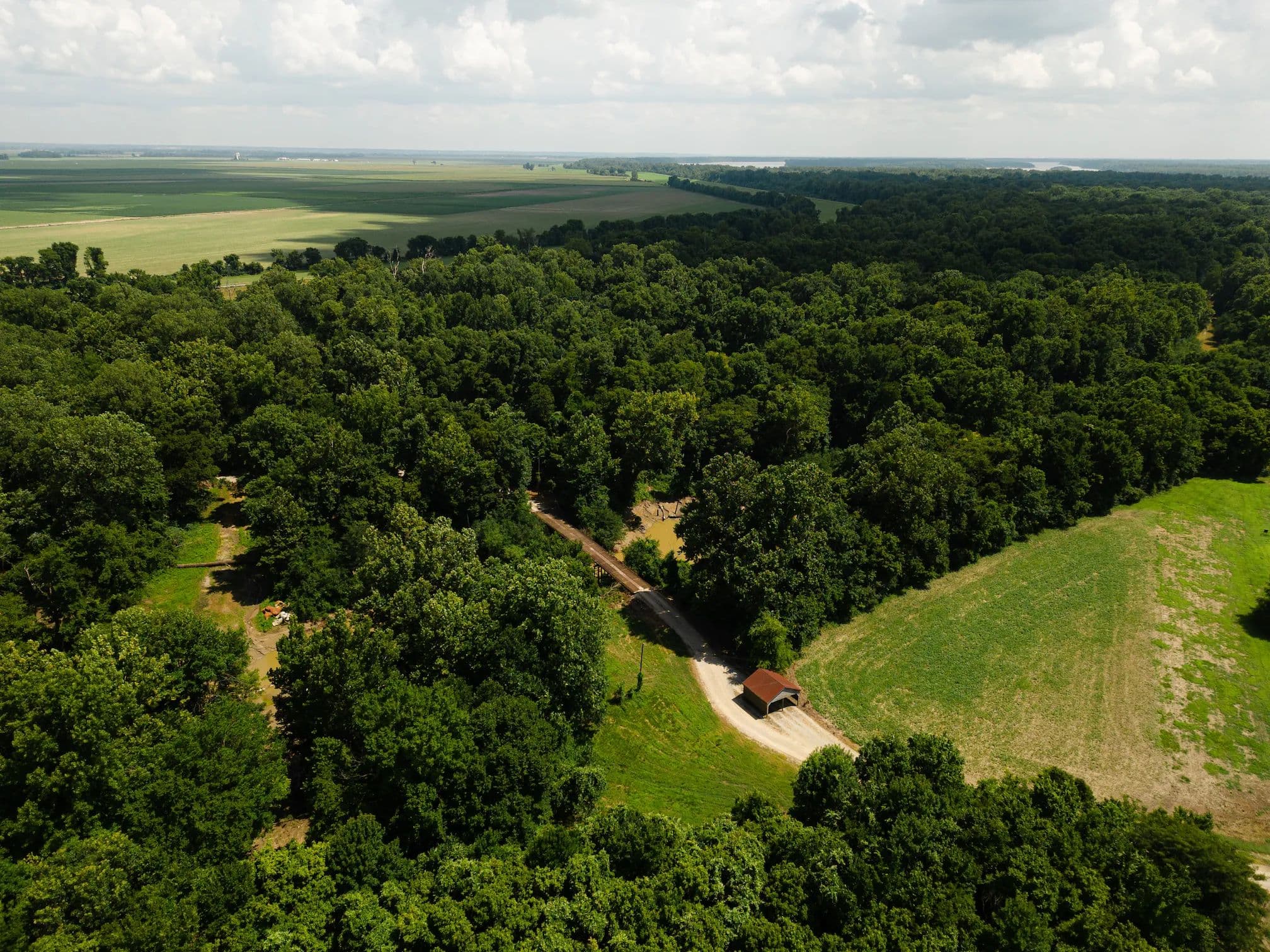 As you enter the gated property off the Mississippi River levee, you’ll wind along a 1.25± mile gravel drive to a secluded camp area near the middle of the property. A 1,550± square foot common camp features an open kitchen/living room with a fireplace, three bedrooms, two bathrooms, big porches, and a locker room underneath for all your hunting supplies. The elevated camp was renovated in 2011 and sleeps sixteen. Outside, you will find a covered shed for your side-by-side and an equipment yard for all the tractors and implements.