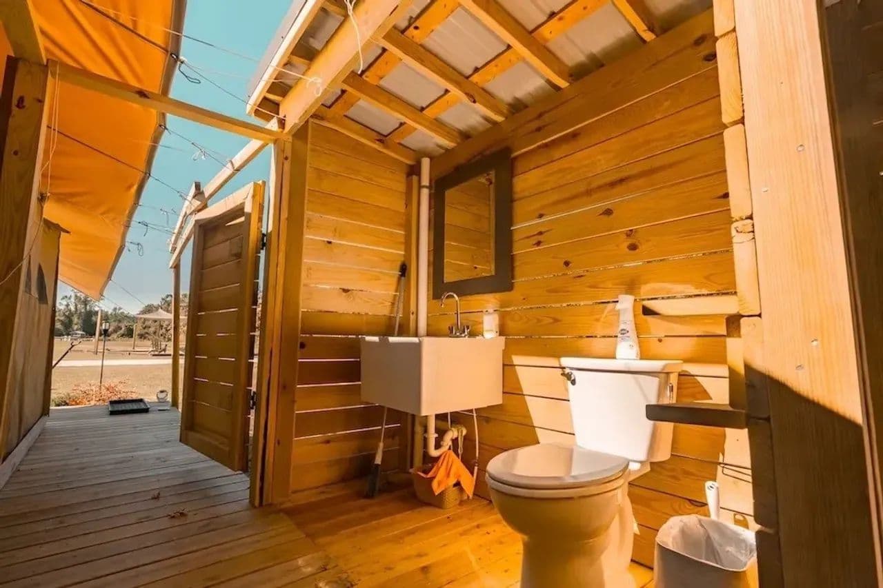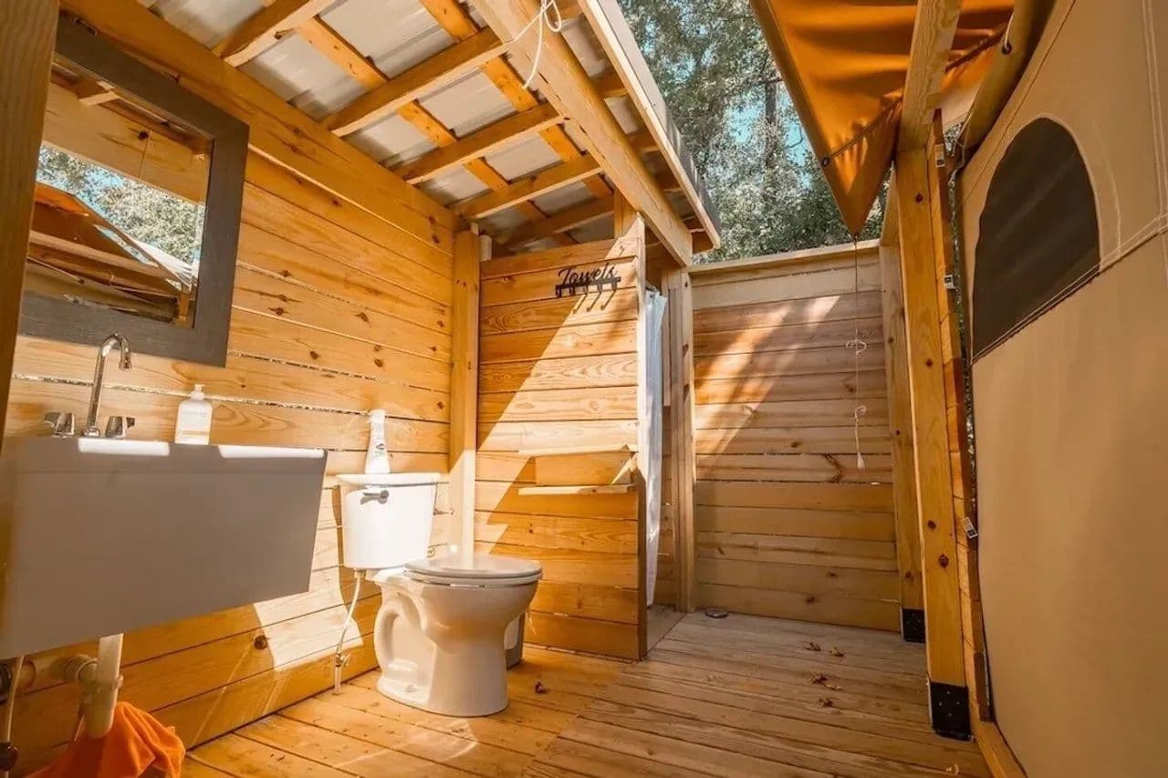 The King and Queen tents typically rent out in the fall and winter months. Both come with beds, refrigerators, fans, and plenty of privacy. They each have their own outdoor bath houses as well (see photo gallery).