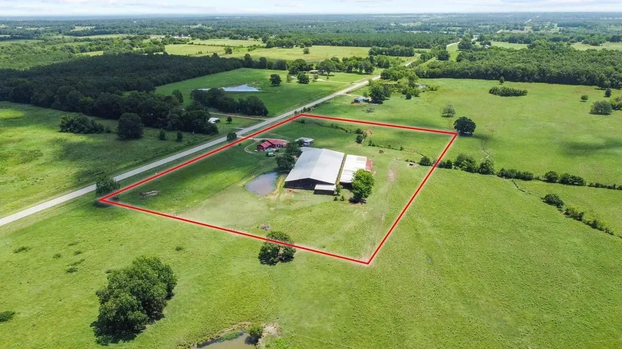 Owned by former 2 time National Finals Rodeo calf roper and built for team roping, rodeo and horse enthusiast in mind! Take a look at this rustic ranch style custom built home located in SE Oklahoma on 8 MOL acres. Fenced and cross fenced, highway frontage, a stock pond and Ag exempt. Featuring a 4 horse stall barn with wash bay and tack room, 100x200 covered arena with stock chutes and headgate, 20ft box, catch pens, lights and water. An additional 50x150 covered arena area as well. A small set of working pens and a storage/ shop area. The home offers rustic finish outs, log siding, metal roof, 2 full bedrooms and baths along with a loft. Large kitchen and two living areas, covered patio/ porch area and heated swimming pool out back for entertaining and enjoyment. Just North of the Texas state line and West of Idabel Oklahoma, The place is waiting for the the future roping champion to take the reins!