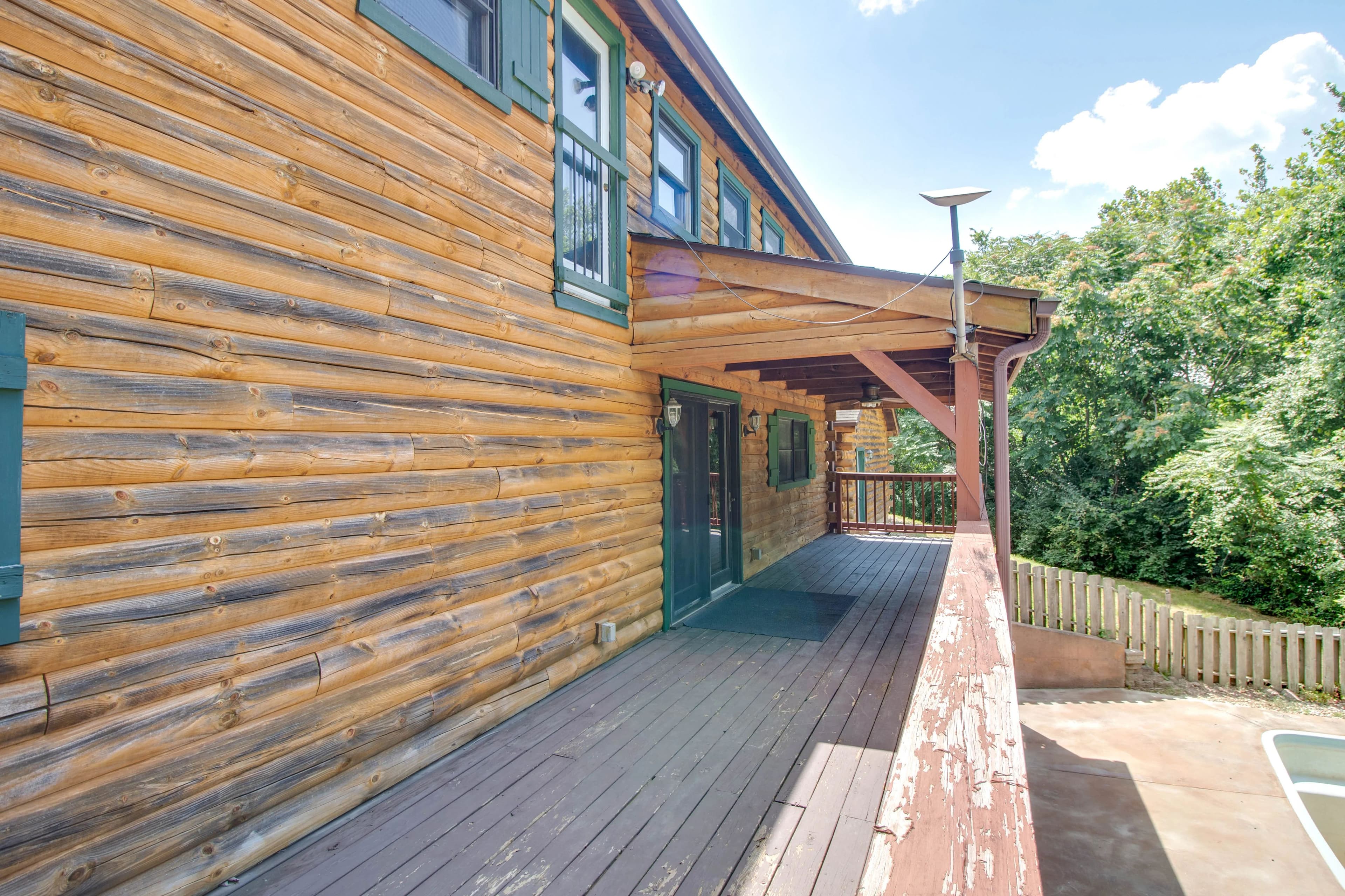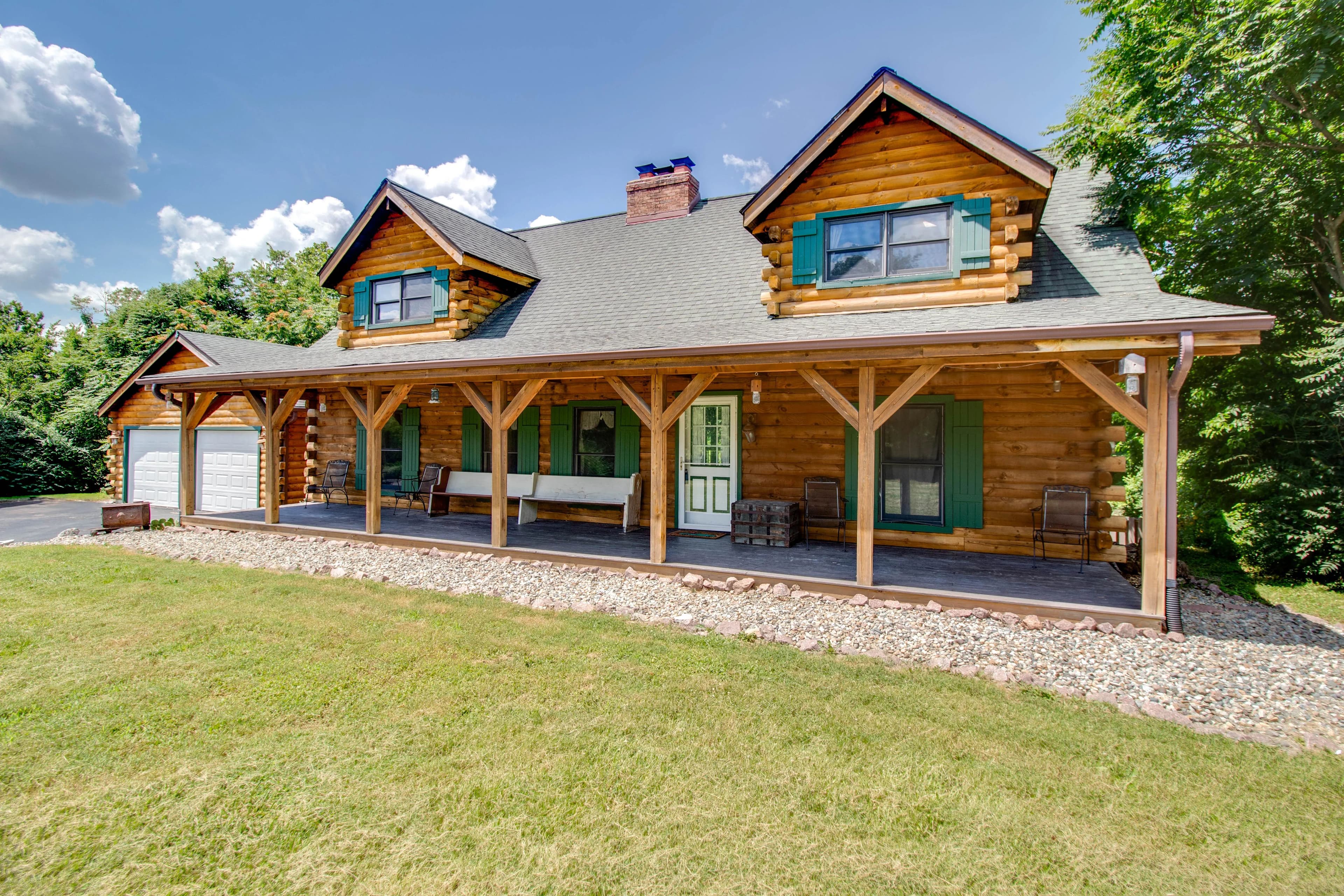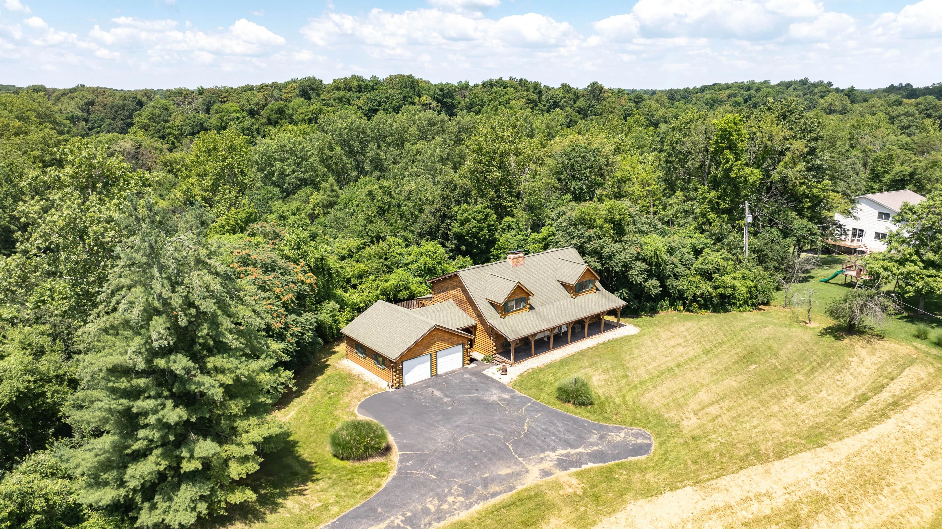 Nestled on 5.1 acres just outside of Millstadt, Illinois, this stunning log home offers the perfect blend of rustic charm and modern comfort. Surrounded by mature trees and open space, the property provides a peaceful retreat while still being conveniently located near Belleville, Columbia, and just a short drive to downtown St. Louis. Inside, the home features an open-concept main floor with soaring ceilings, exposed log beams, and a cozy wood-burning fireplace that anchors the living space. The kitchen is outfitted with stainless steel appliances and custom cabinetry, making it ideal for cooking and entertaining. Hardwood floors run throughout the main and upper levels, and the main floor laundry adds everyday convenience. With three spacious bedrooms and three full bathrooms, there’s plenty of room for family or guests. The primary suite offers a private en-suite bath, while a non-conforming bedroom in the finished walkout basement provides flexible space for an office, guest room, or workout area. The basement also includes a full wet bar and entertainment space - perfect for hosting. Step outside and enjoy your own private oasis with an in-ground swimming pool surrounded by a generous patio area. Whether you’re relaxing by the fire in the winter or enjoying summer days poolside, this property delivers year-round comfort and charm. If you’re looking for space, privacy, and a one-of-a-kind home with timeless character, this log home is a must-see!