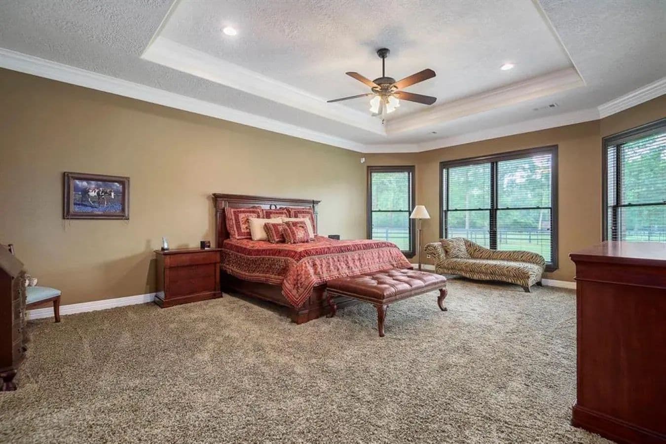 Incredible Custom home nestled on almost 8 acres of pastures and mature trees conveniently located close to the growing shopping community of Magnolia Place, Magnolia High school and easy access to the Aggie Expressway. So many features and meticulously maintained by the original owner. Enormous gourmet kitchen, high end appliances, extensive Marazzi Italian tile, Pella windows, game room w/bar, sink, wine cooler and ice maker, magnificent family room w/ceiling beams and pecan fireplace mantle, huge master retreat w/island in closet, 2nd master suite down, game room/media up and computer niche, large secondary bedrooms each with en-suite baths. Cameras and safe room.4 car garage with epoxy floor, built-ins, water softener and walk in attic storage. Stunning barn with 4 over sized stalls, high pressure fans, wash stall w/hot and cold water, A/C in tack room and extra room w/sink and 1/2 bath, fenced arena 120x125 with custom footing. All fencing is Buckley Steel. An Equestrians paradise!