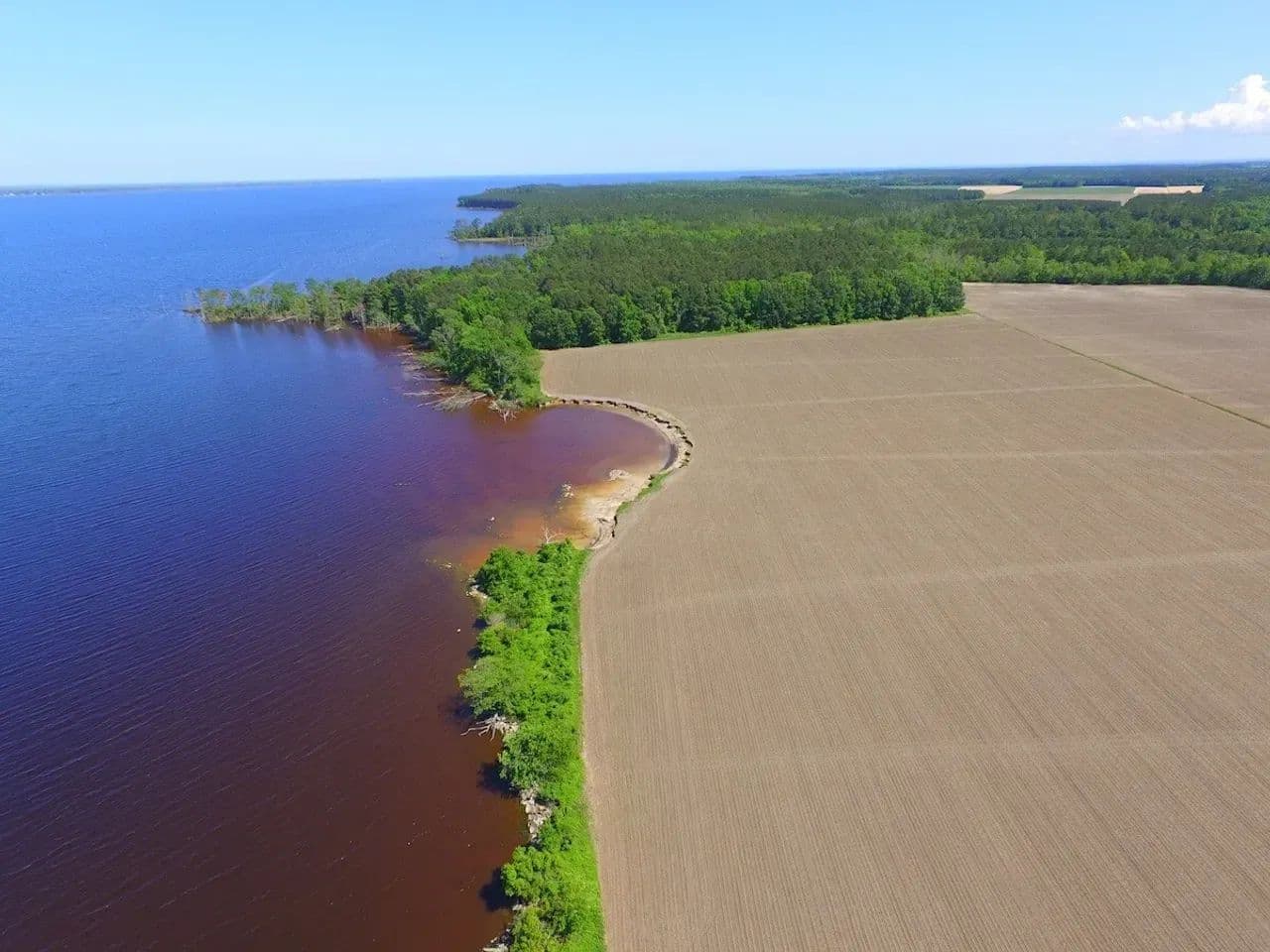 Beautiful +/- 170AC Riverfront residential development, recreational, or farm and timber property for sale on the Pasquotank River just South of Newbegun Creek with the Southern property line on Joyce's Creek in Weeksville, NC which is in Pasquotank County. 325’ of road frontage on the paved portion of Harvest Point Road and an additional 310’ of road frontage on the gravel portion of Harvest Point Road. Current A-1 zoning allows 10AC minumum lot sizes, but the adjacent 50AC property was just rezoned to R35A in November of 2024 which allows for 43,000 square foot minimum lot sizes making this a prime candidate for development if rezoned. 96.92 AC of FSA farmland currently leased to a farmer through harvest in 2025, approximately 70 acres of woods. 31.75 acres outside of the flood zone, 42.08AC in the X or 100 year flood zone where flood insurance is not required with a mortgage, and the remaining 96.17AC is in AE flood zone. Roughly 40 acres of the woods appear to be wetlands. Great hunting opportunity for deer, turkeys, ducks, doves, rabbit, squirrel, and the waters of the Pasquotank River are home to healthy populations of striped bass, flounder, red drum, speckled trout, largemouth bass, black drum, sheepshead, white perch, catfish and more. The woods have a very nice mix of pines, oaks, cypress and more with mature trees in the higher areas. Approximately 8250' of total water frontage and 1,400' of water frontage that is not in the flood zone. Roughly 7250’ fronts the Pasquotank River and an additional 1000’ fronts the very scenic Joyce’s Creek. +/-90’ pier in place near Northern property line. Farmer has rights to harvest crops. Corn and soybeans are historically the crop of choice. Buyers can subdivide into 10AC lots or can rezone to R35A for more density with 43,000 square foot minimum lot sizes. Sellers wish to retain small 2AC portion on South side of Harvest Point Road. Soil consists of a mixture of silt loams including Perquimans, Gertie, Yeopim, Chapanoke, and a little bit Wahee near Joyce’s Creek.