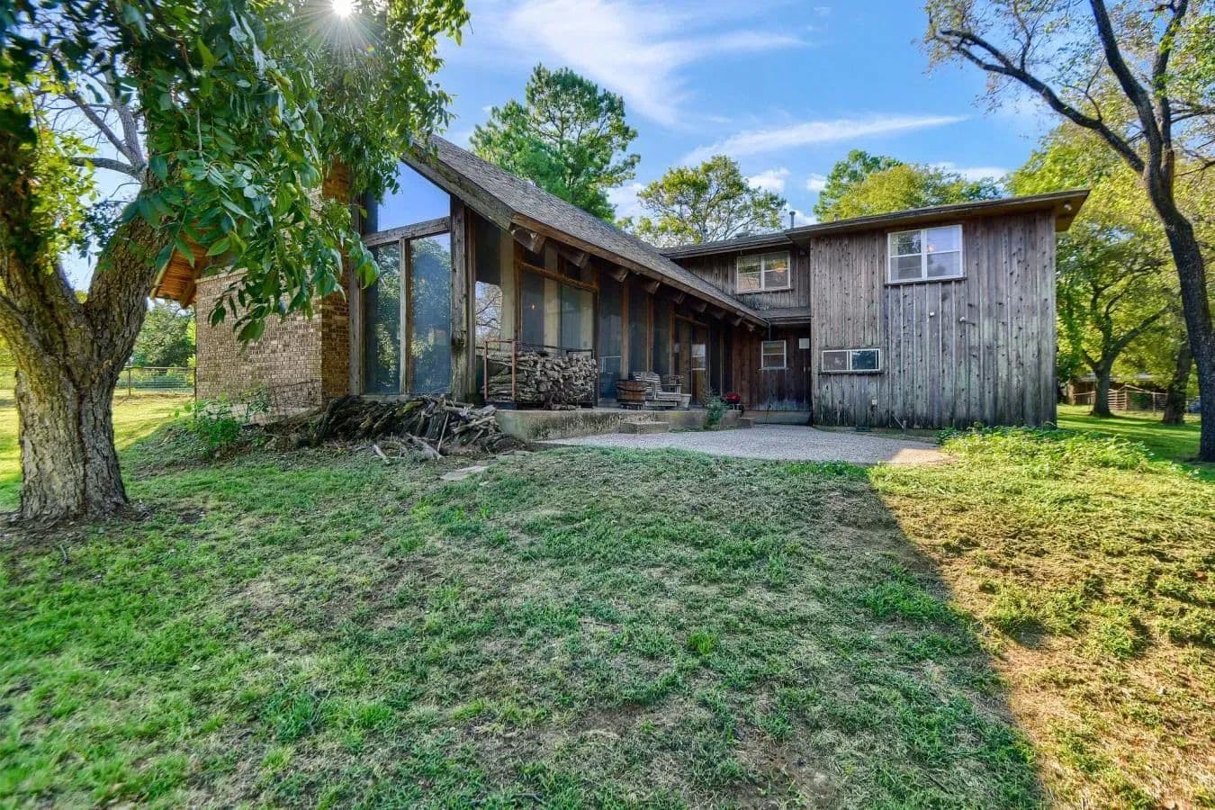Beautiful 6 bed 3 bath home in the heart of Denison Tx! This one of a kind homestead is perfectly situated on 6.3 acres with mature trees, pond for livestock and fishing, cross fencing, open pasture, and plenty of outbuildings for hobbies and storage. The home's expansive great room features vaulted ceilings, natural light from the beautiful wall of windows, a hidden dry bar, and a floor to ceiling stone fireplace. Rustic wood slats line the walls and ceilings, and exposed beams run along the soaring vaulted ceilings. This space is ideal for hosting and entertaining, or just enjoying the beautiful views. The kitchen features custom cabinetry and bar seating. Large master retreat with bathroom en-suite, oversized garden tub with separate shower, and natural skylight! Bring your vision and make this property your own slice of Texas paradise right in town!