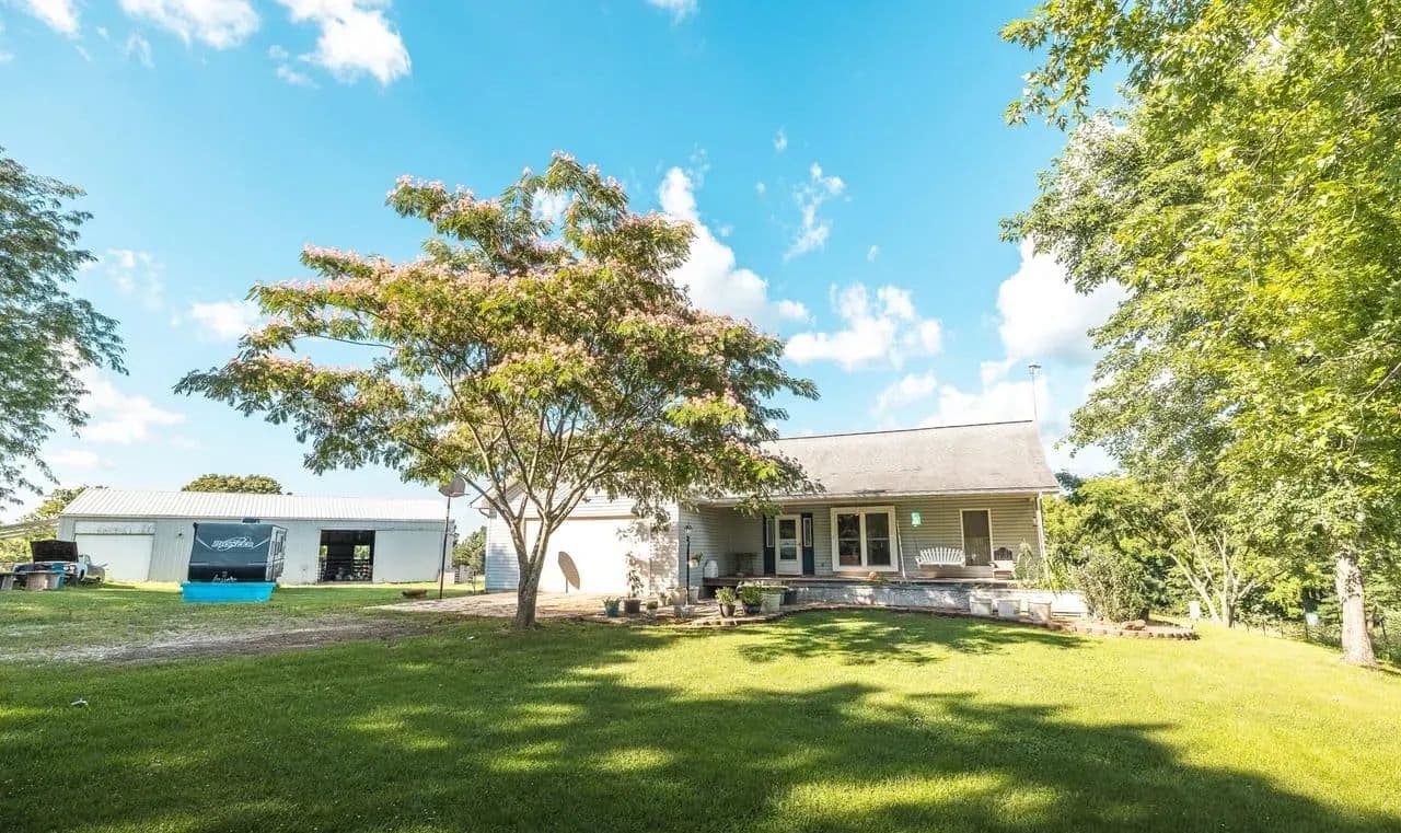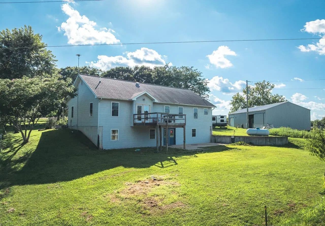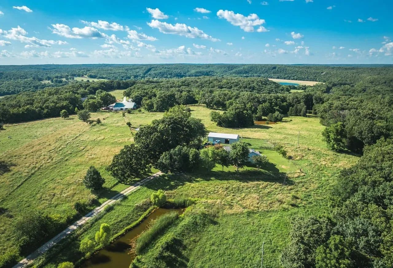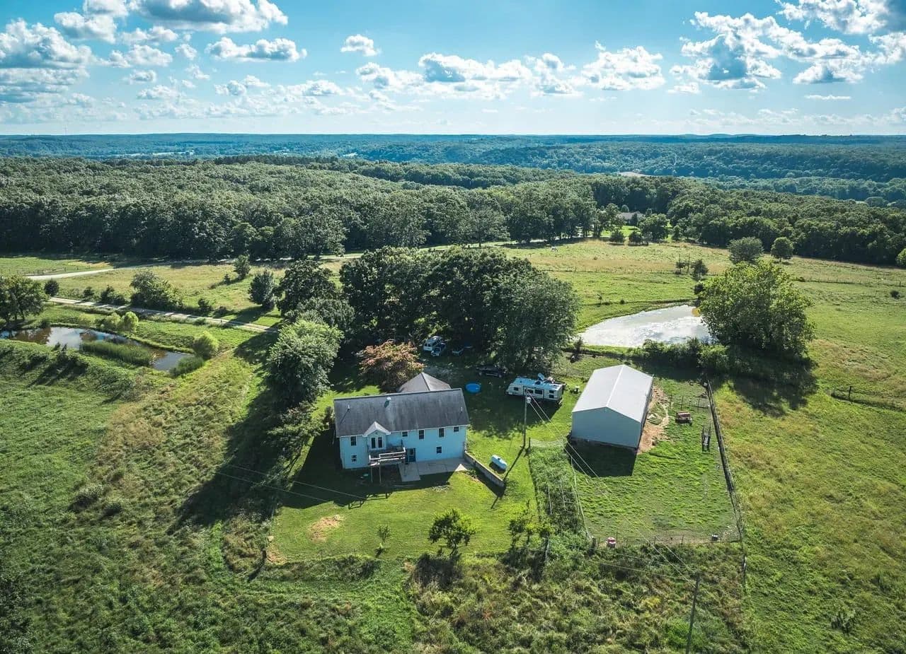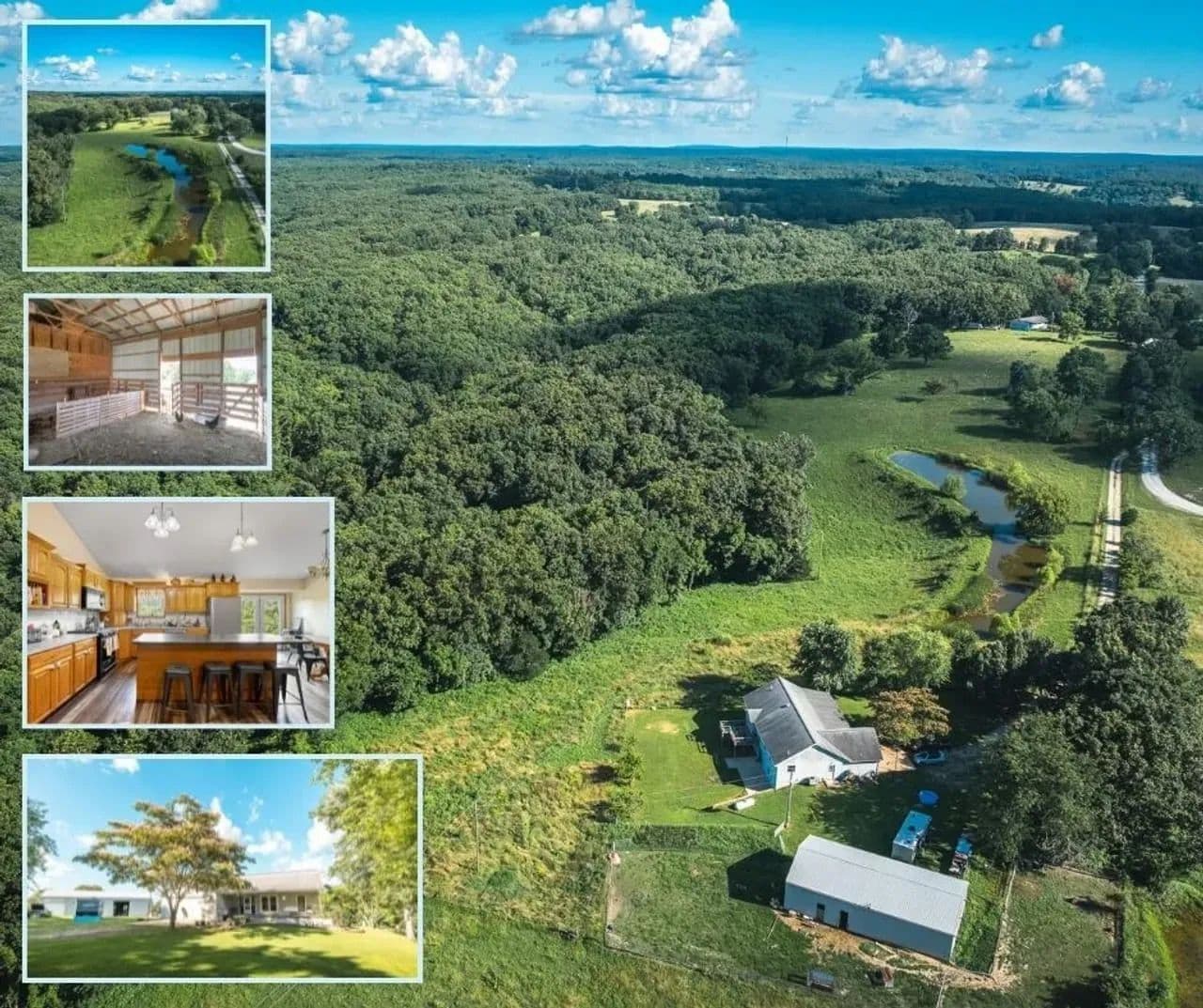 Just 4 miles from Steelville, MO, this 20-acre property offers the kind of space and solitude that’s getting harder to find. The custom home sits back from the road with no neighbors in sight—just woods, pasture, and a stocked pond right out your back door. Built in 2004, the home feels open and airy with vaulted ceilings, large windows, and French doors that lead to a back deck overlooking the countryside. The kitchen is a true focal point, with beautiful cabinetry, a breakfast island that keeps everyone connected, large walk-in pantry and gas chef’s stove ready for real cooking! Off living room a cozy den/reading room -now bedroom offers a faux rock gas fireplace—perfect for winter evenings. The primary suite features cove ceilings, a walk-in closet, and a bathroom with double sinks, a whirlpool tub, and a separate shower. Downstairs, so much potential the walkout basement brings in plenty of natural light and includes a large laundry room, full bath, two bedrooms with windows, and an open area. The basement needs drywall on ceiling and flooring. Could also add a kitchen for inlaw suite. Outside, you’ll find 1800 sq ft metal building, the shop with 220 electric, concrete floor and includes a tack/feed room between the shop and the barn, set up for small livestock and includes a large chicken coop. The property’s a short drive to the Meramec River for weekends spent fishing, floating, or just unwinding. This property has it all and can be your dream mini-farm!