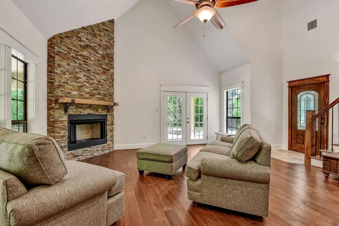 Escape to your very own 40-acre paradise in Caddo, Oklahoma. This custom 3 bed 2.5 bath home is nestled amongst mature trees, offering plenty of privacy and attracting a wide variety of wildlife. Enjoy the open, spacious interior with high ceilings and natural light, modern appliances, quartz counters, and custom cabinetry in the kitchen. Relaxing master suite with a large soaking tub and separate shower. The property features 2 spring fed creeks, a pond, and plenty of space to explore. This property is ideal for someone looking for their own weekend getaway or full time residence.