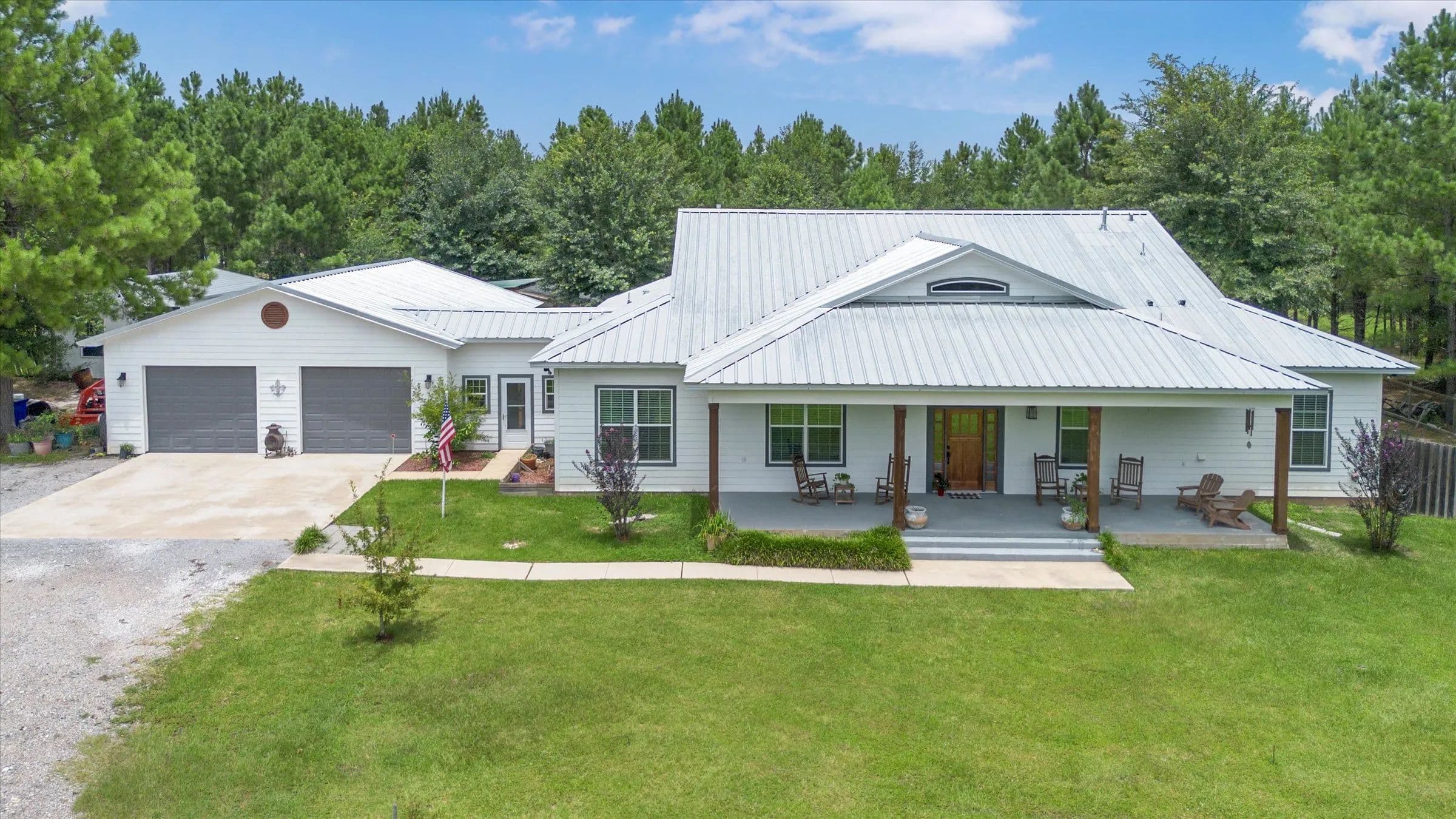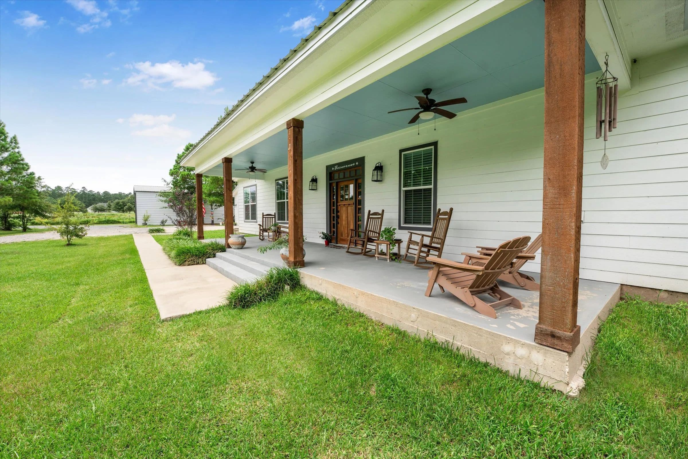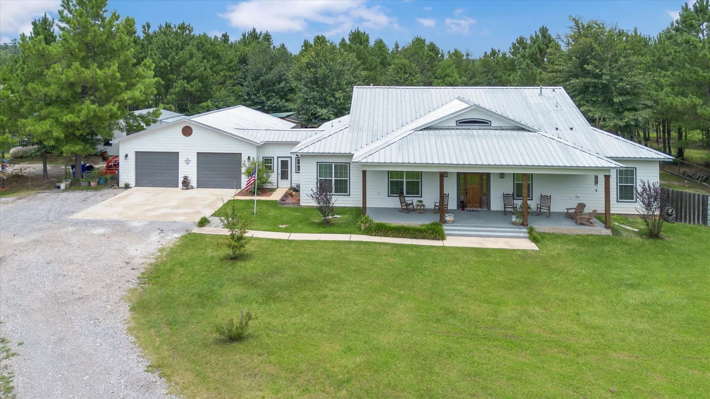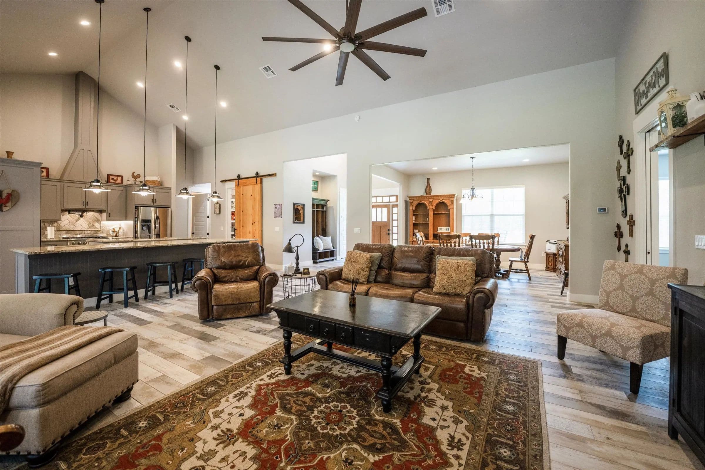 Escape to the charm of country living on this picturesque 5.71-acre homestead. Welcoming 17-foot soaring ceilings span the living and kitchen areas, paired with 8-foot doorways throughout for a light, expansive feel. The Chef’s island kitchen offers a farmhouse sink, a state-of-the-art Thor stove, and a walk-in pantry built for serious storage. A thoughtful layout connects the primary suite to utility and living areas for everyday ease. Enjoy peaceful mornings on the front and back porches, surrounded by trees and birdsong. A natural spring at the rear adds to the serenity, and fenced acreage suits gardening or livestock. Bonus features include an RV storage barn with hookup, tractor barn, deluxe “chicken hotel,” and a man cave/office with additional full bath off the garage. Wildlife and nearby horses complete the scene—just minutes from town, with peace, privacy, and timeless Texas charm.