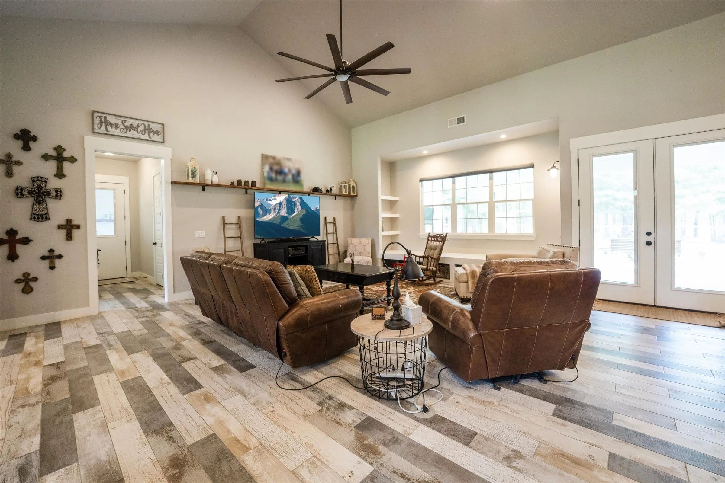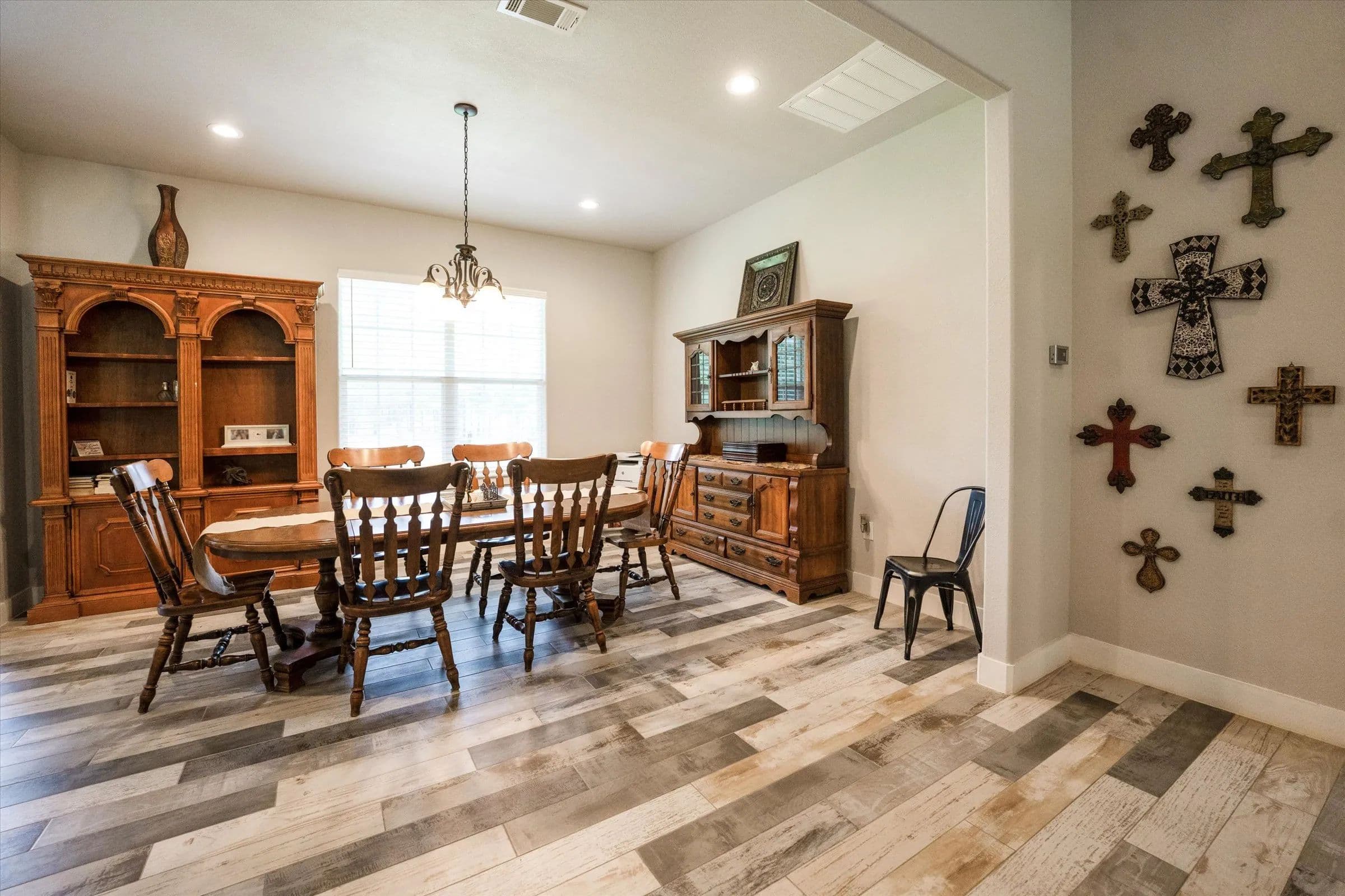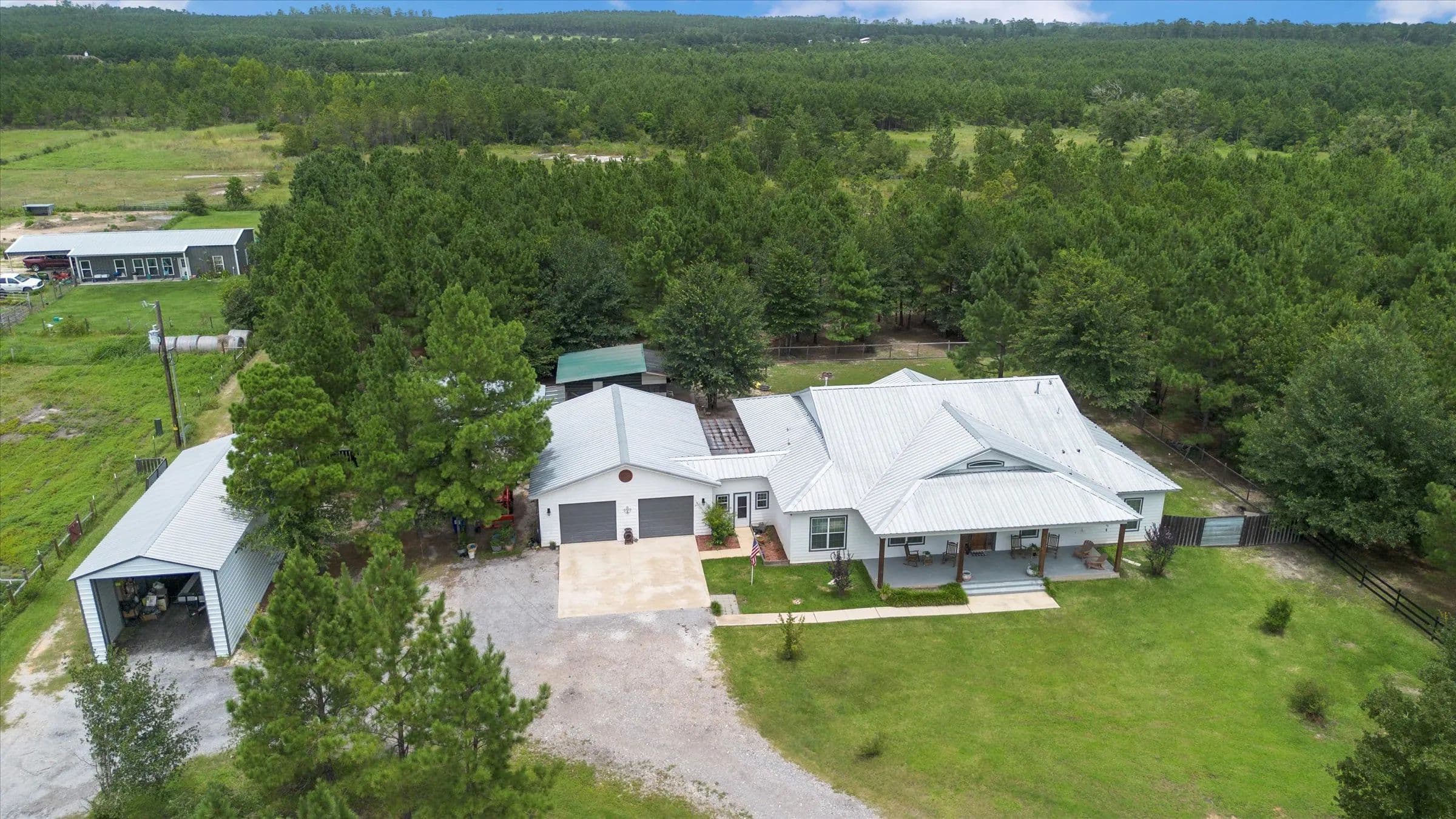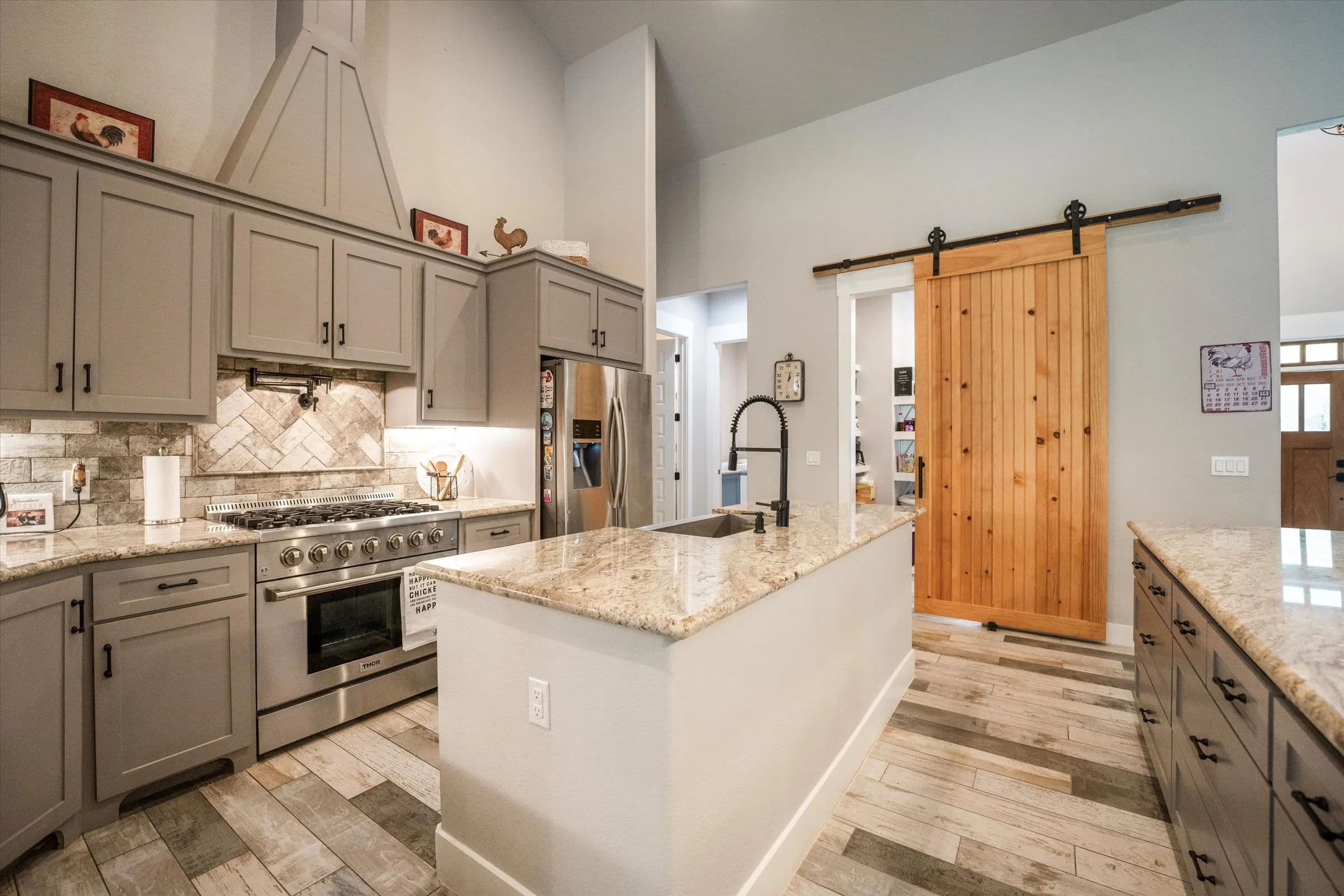 Escape to the charm of country living on this picturesque 5.71-acre homestead. Welcoming 17-foot soaring ceilings span the living and kitchen areas, paired with 8-foot doorways throughout for a light, expansive feel. The Chef’s island kitchen offers a farmhouse sink, a state-of-the-art Thor stove, and a walk-in pantry built for serious storage. A thoughtful layout connects the primary suite to utility and living areas for everyday ease. Enjoy peaceful mornings on the front and back porches, surrounded by trees and birdsong. A natural spring at the rear adds to the serenity, and fenced acreage suits gardening or livestock. Bonus features include an RV storage barn with hookup, tractor barn, deluxe “chicken hotel,” and a man cave/office with additional full bath off the garage. Wildlife and nearby horses complete the scene—just minutes from town, with peace, privacy, and timeless Texas charm.