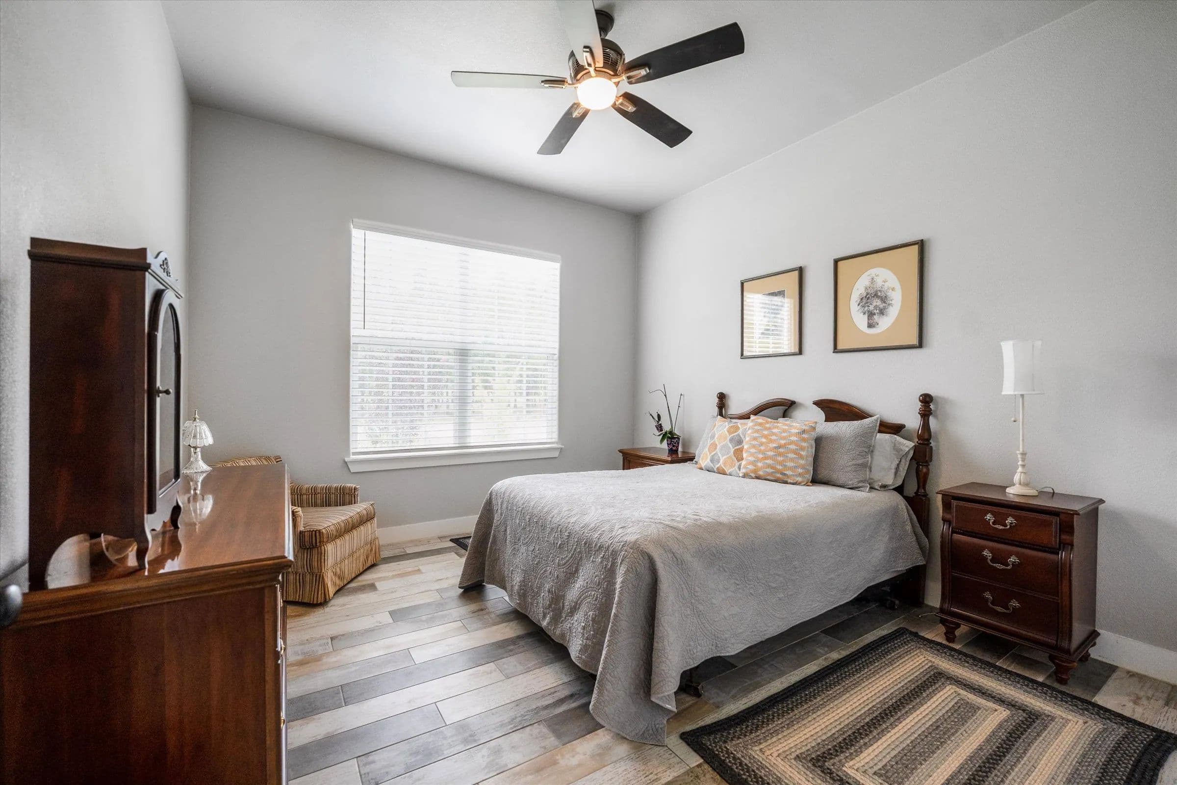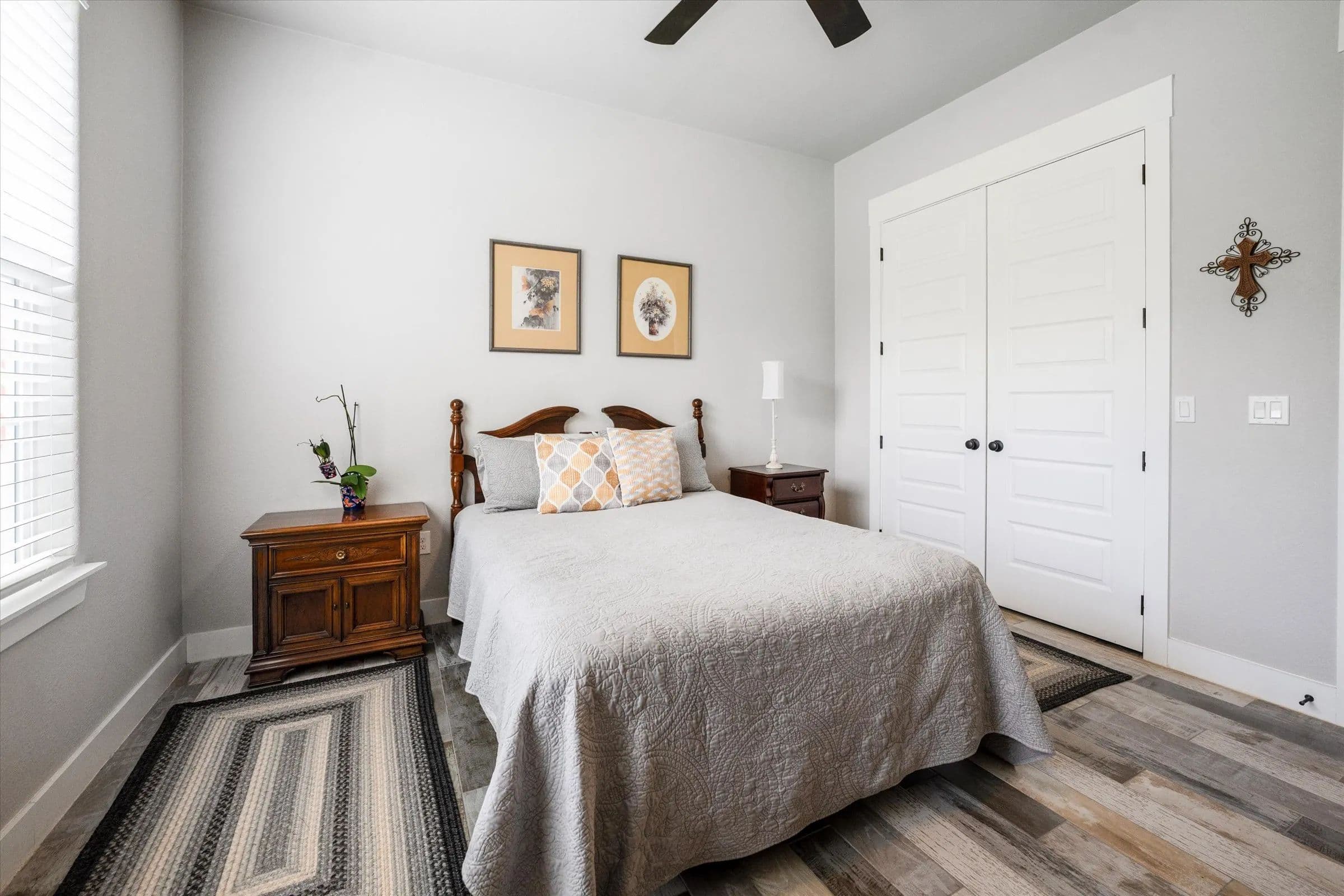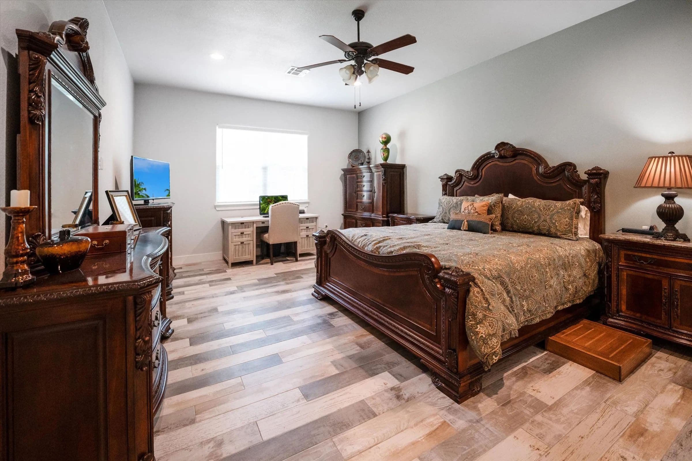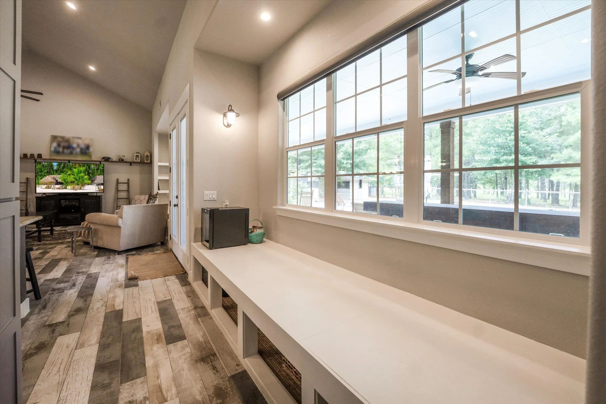 Escape to the charm of country living on this picturesque 5.71-acre homestead. Welcoming 17-foot soaring ceilings span the living and kitchen areas, paired with 8-foot doorways throughout for a light, expansive feel. The Chef’s island kitchen offers a farmhouse sink, a state-of-the-art Thor stove, and a walk-in pantry built for serious storage. A thoughtful layout connects the primary suite to utility and living areas for everyday ease. Enjoy peaceful mornings on the front and back porches, surrounded by trees and birdsong. A natural spring at the rear adds to the serenity, and fenced acreage suits gardening or livestock. Bonus features include an RV storage barn with hookup, tractor barn, deluxe “chicken hotel,” and a man cave/office with additional full bath off the garage. Wildlife and nearby horses complete the scene—just minutes from town, with peace, privacy, and timeless Texas charm.