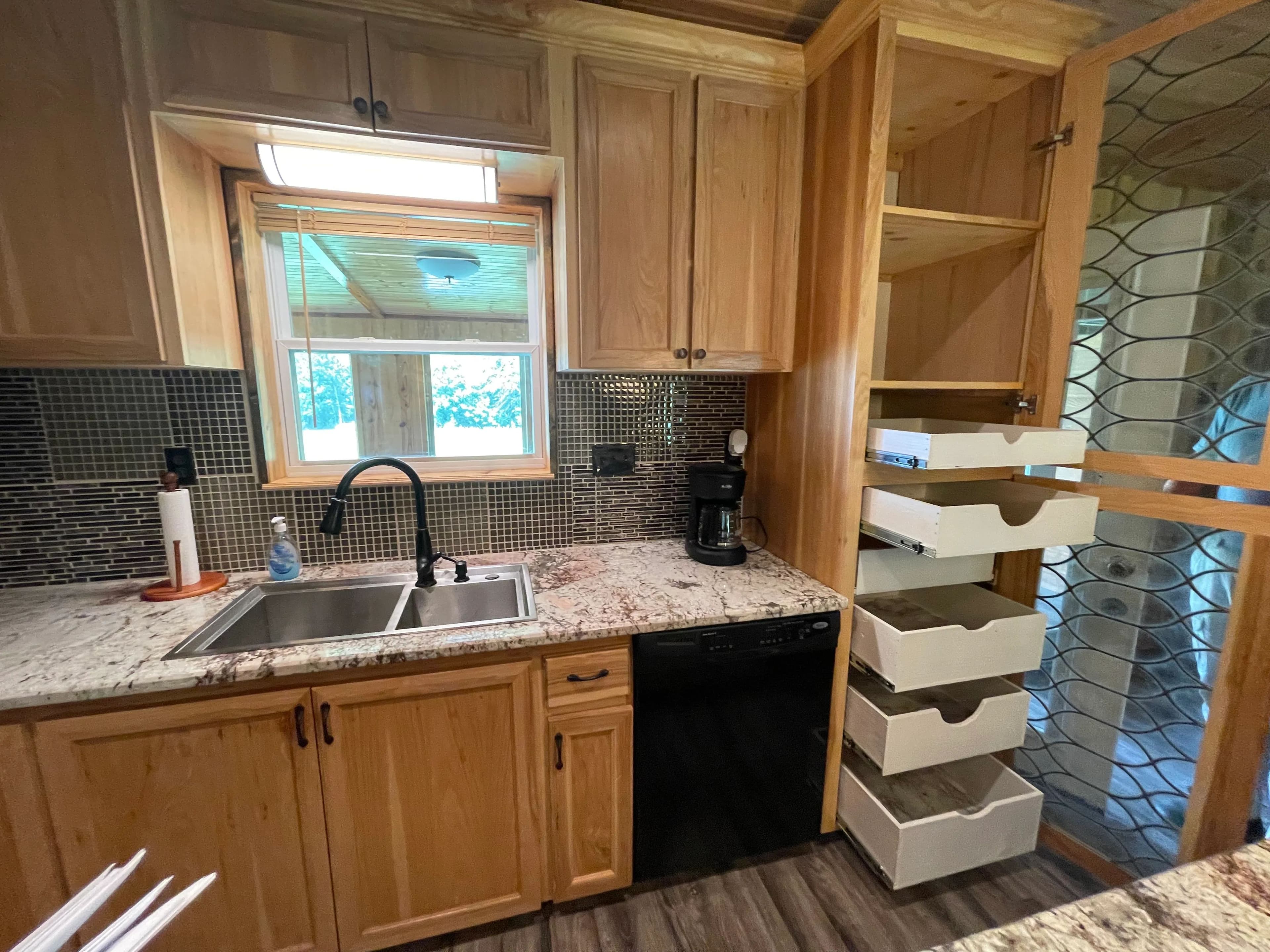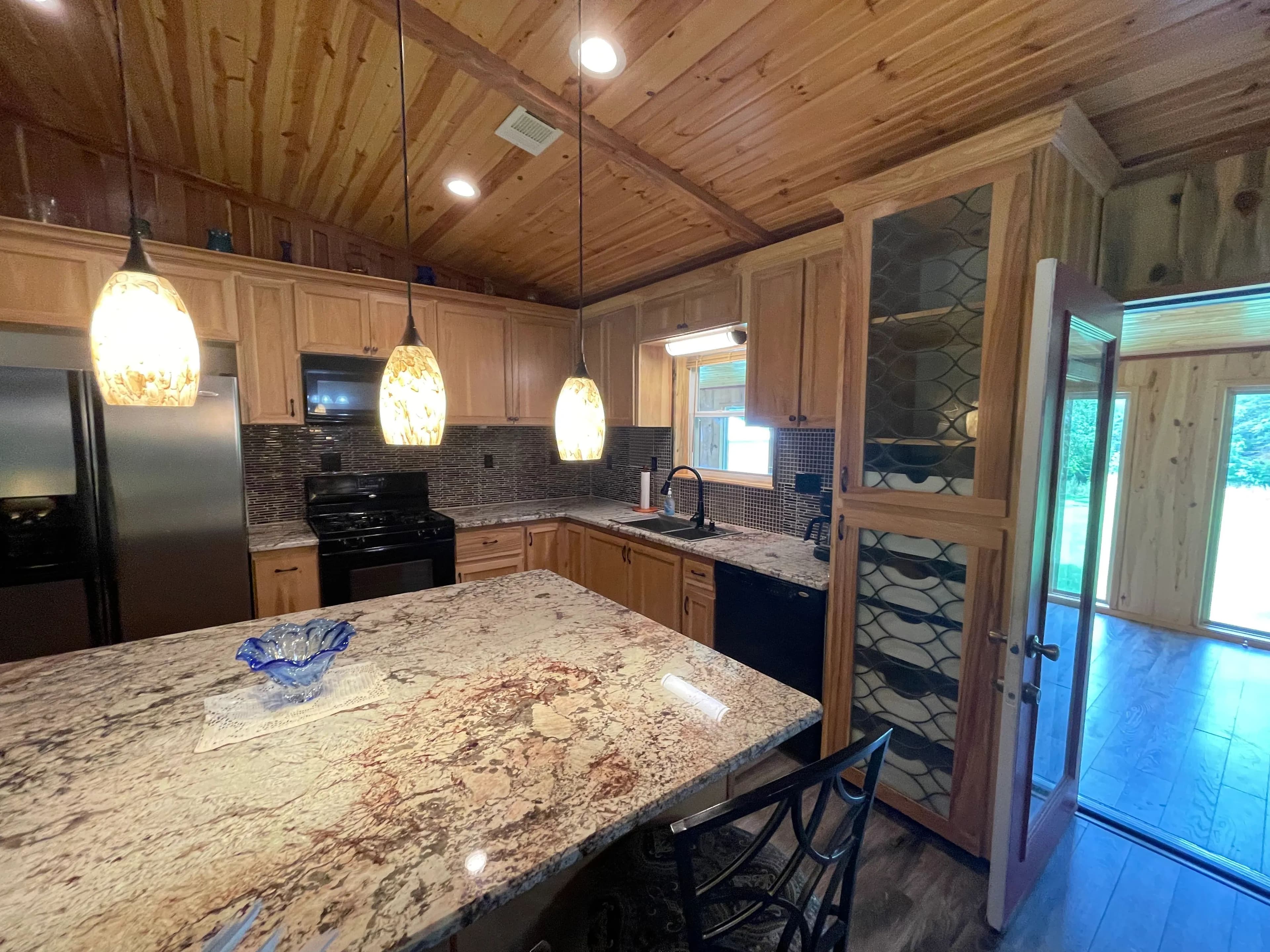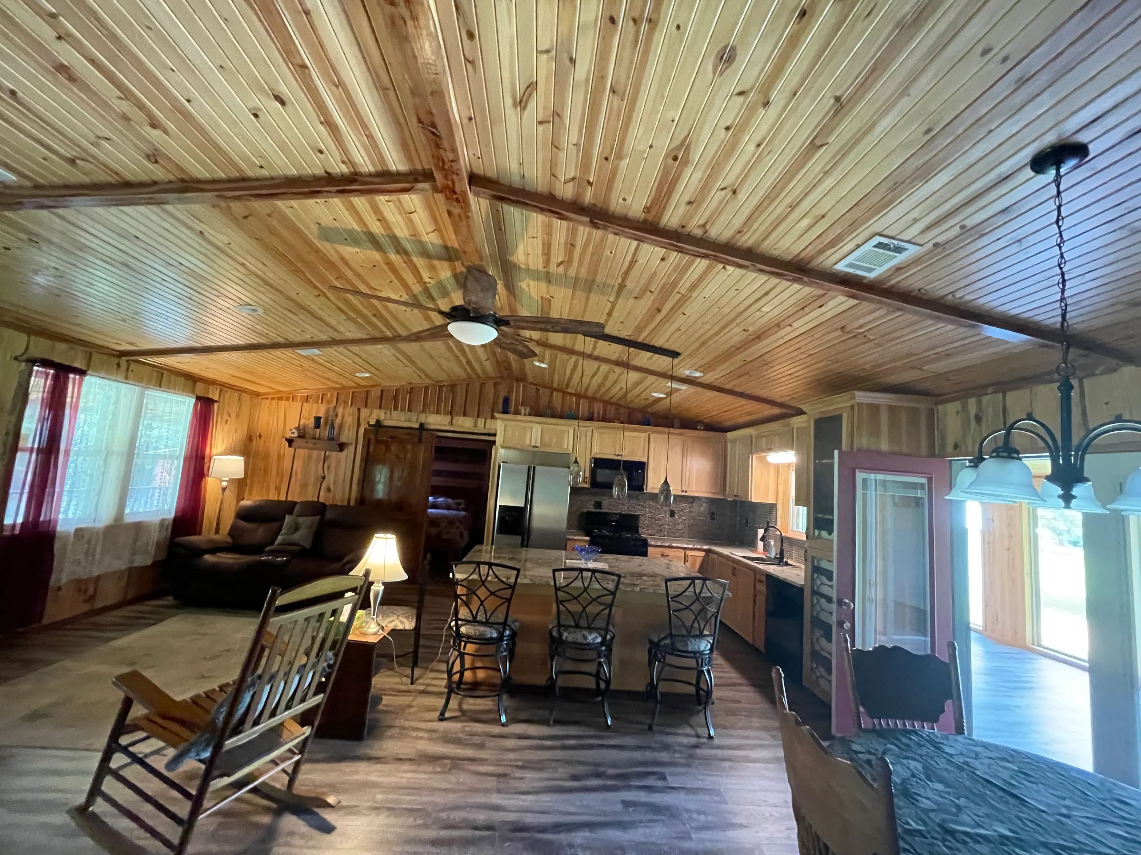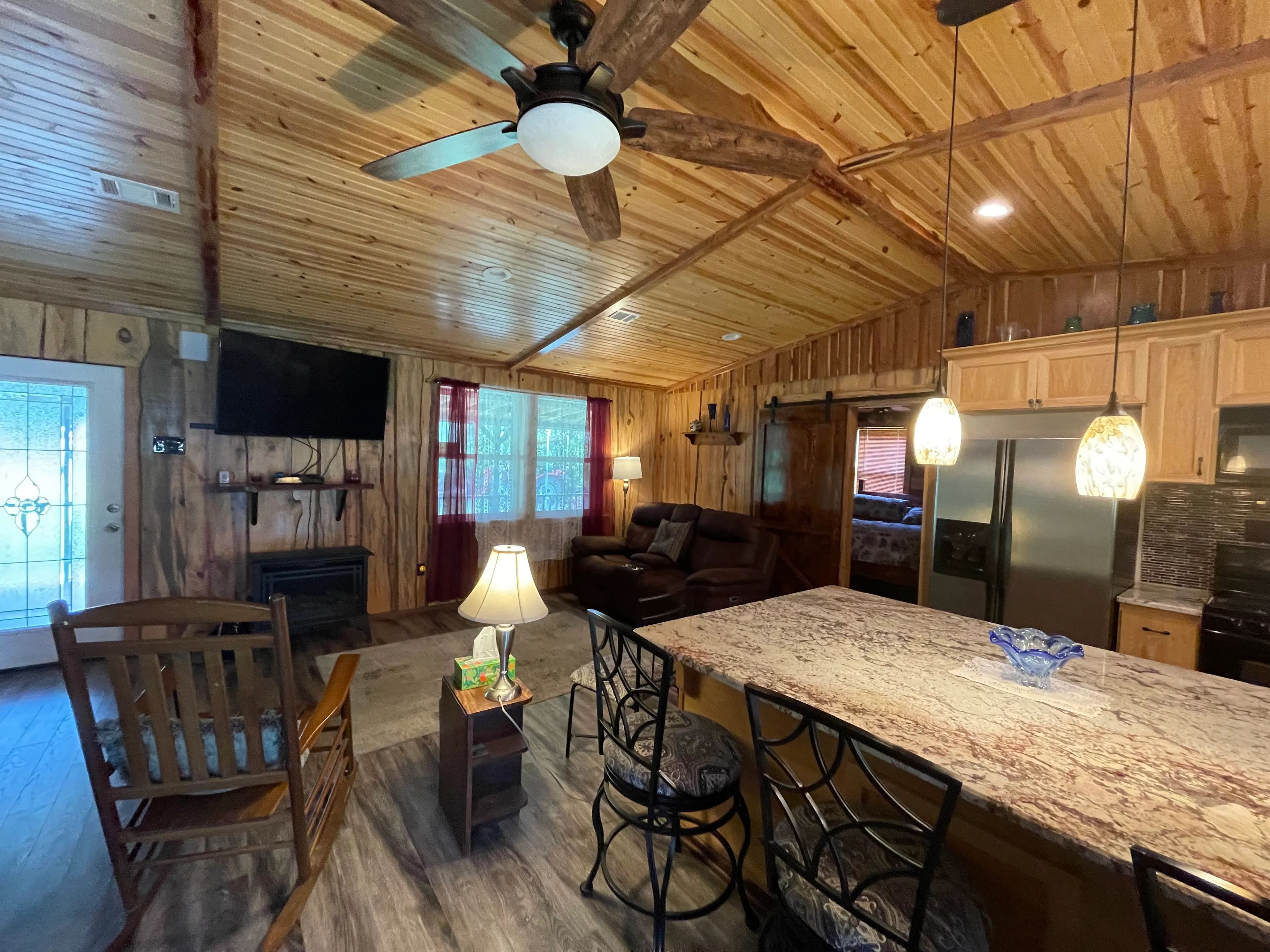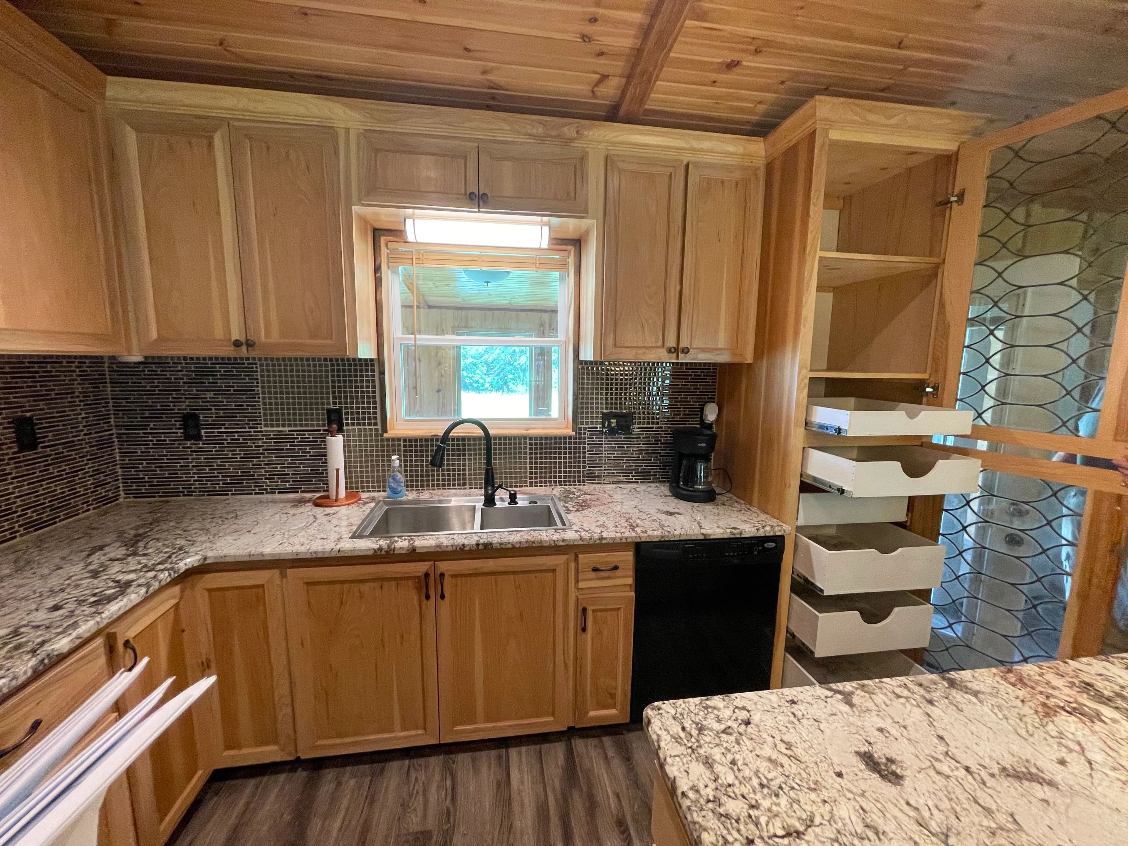 Sardis Lake property 1312 sq ft Lake House with outbuildings and a separate mother-in-law suite. It has a RV cover and hookup. Separate garage. Outbuildings. 2.5 acres mol on Sardis Lake. Close to the Choctaw Nation Marina, Sardis Lake Dam, and other amenities in Clayton, Ok. Deer, Hogs, and other wildlife are in abundance. This is the perfect weekend getaway or that special forever home. Custom-built house has native pine and hardwood interior built with hurricane-proof hardware. Very well built and double insulated. Covered porch on the front of the house and enclosed porch/sun room on the back. Great place to sit and watch wildlife.Large laundry room, clawfoot bathtub, showers, hickory cabinets, pull-out drawers, lots of extras.