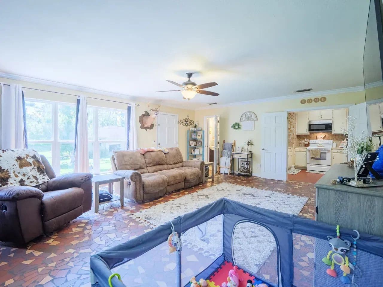Charming Brick Home Just Minutes from Downtown! Welcome to this cozy 3-bedroom, 2-bathroom brick home nestled in the desirable Livingston Springs subdivision. Offering 1,693 square feet of comfortable living space, this property blends classic charm with everyday functionality—all just minutes from the heart of downtown.Step inside to a spacious living area featuring a cozy fireplace, perfect for relaxing evenings. The open, eat-in kitchen provides ample space for meals and gatherings, while a mix of vinyl and terrazzo flooring adds character and low-maintenance appeal throughout the home. Additional features include:• City water and sewer• Covered attached carport• Generously sized side yard—ideal for gardening, pets, or play Whether you’re a first-time buyer or looking to downsize near town, this home offers comfort, convenience, and charm in a well-established neighborhood.NO HOA!
