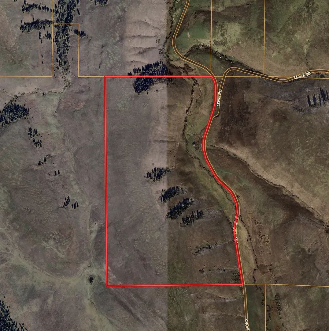 Land The land consists of 353 deeded acres with a mix of open pasture, timbered sections, gentle hills, and creek bottom. Crow Creek runs directly through the center of the property, supplying year-round water that supports both livestock and wildlife. The terrain includes level meadows for grazing or hay, as well as elevated areas with expansive views, ideal for building. Soils on the property range from well-drained loam in the lower sections to rocky, well-supported slopes on the higher ground. Vegetation consists primarily of native grasses, sagebrush, and scattered pines, providing natural forage and cover. The land is partially fenced and could be fully enclosed with minimal work for a complete grazing setup.