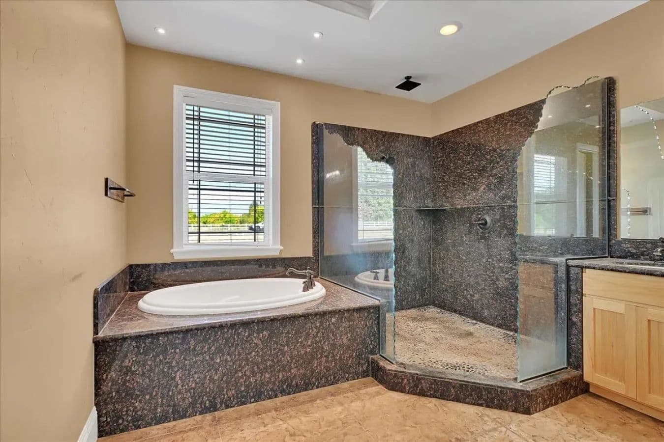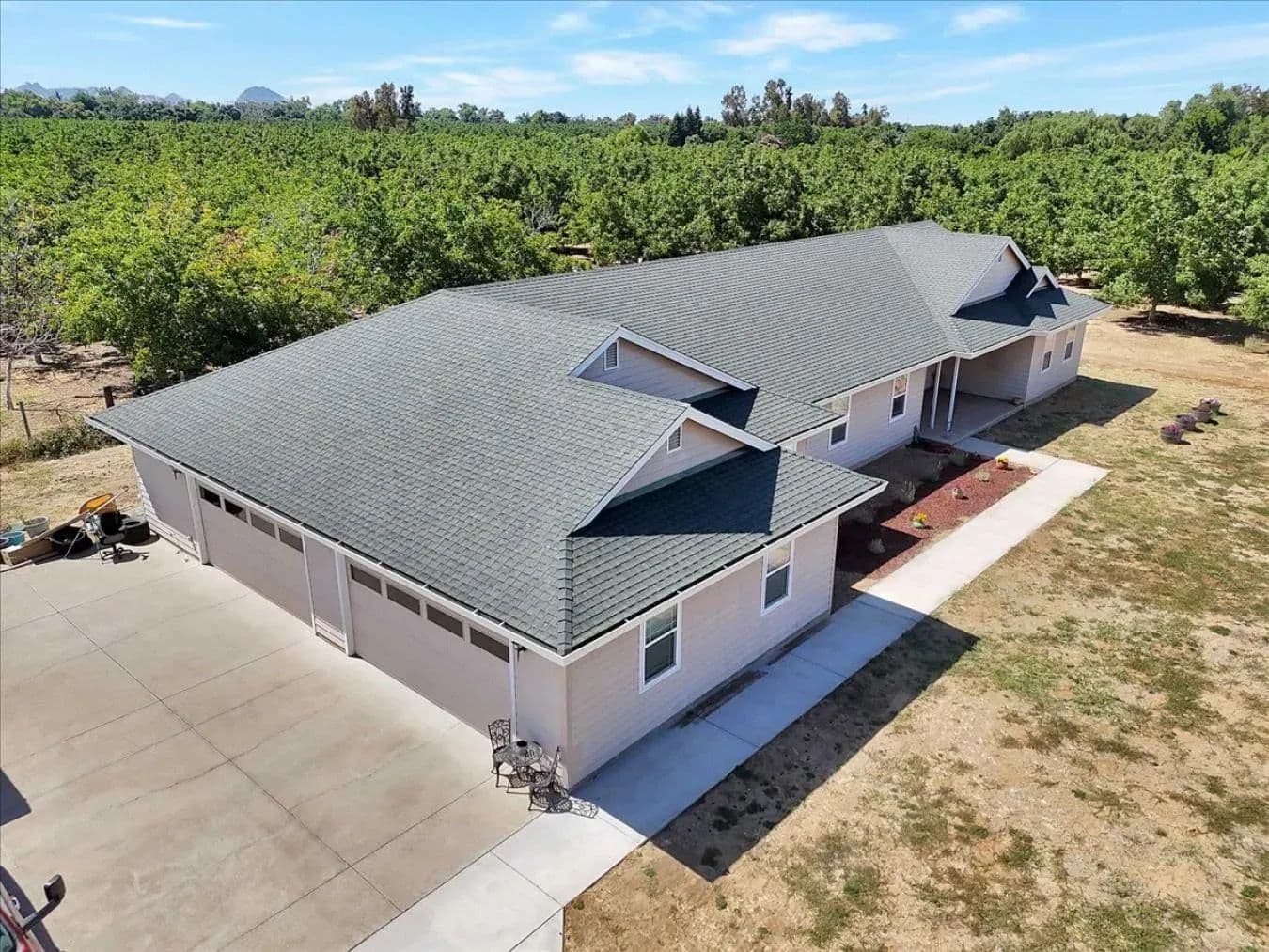 Charming Country Mini Farm with High-End Finishes and Modern Comfort Welcome to your dream mini farm - a rare blend of peaceful rural living and upscale comfort. This beautifully crafted property offers fenced pasture for animals, mature walnut trees, and thoughtfully designed living spaces that showcase true attention to detail. Step inside to soaring 10-foot ceilings, 8-foot solid wood doors, and elegant crown molding throughout. The walls have a sleek imperfect-smooth finish, and a whole-house quiet fan ensures comfort year-round. Every corner reflects quality construction and craftsmanship. The heart of the home is the gourmet kitchen featuring granite countertops, rich hickory cabinets, energy-efficient, top-of-the-line appliances, and an open layout that flows into the spacious family room. A dramatic rock fireplace wall with a built-in TV and surround sound wiring creates the perfect setting for cozy nights or entertaining guests. The home is also plumbed for radiant heating, offering an easy upgrade path for future comfort. In the luxurious primary suite, you'll find dual closets, a walk-in closet, a jetted soaking tub, and an oversized walk-in shower with a rain showerhead. Easy-care stamped concrete floors throughout the home offer the look of tile with the durability and convenience perfect for country living. An oversized four-car garage provides ample space for vehicles, tools, and toys. There's additional room for an RV, boat, or extra truck, and the possibilities for landscaping or hobby farming are endless. Unwind on the covered front porch and take in the quiet, open skies - all while being just minutes from town and within an easy commute to Sacramento or Chico.