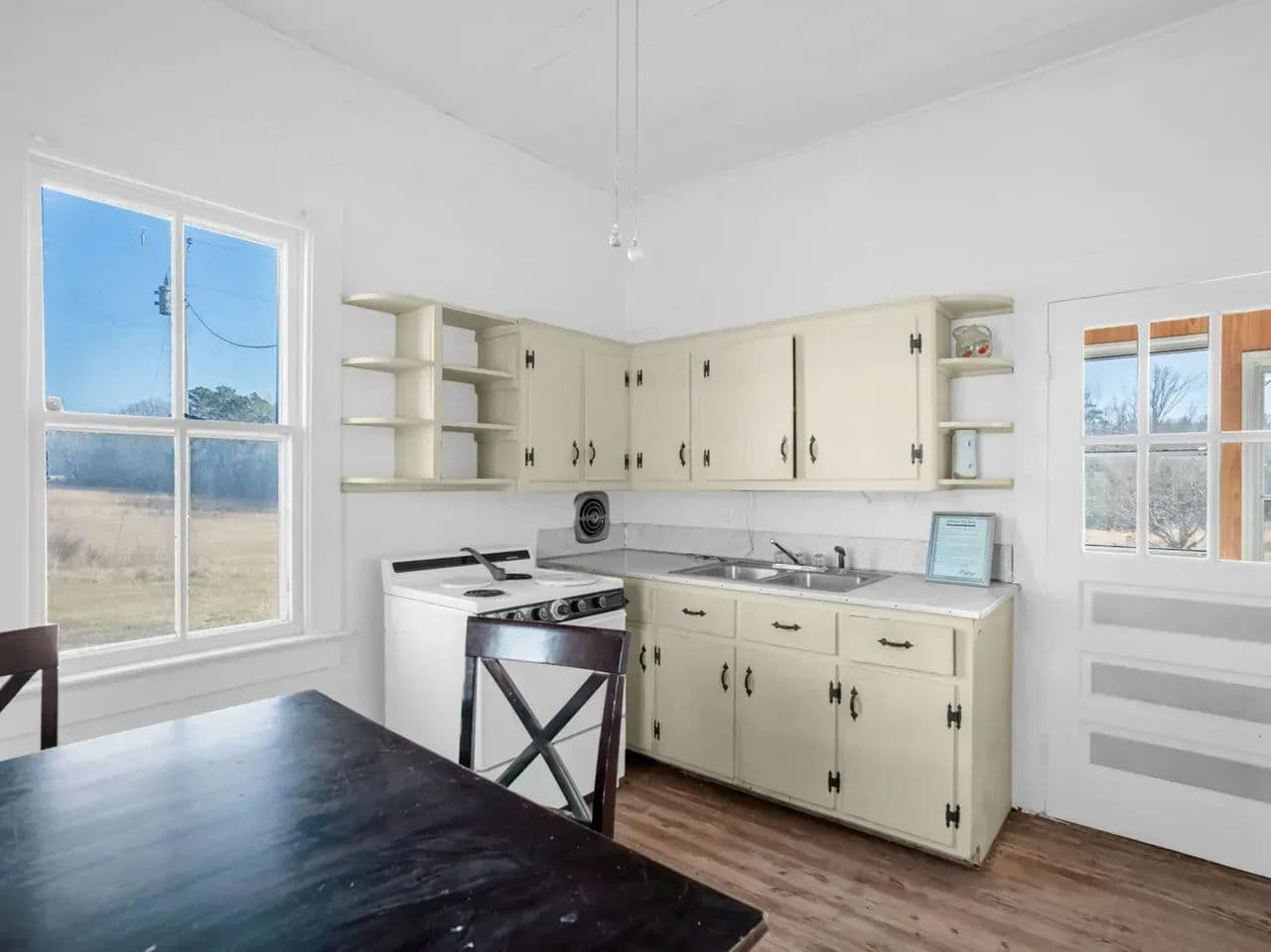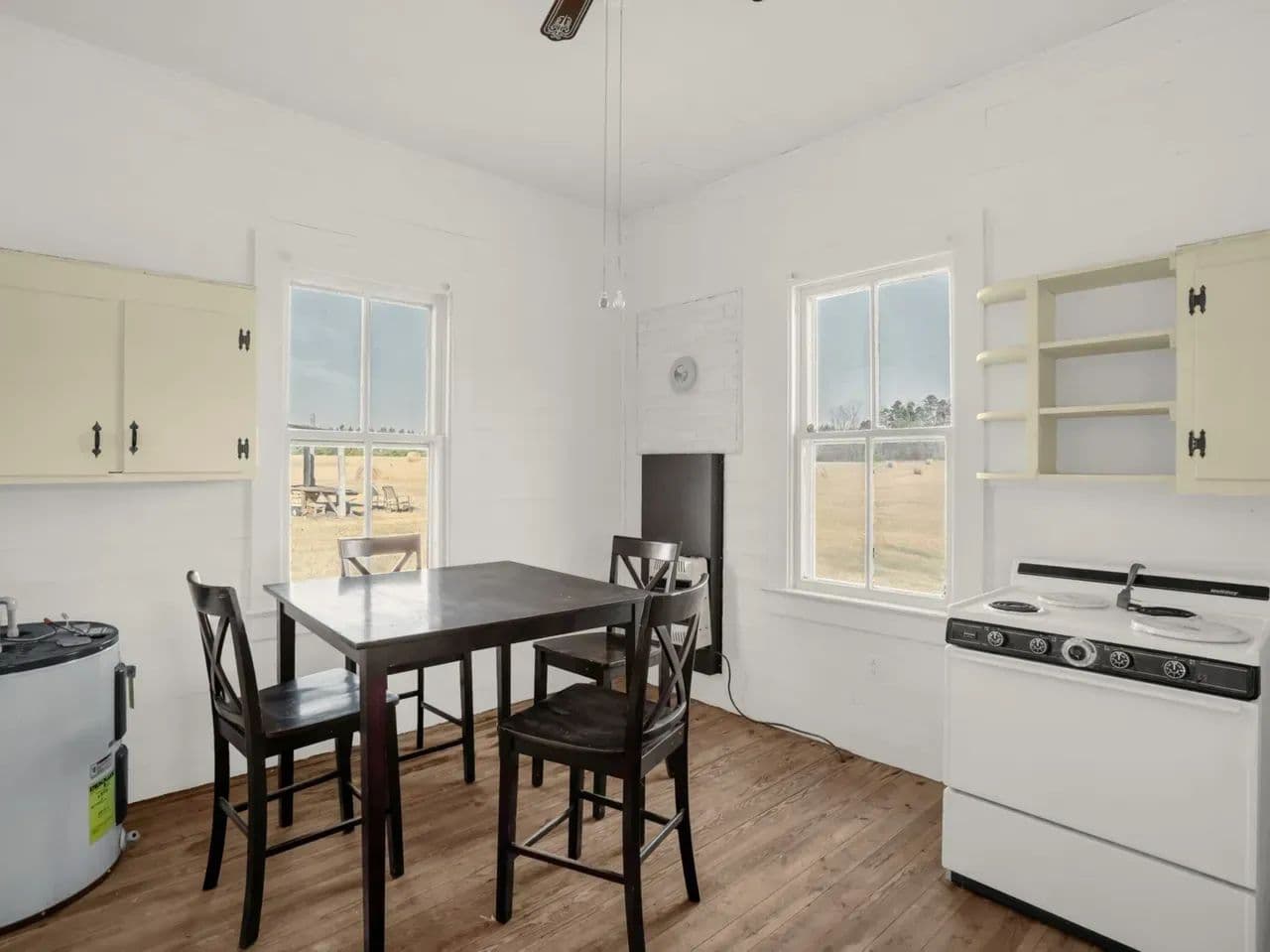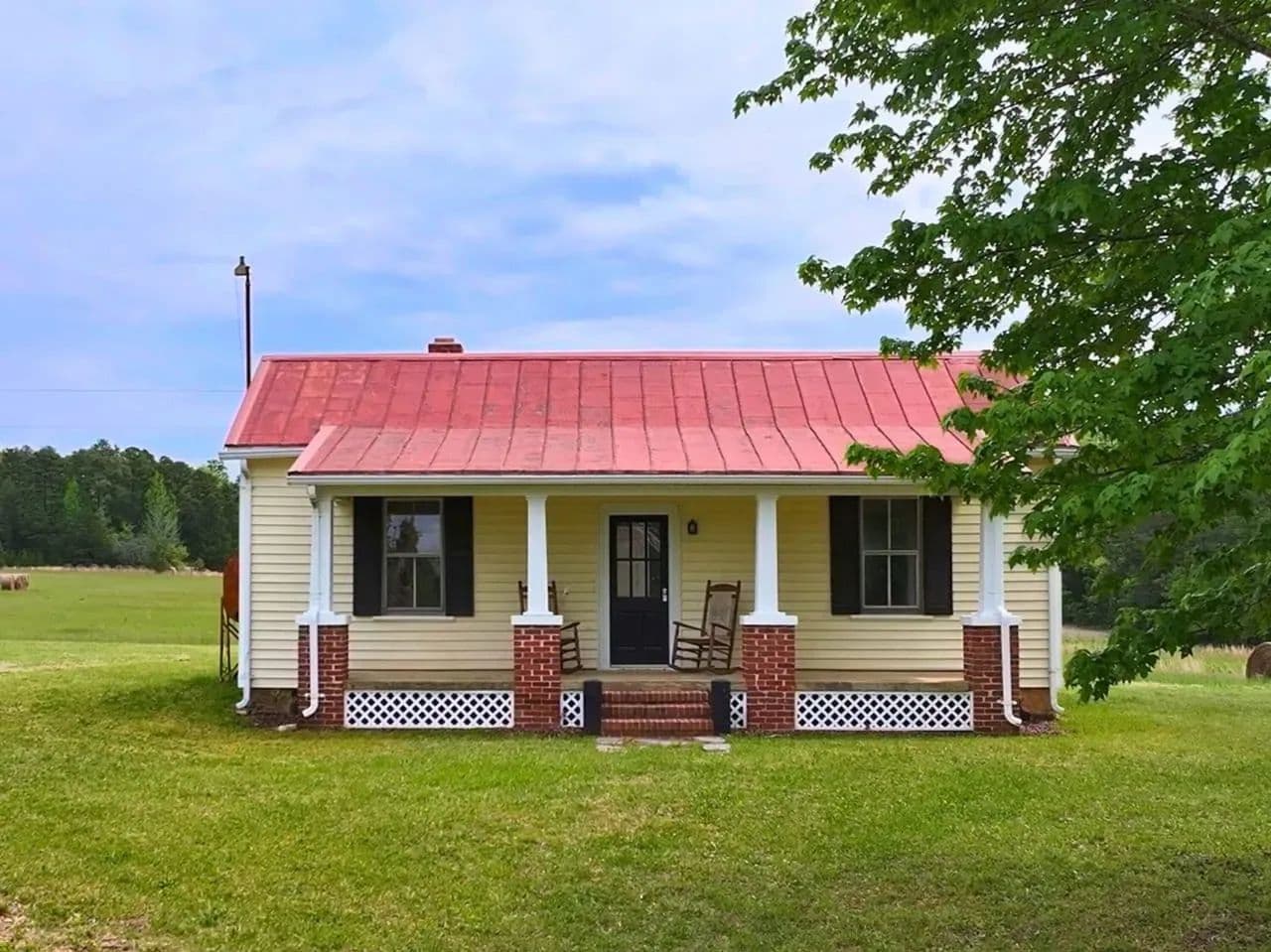 Set back off the main road, the pre-1940s farmhouse welcomes you with warm character and modern comfort. With two bedrooms, one bathroom, and hardwood floors throughout, the home features a spacious farmer’s porch perfect for rocking chairs and sweet tea. Watch fireflies flicker across the fields, smell honeysuckle on a summer breeze, and enjoy the peace that only rural living can bring. With thoughtful updates throughout, this home is ready to be your quiet country retreat, full-time residence, or weekend escape.