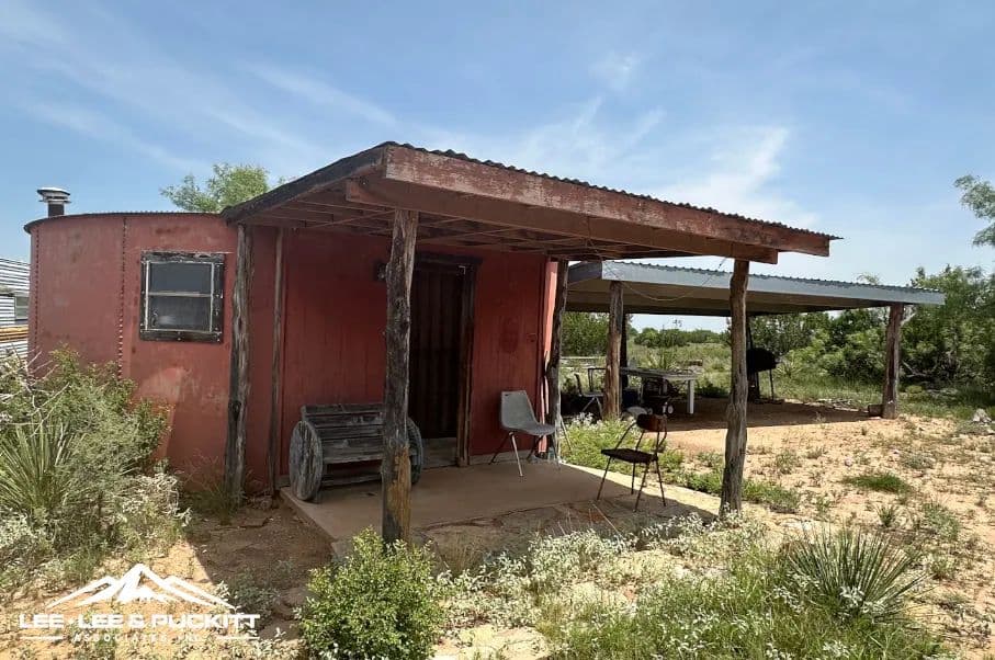 Building improvements consist of a large round tank converted into a one room cabin. There also is a shed next to the cabin that is used for cookouts.