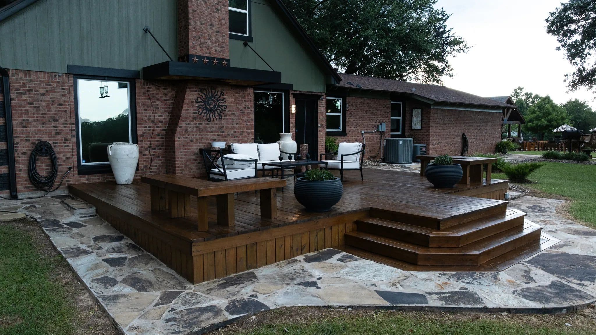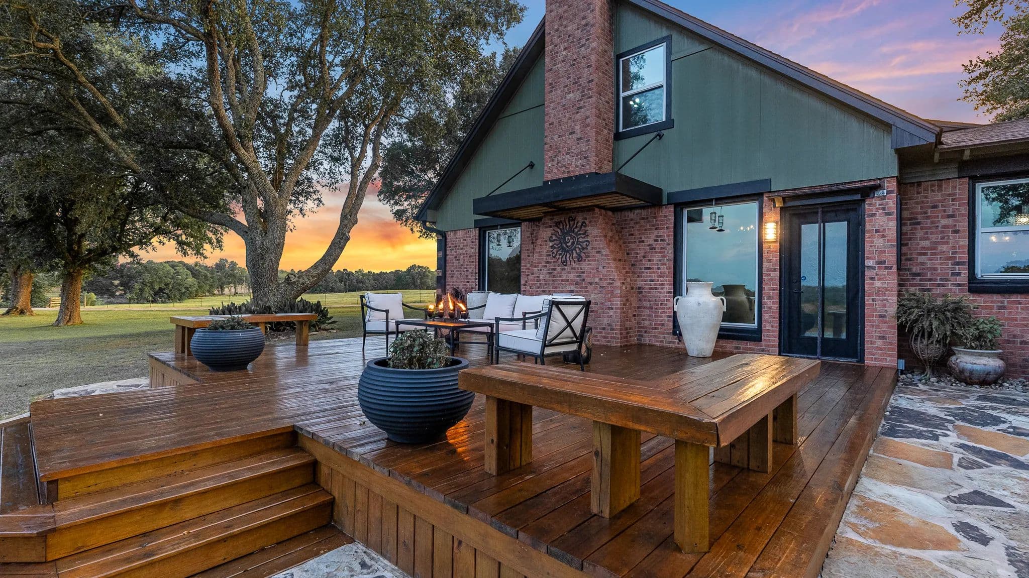 Wraparound deck and shaded front porch for outdoor relaxation