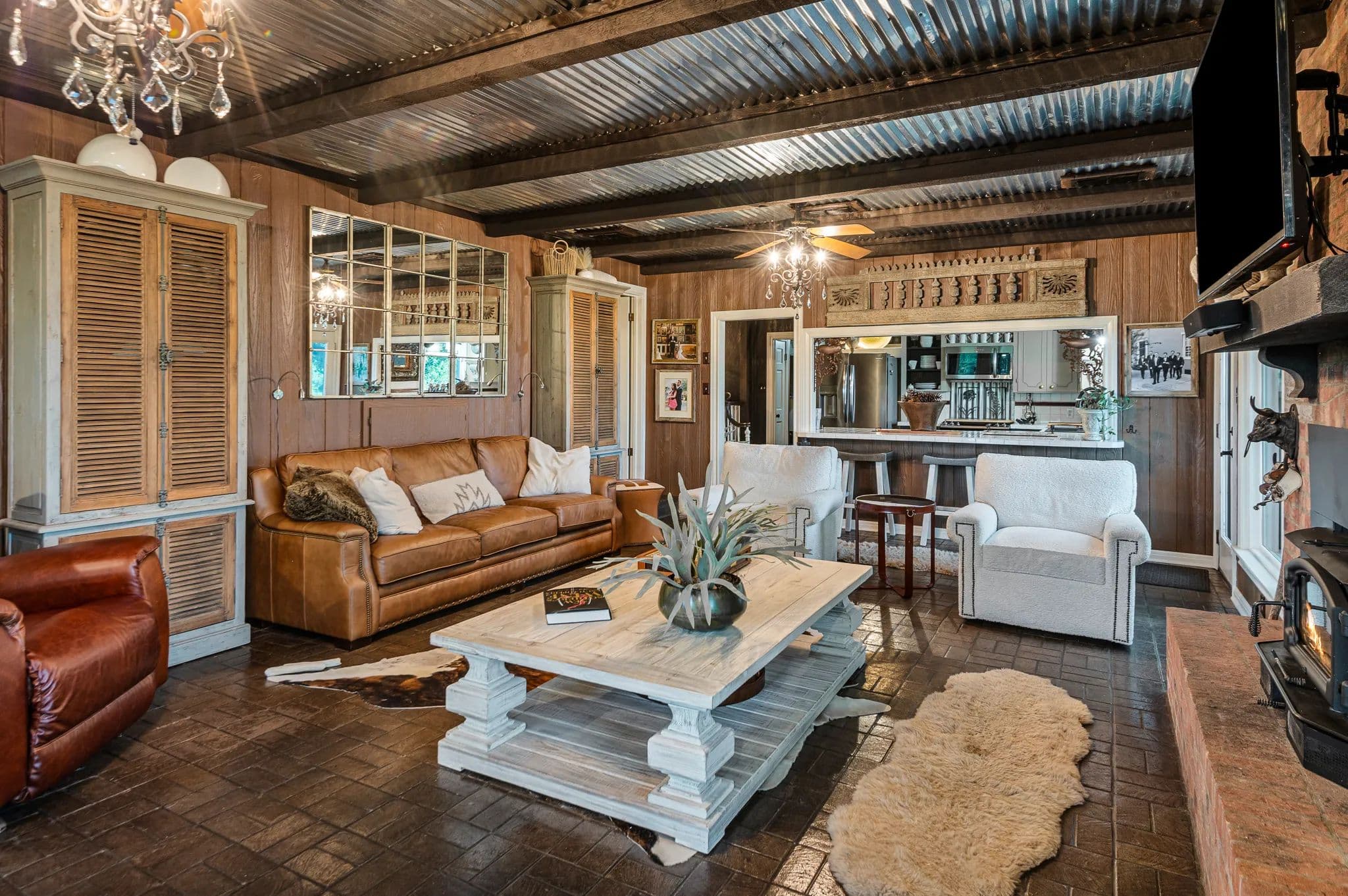 Family room with fireplace insert for cozy East Texas evenings