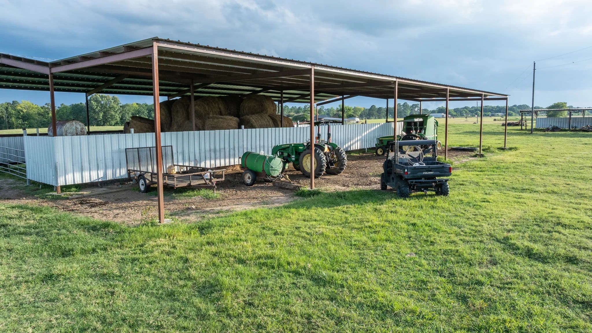 Hay barn and covered equipment storage for tractors and implements