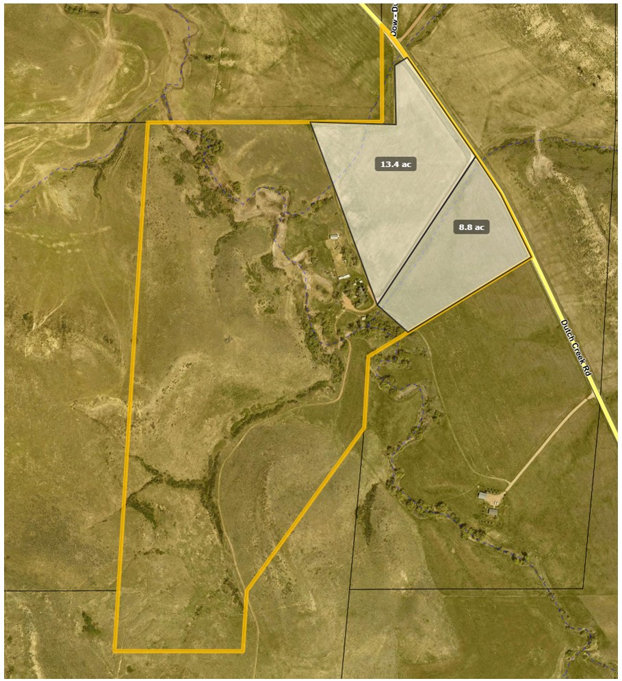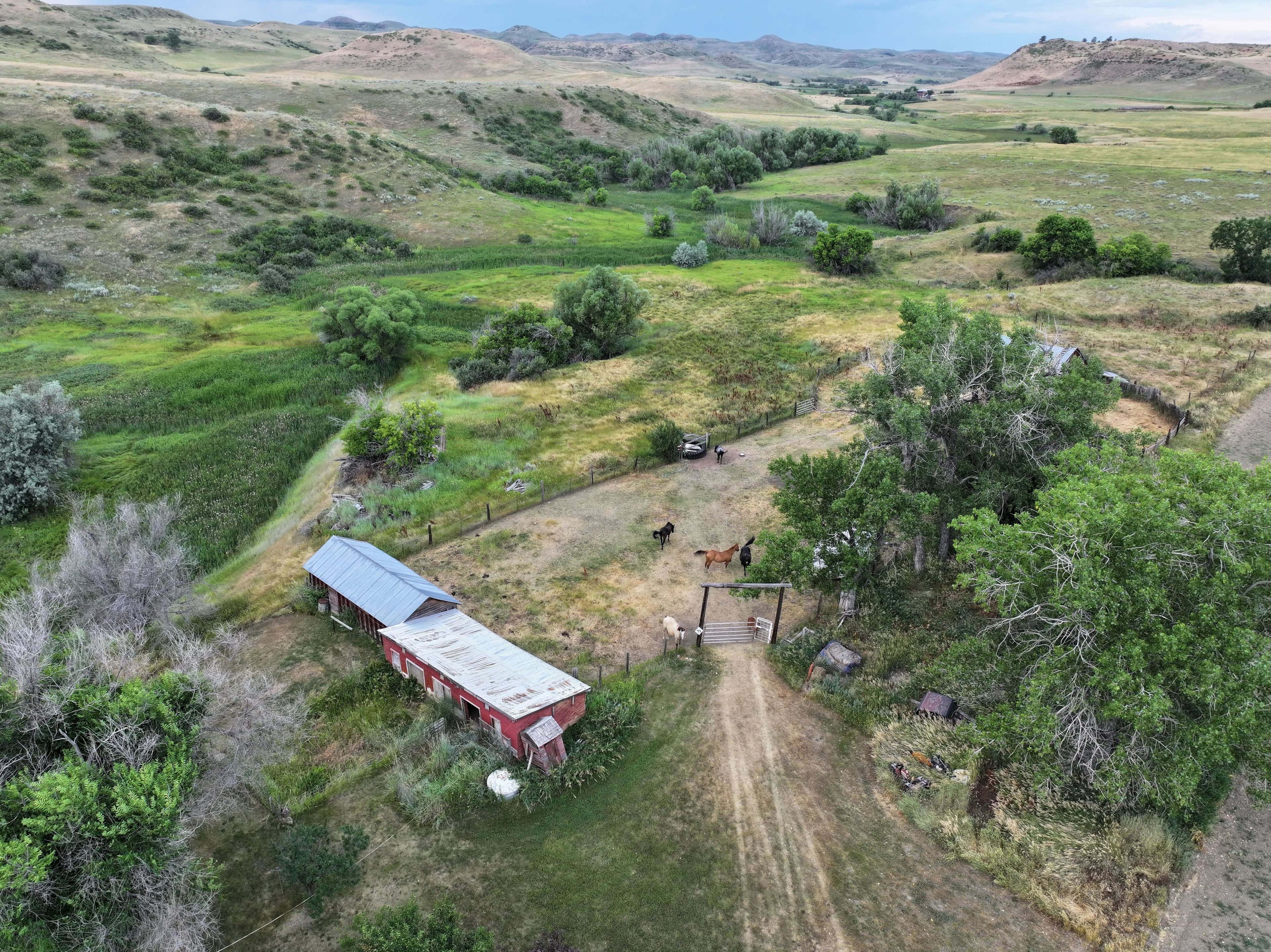 Historic ranch, first time on the market since the 1950's. 98.90 deeded acres with hay and barley production, seasonal creek, rolling hills, and numerous out-buildings. Two active wells on property, one currently being used for livestock and the other for a modular home (to be removed if requested). Perimeter and interior fencing in place. Crop production from non-irrigated fields however it may be possible to flood irrigate if a greater yield is of interest. Wildlife is abundant on the ranch with pheasant, deer, an occasional elk, and occasional bear. Deer unit 23, Elk 129. Approximately two miles to Wyoming state lands. Mineral rights, if any, are included with the sale. Septic on-site. All information deemed reliable but should be verified by buyer and buyer's broker.
