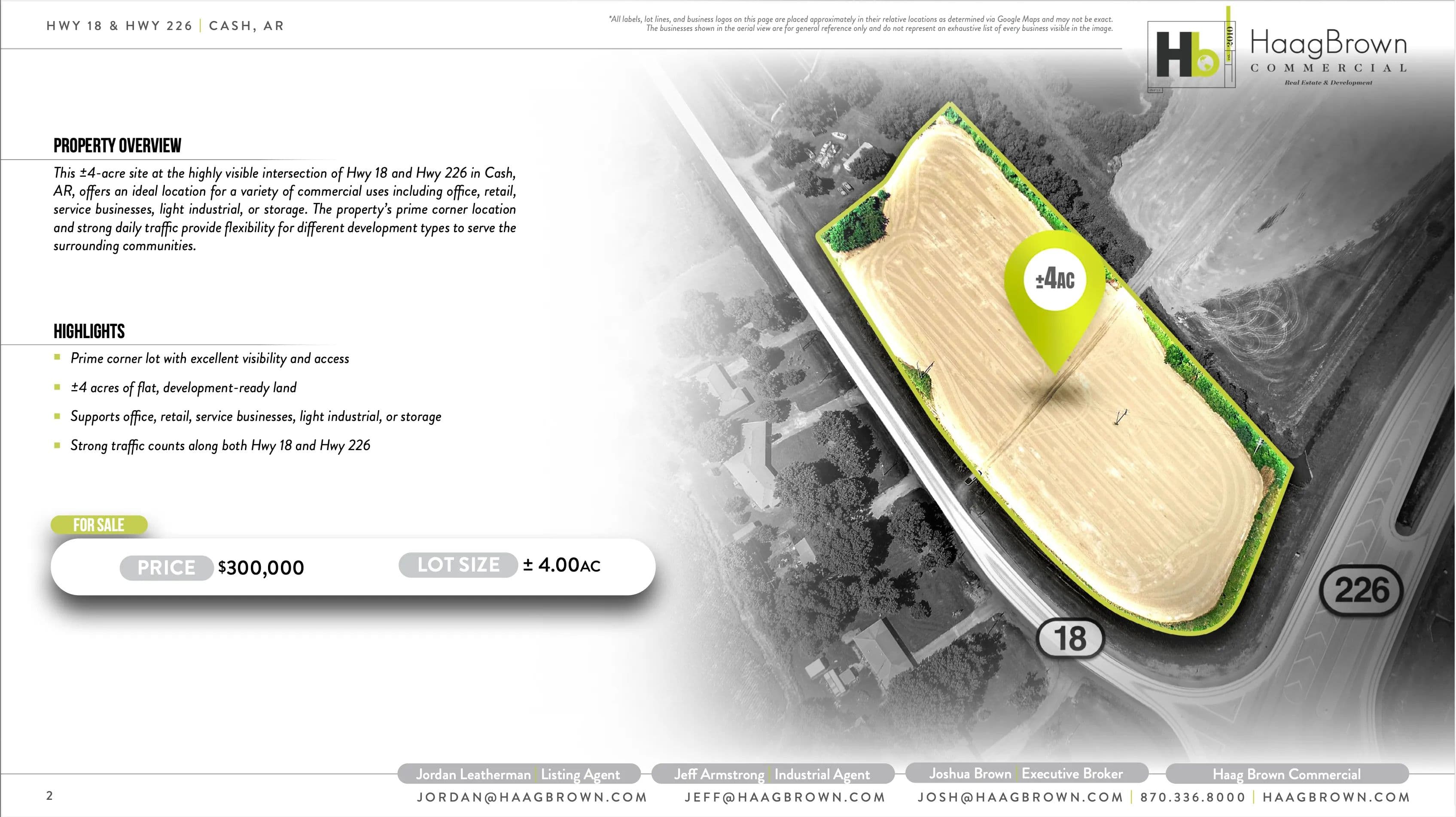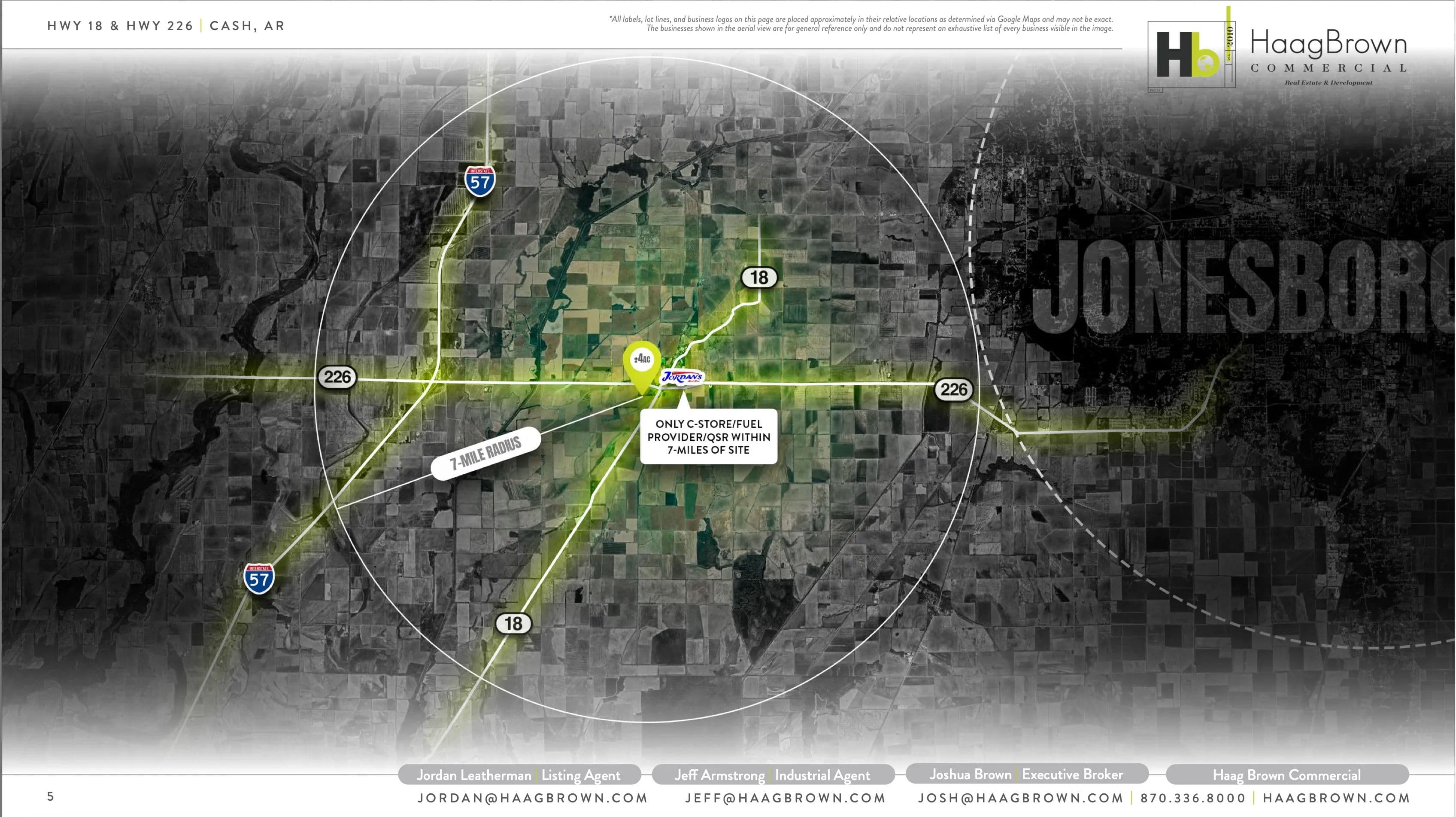 This ±4-acre site at the highly visible intersection of Hwy 18 and Hwy 226 in Cash,