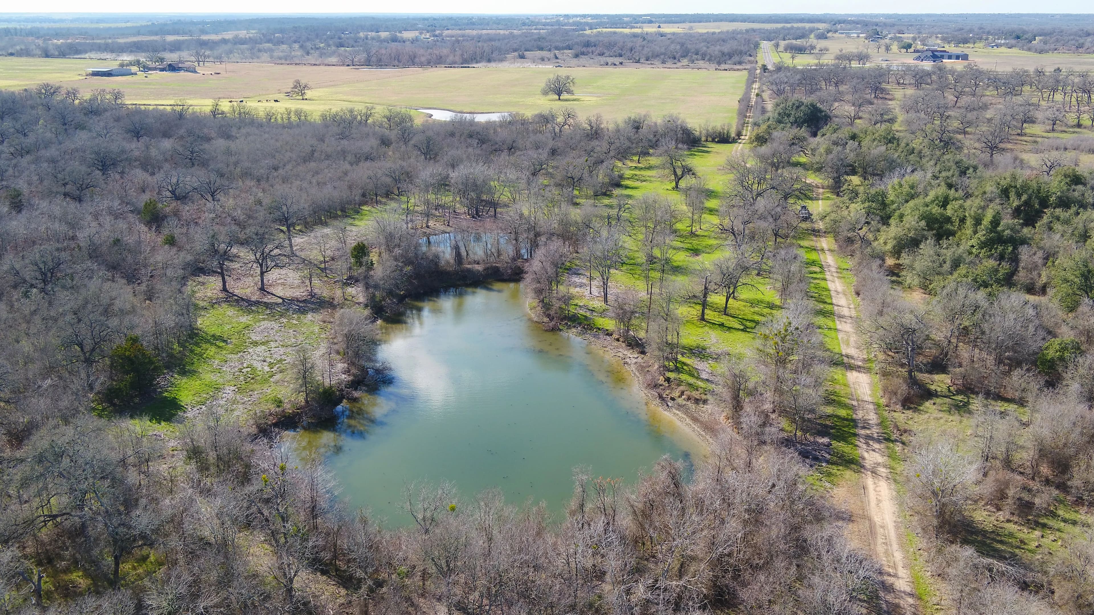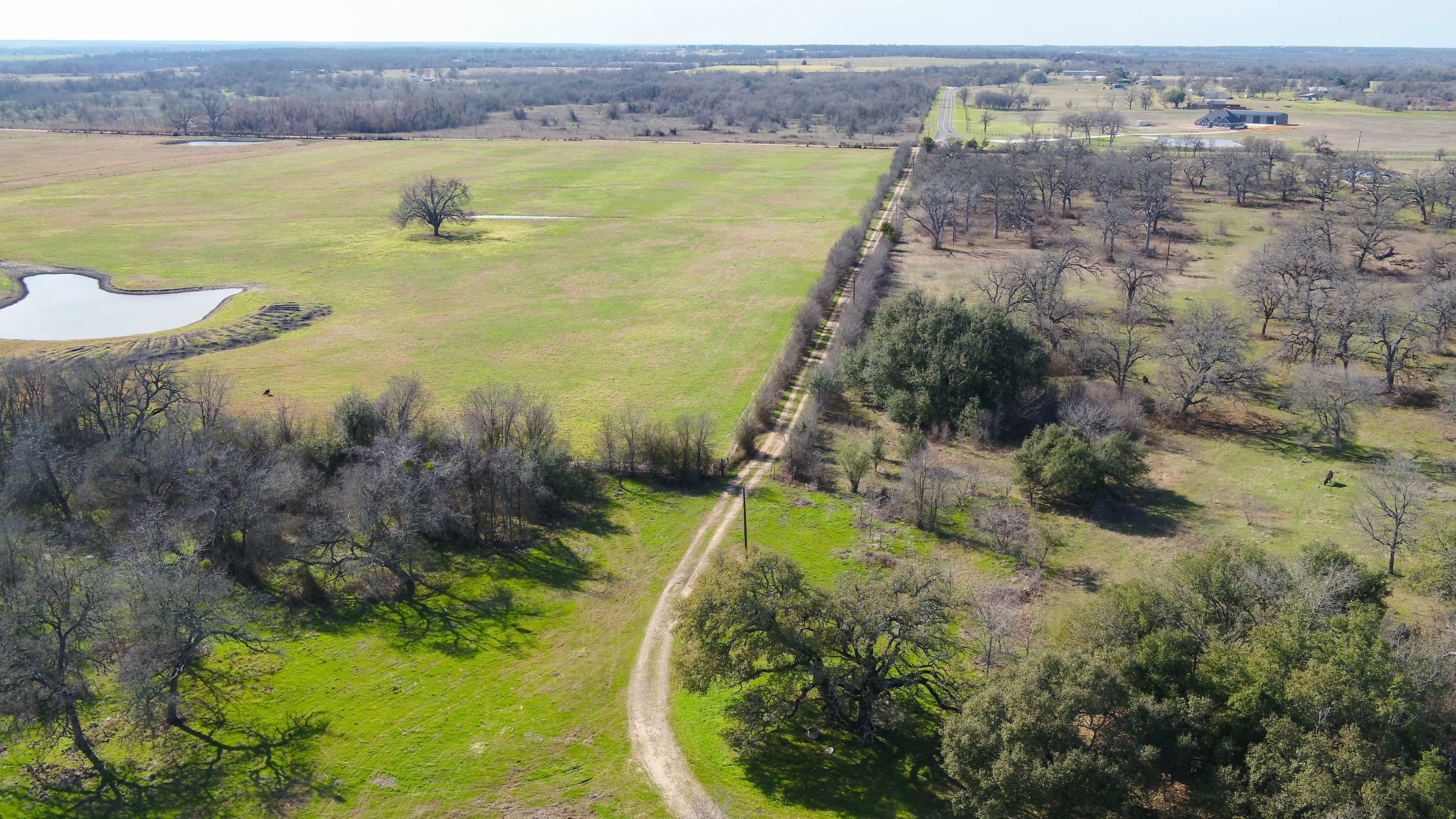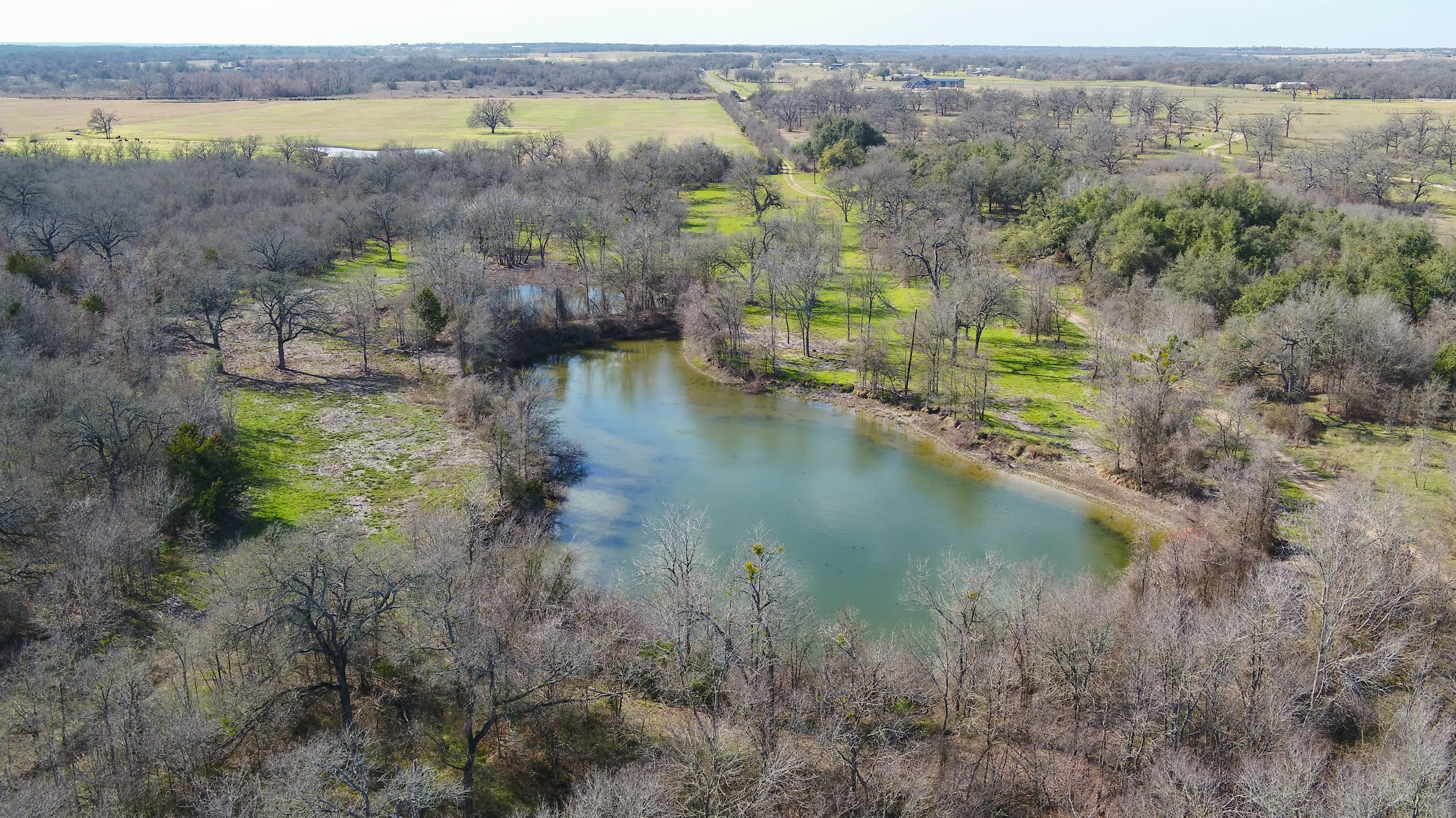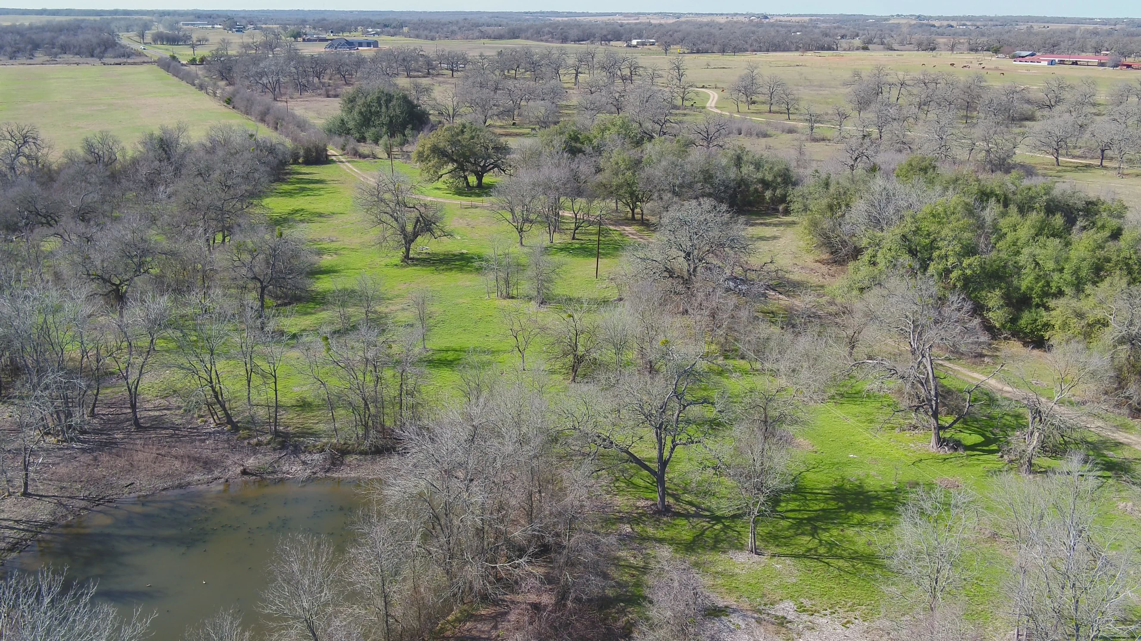 A scenic, one-acre pond near the front gate adds both beauty and functionality, often drawing in ducks during the winter. Mature trees surround this area—including an impressive live oak that's truly a standout feature.